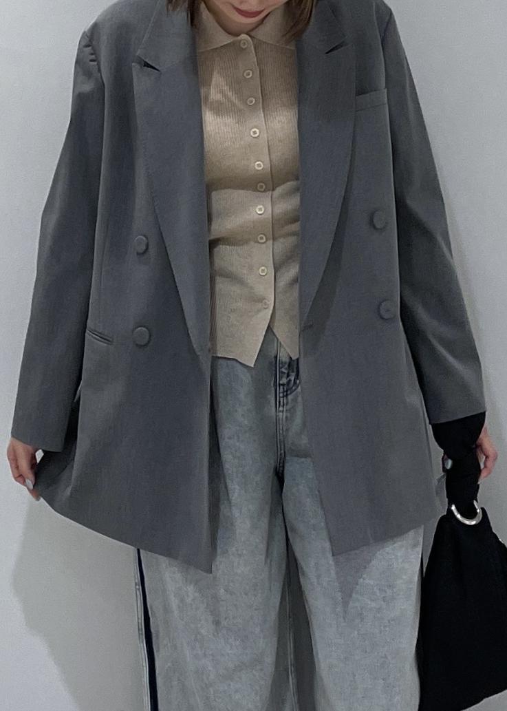 本日はダブルブレストジャケットのグレー色を使った綺麗めカジュアルコーデを紹介します!