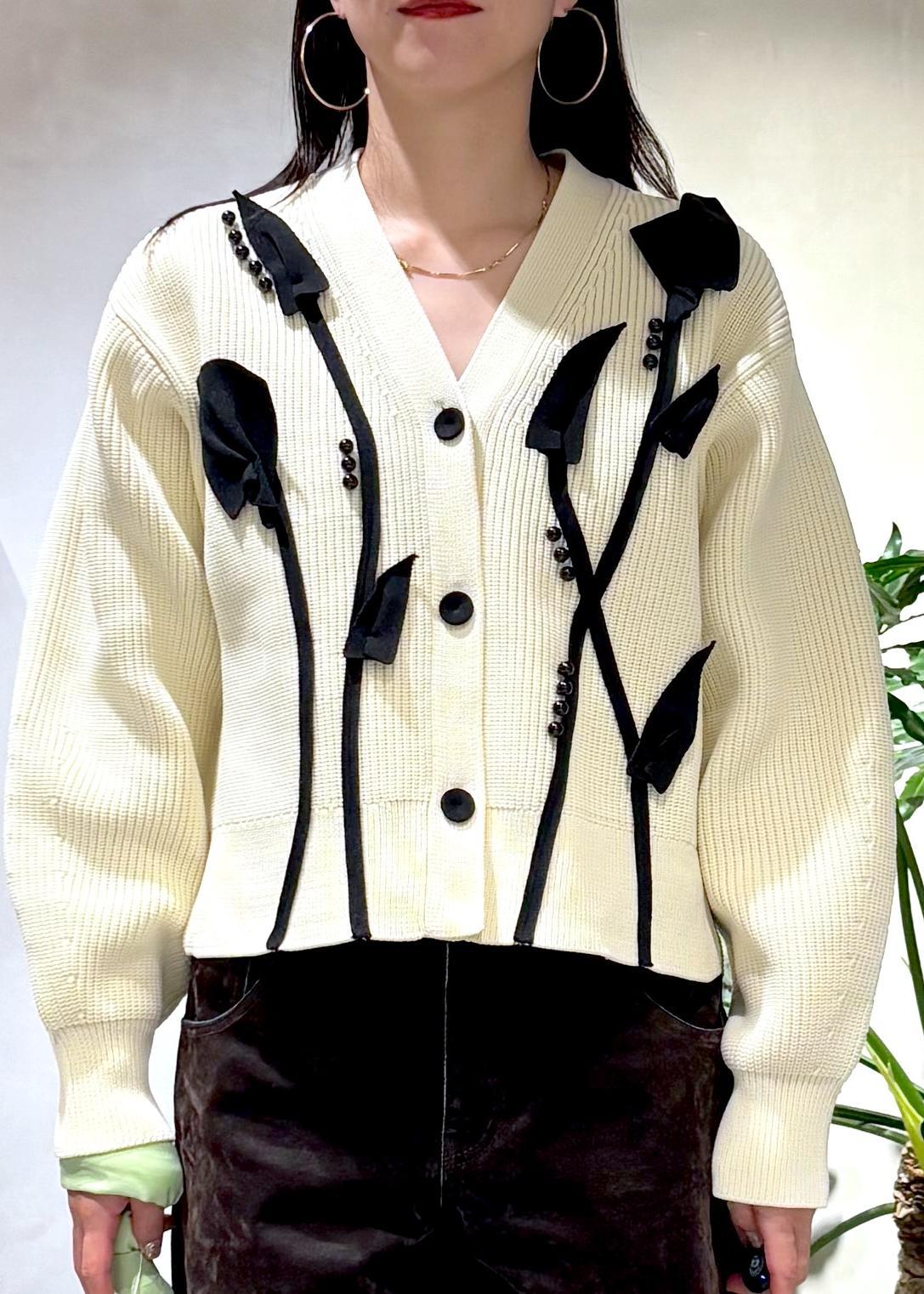 デザインモチーフが目を惹く、一枚で様になるカーディガンです。 -