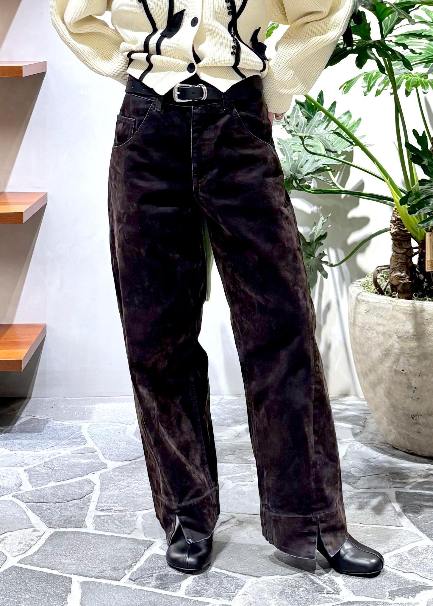 フロッキー加工している分、やや硬めの生地ですが、うっすらと下地のデニムが透けて見えて履くだけでオシャレなデニムです! -