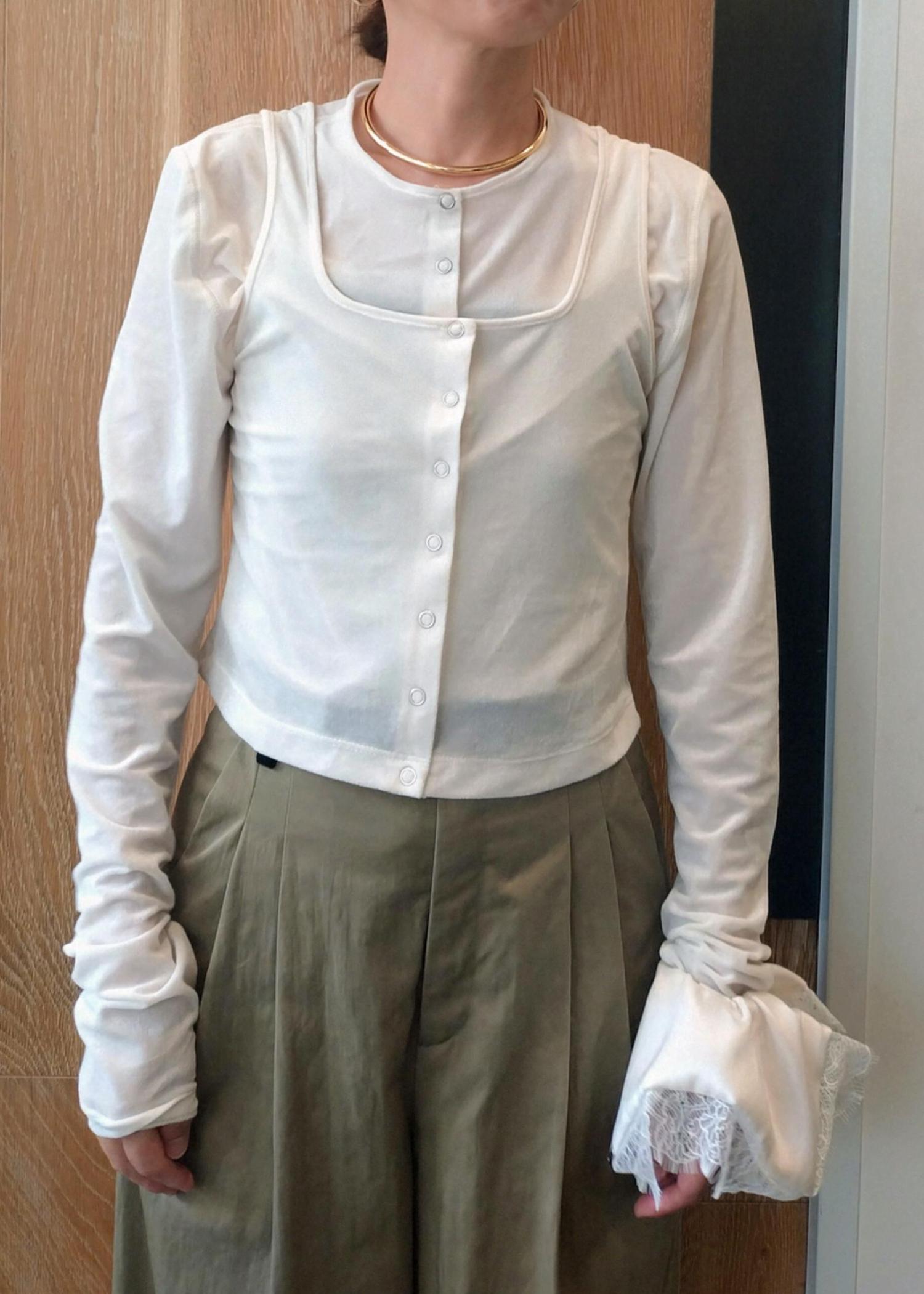マルチに着れるカーディガンとタンクトップのセット。