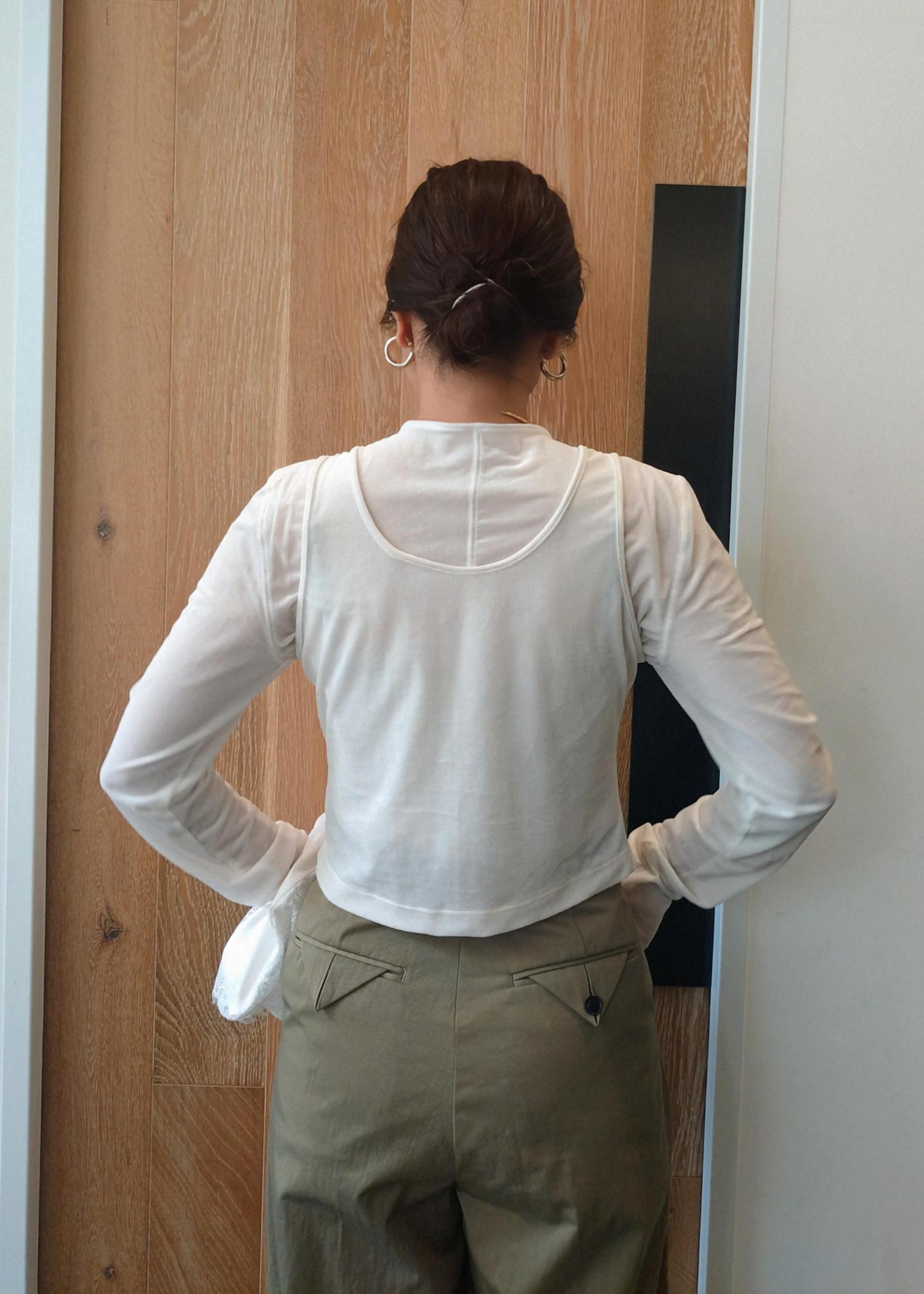 本日はベロア素材がポイントな万能なトップスのご紹介です。
