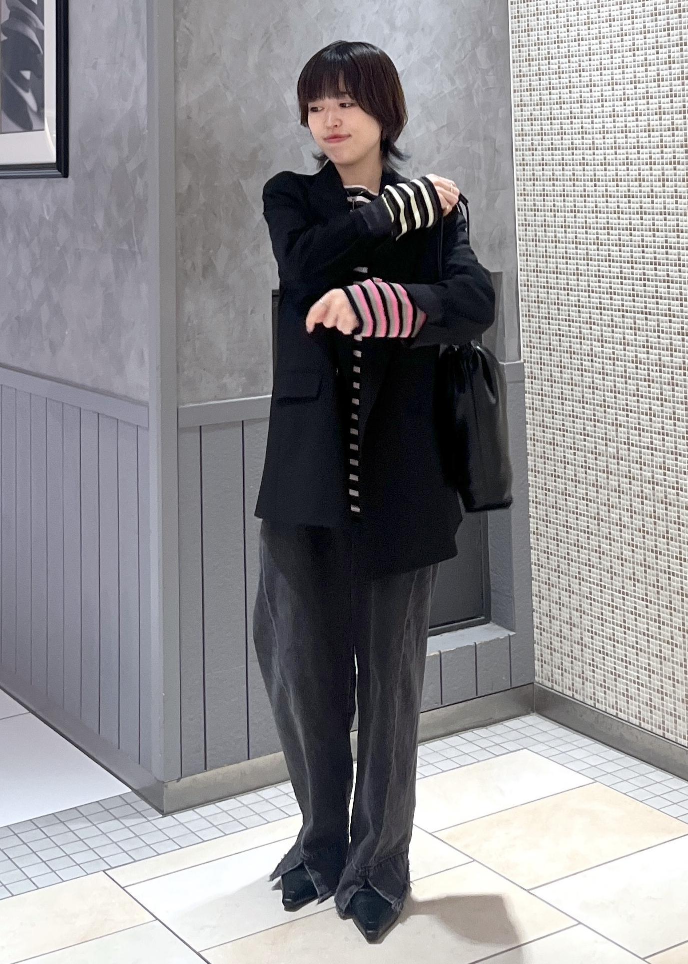 ジャケット合わせでもマルチボーダーの可愛さが伝わります❤︎