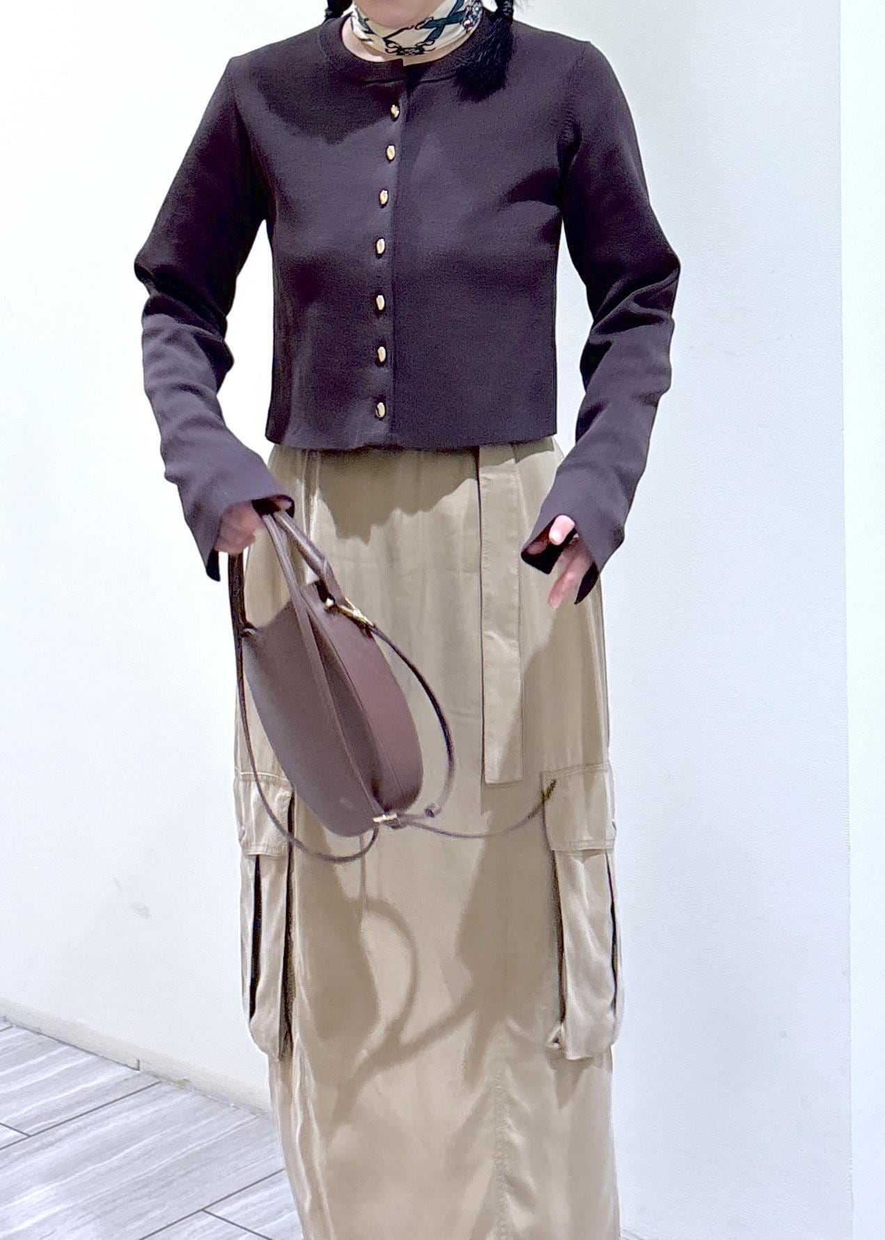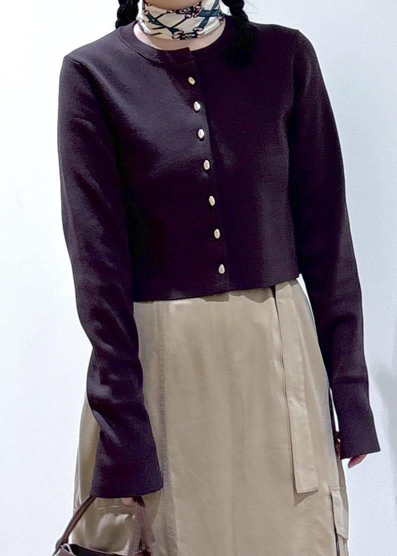 ADAM ET ROPÉ FEMMEセレクトレングスクルーネックニットカーディガンブラウン / 36¥14,300レビュー程よくフィット感がありながら、体のラインを拾わずスッキリ!