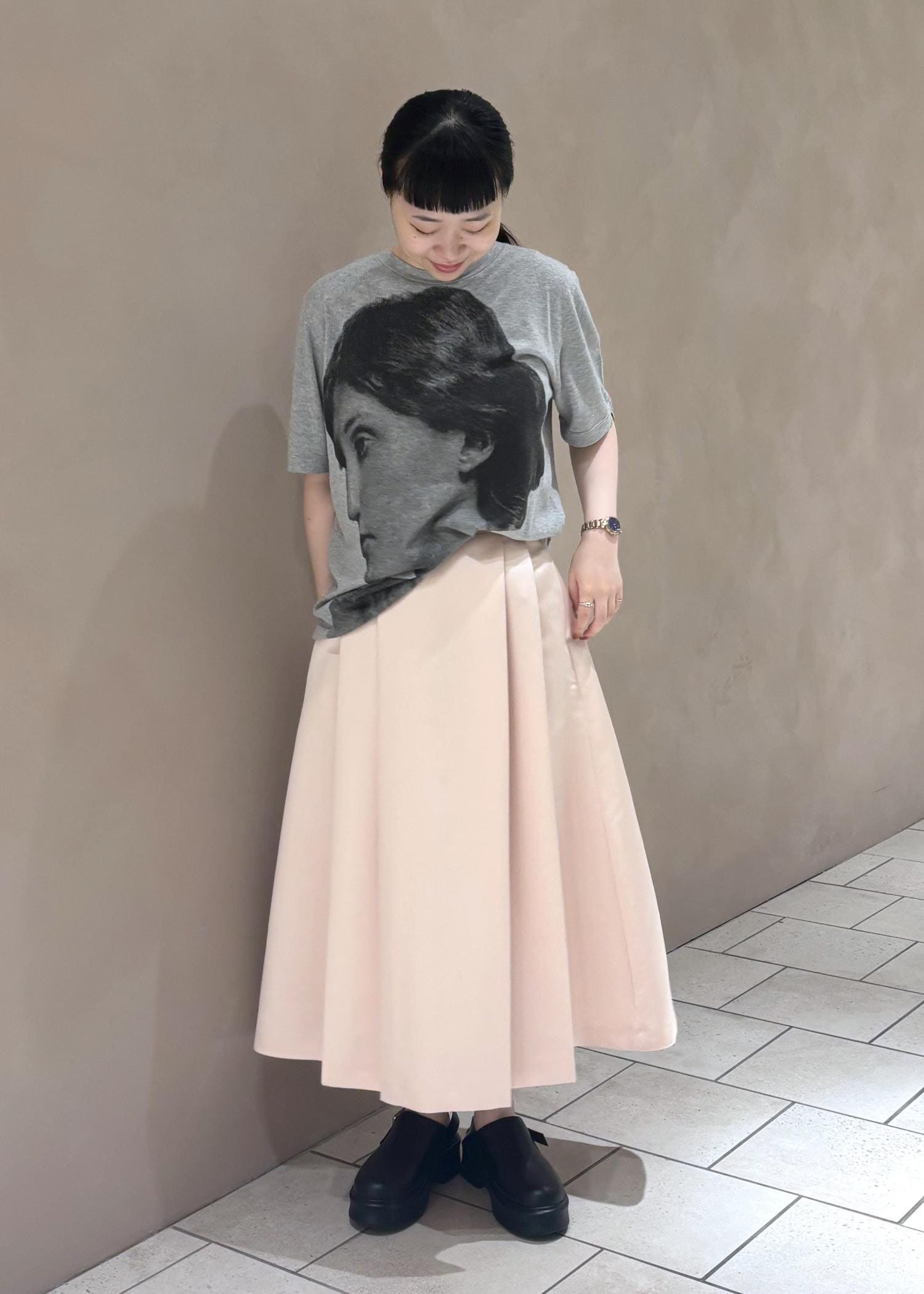 スカートは、色味がペールトーンのピンクで、フレアの形が上品です。