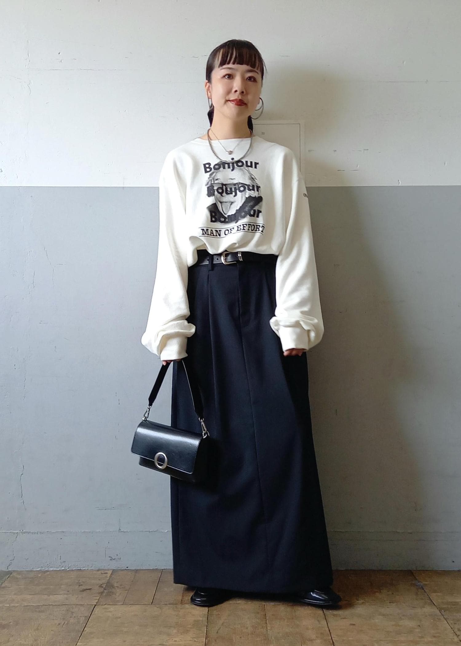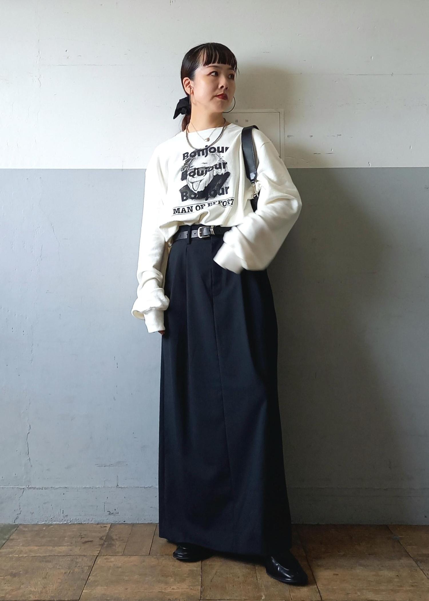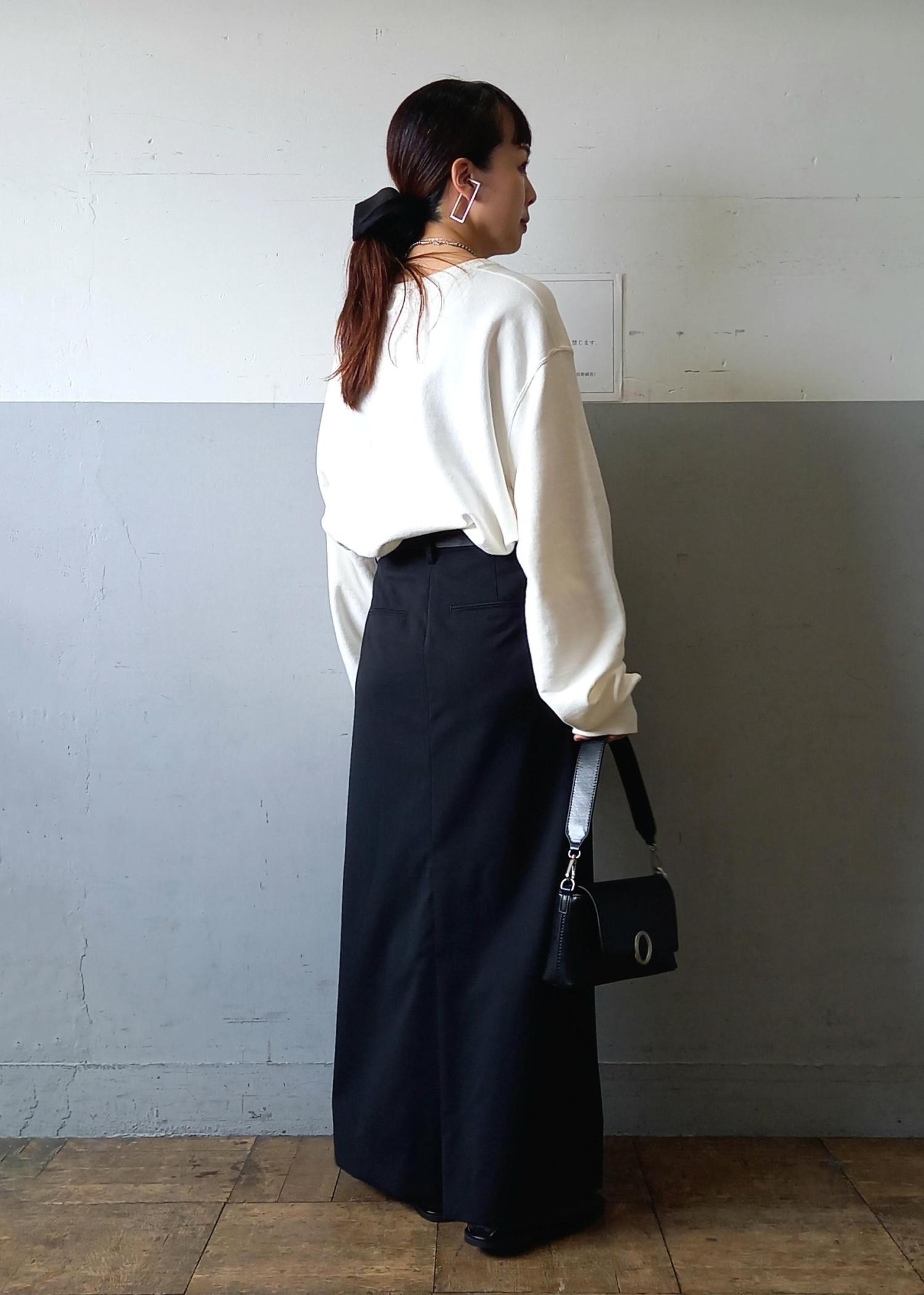 今回もスカートと。そしてカラーも白黒のモノトーン。
