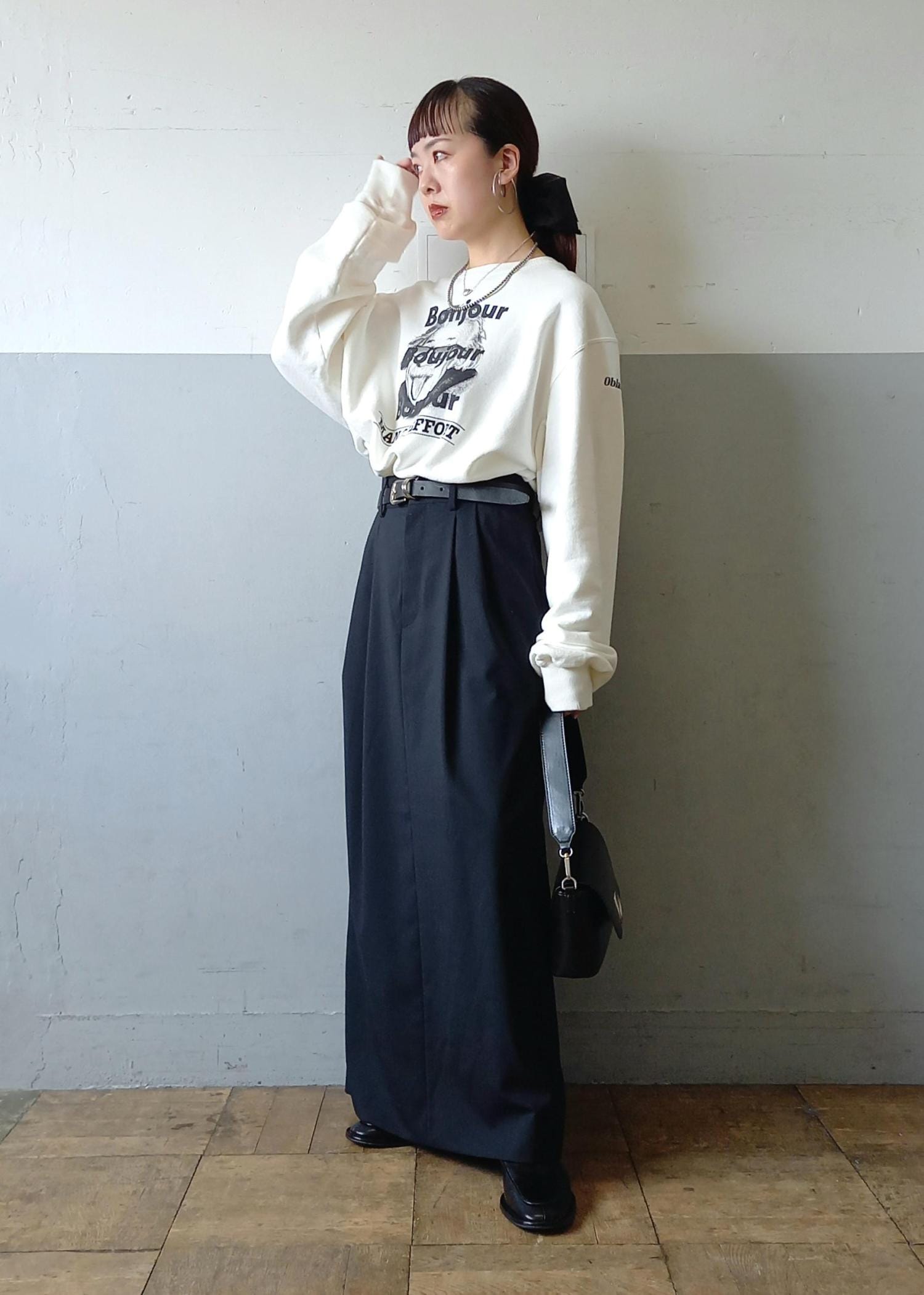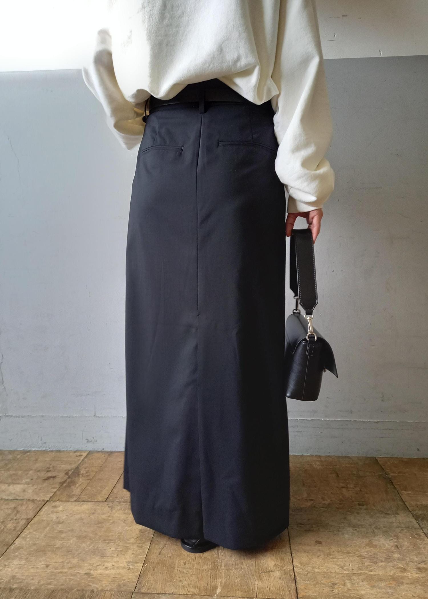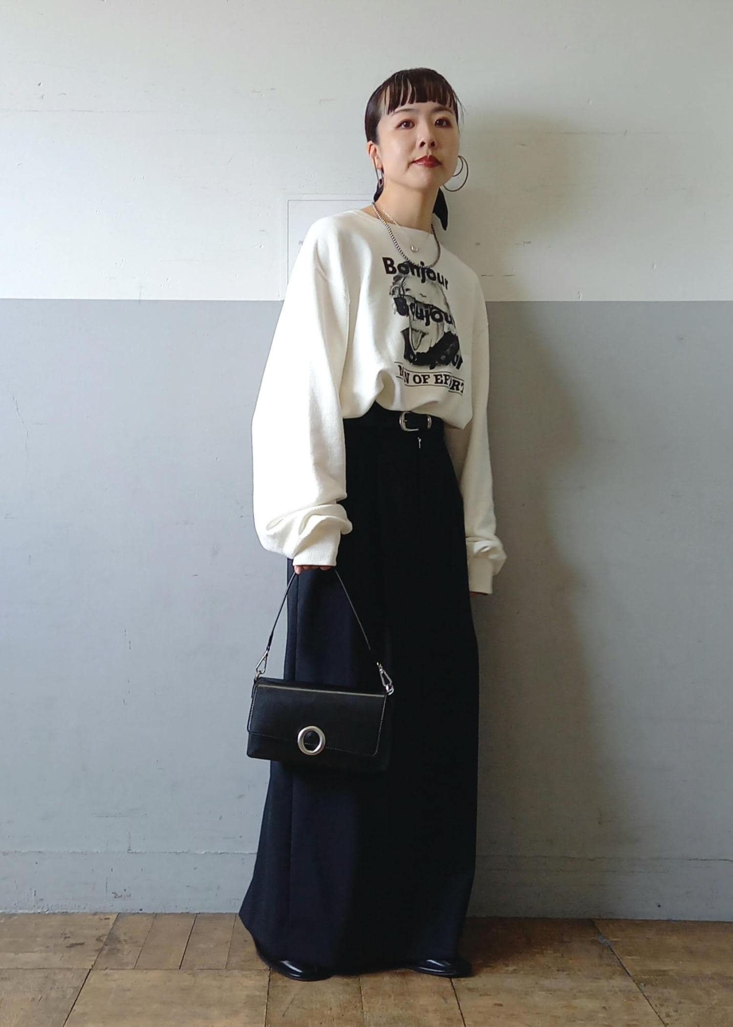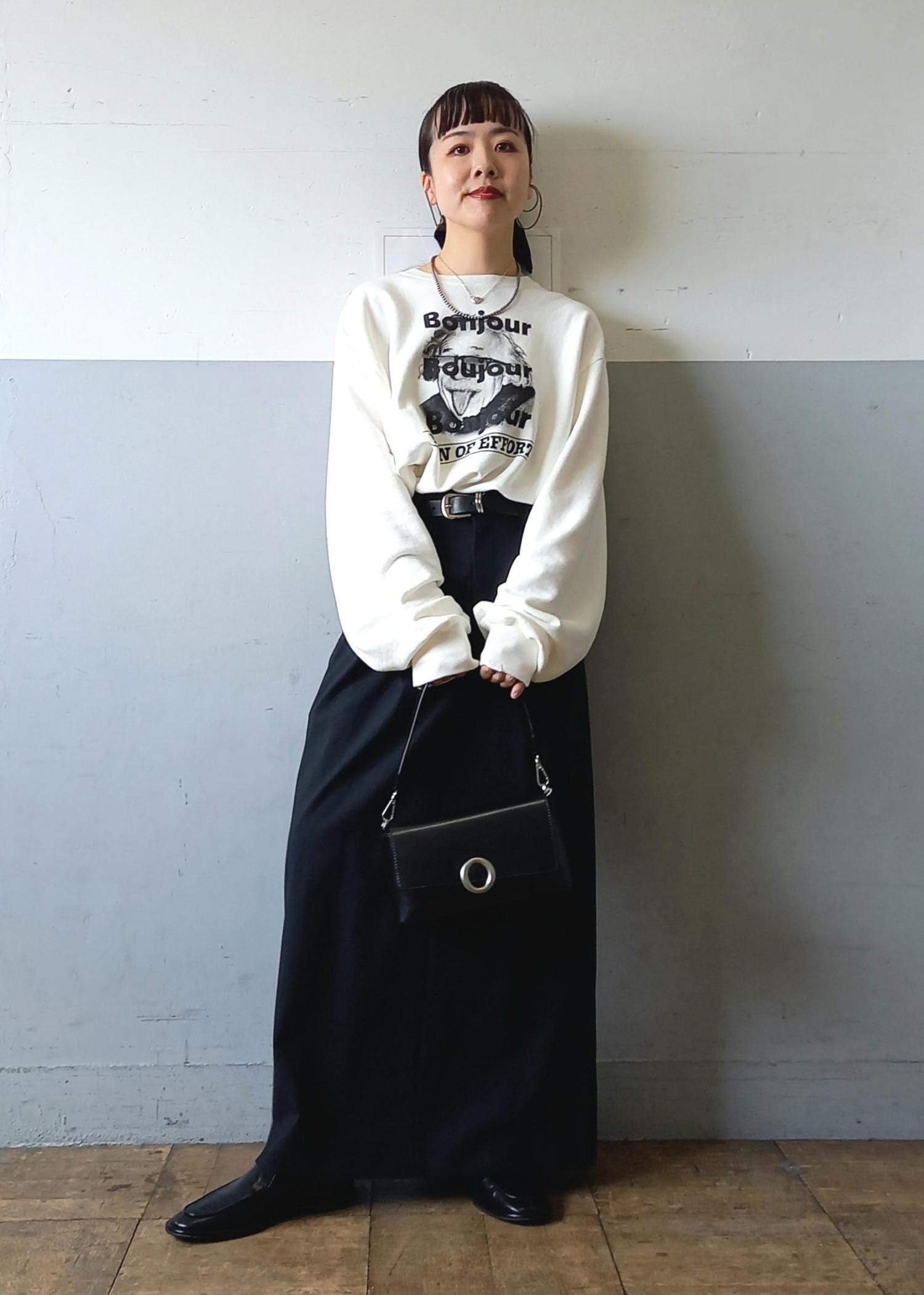 今回もスカートと。そしてカラーも白黒のモノトーン。