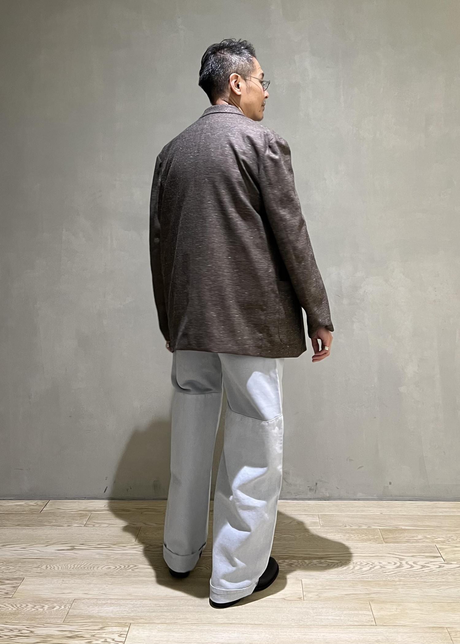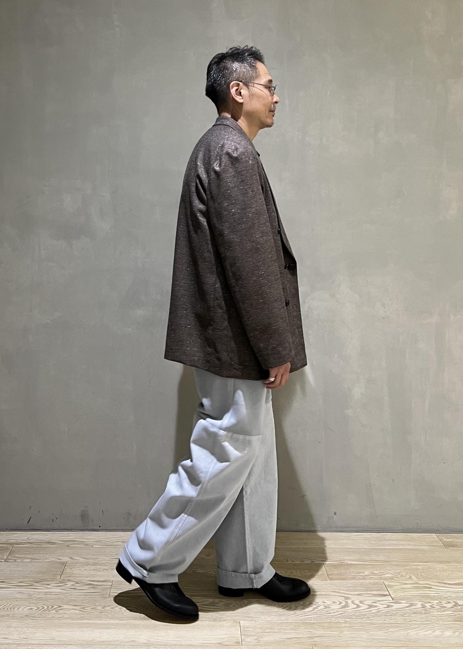 ジャケットをオーバーサイズめに、ボトムもボリュームを持たせ、リラックスしたイメージでスタイリングしました!