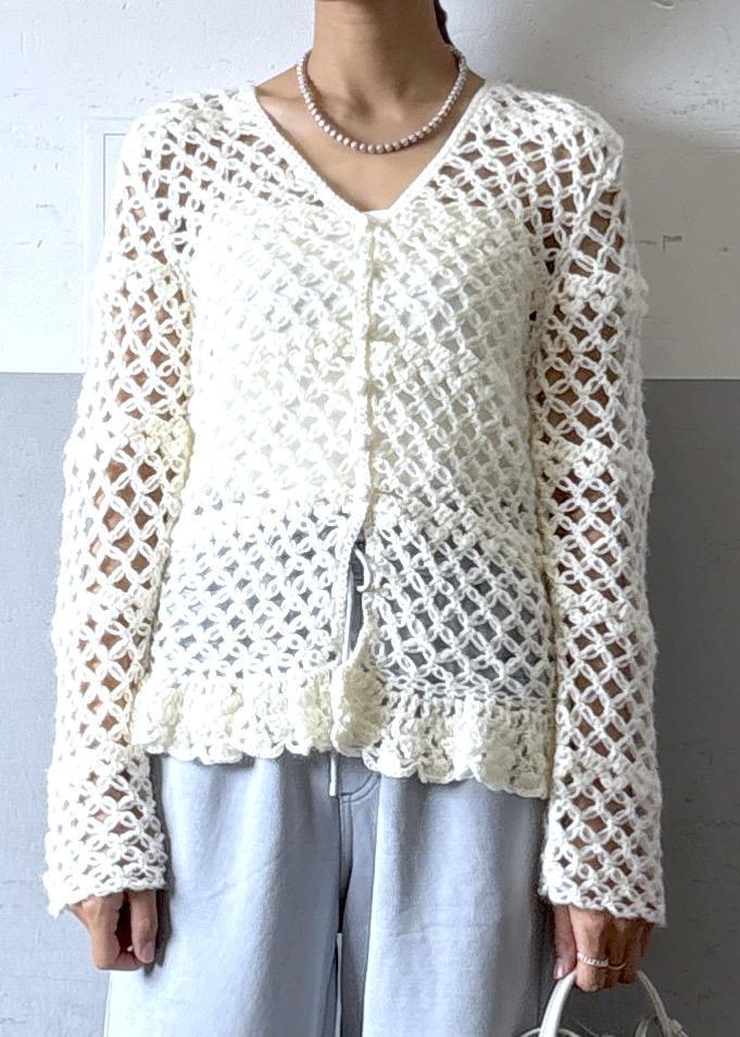 EMOELLE【EMOELLE】クロシェカーディガンキナリ / F¥26,400レビュー編み地が可愛いニットカーディガンです。