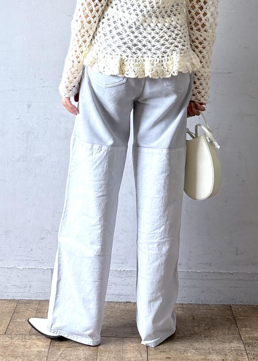スウェットとデニムの切り替えデザインが可愛いデニムです。