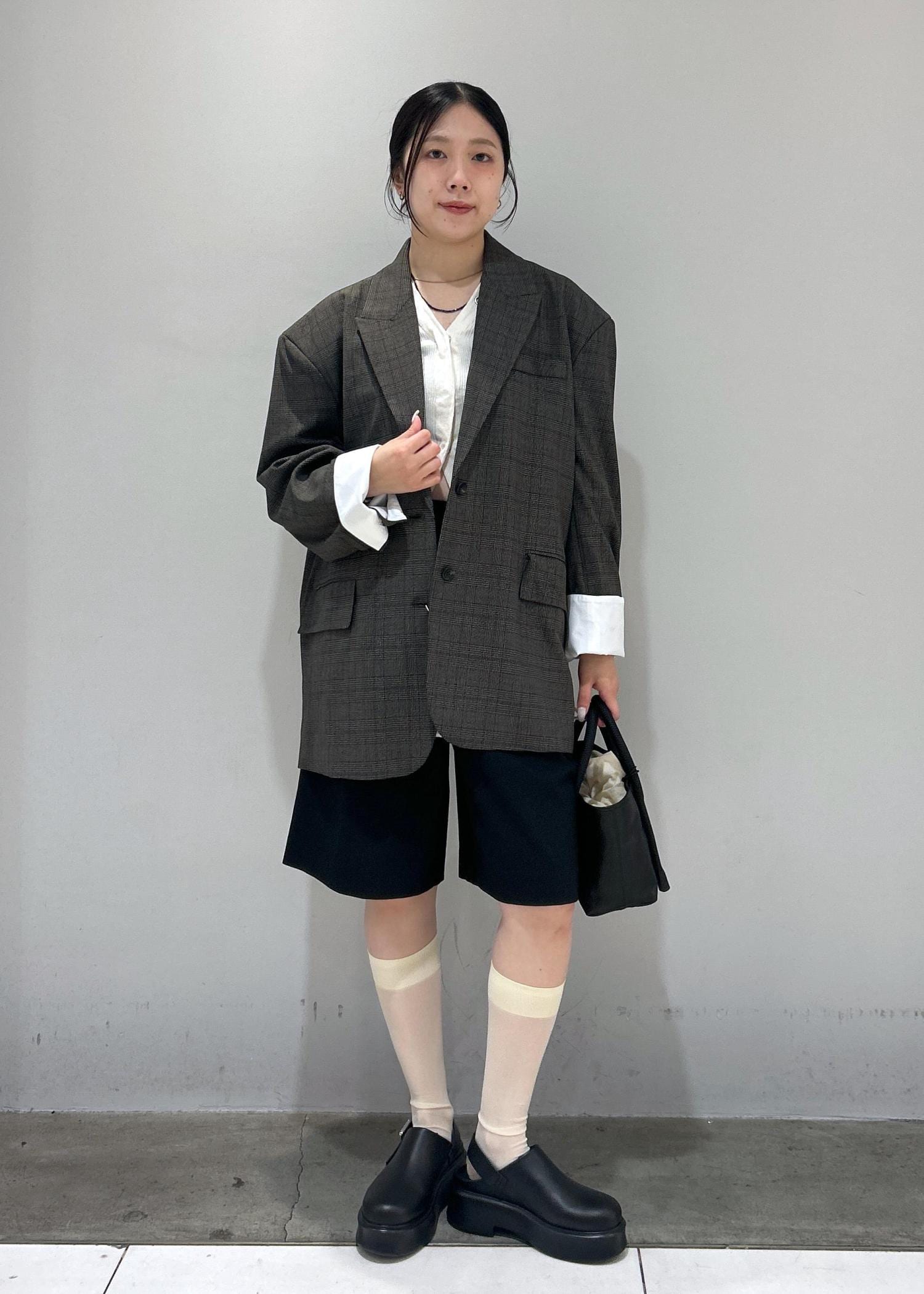 個人差あると思いますが、私は若干膝が見える丈感でした。シルエットは太すぎないスラックスのような印象で、綺麗なコーディネートに合わせやすいです◎