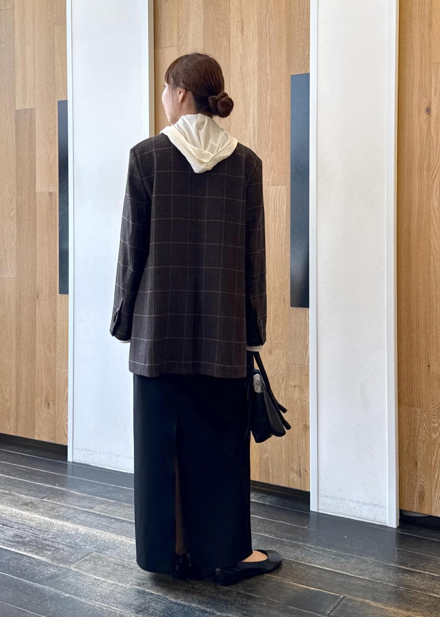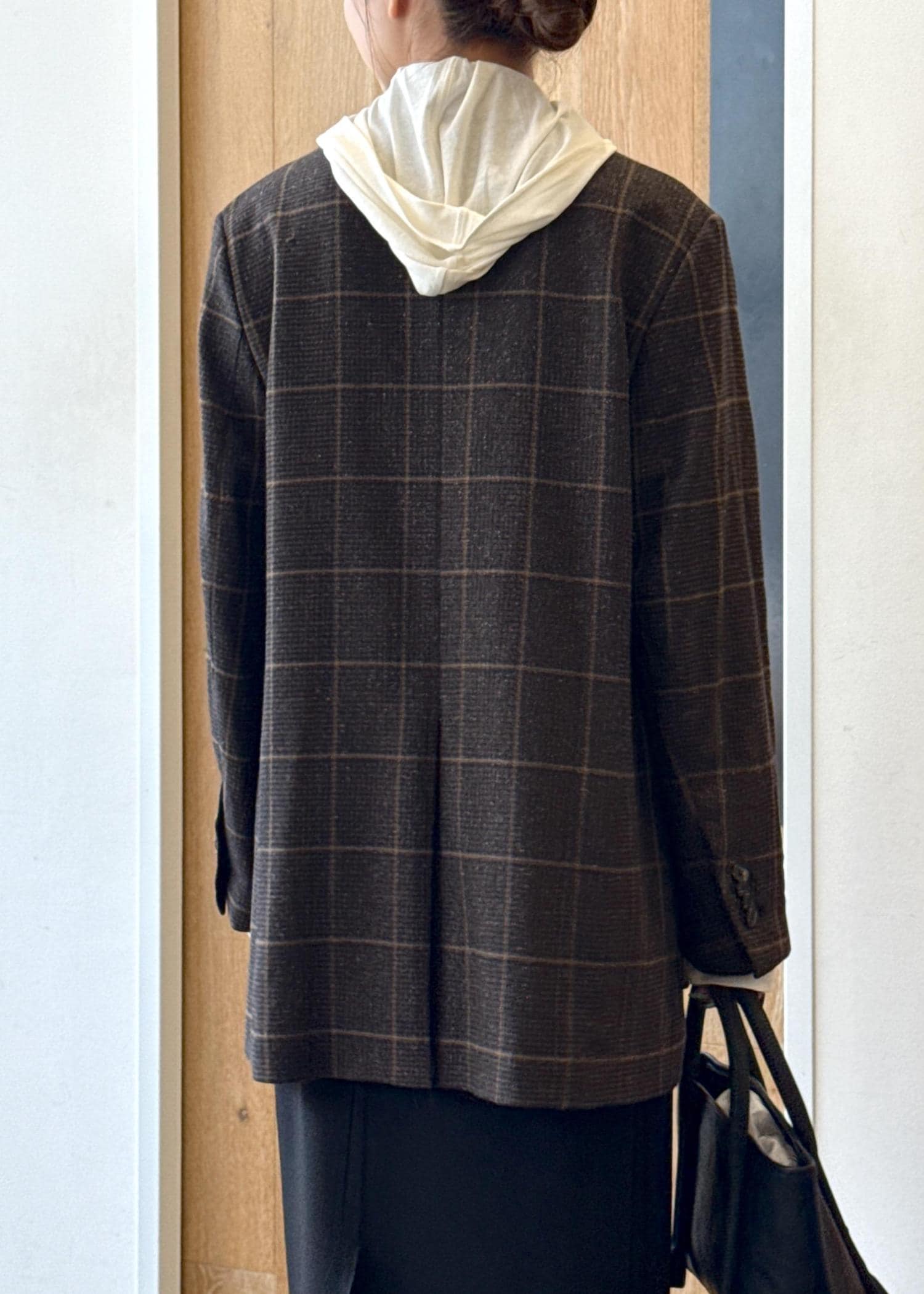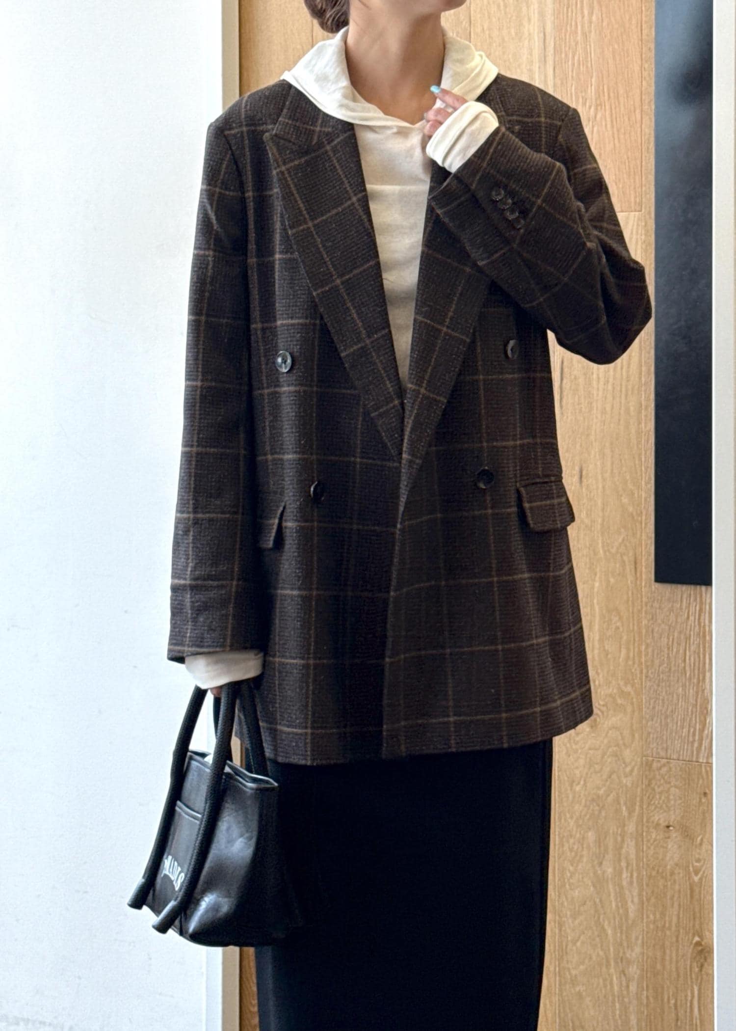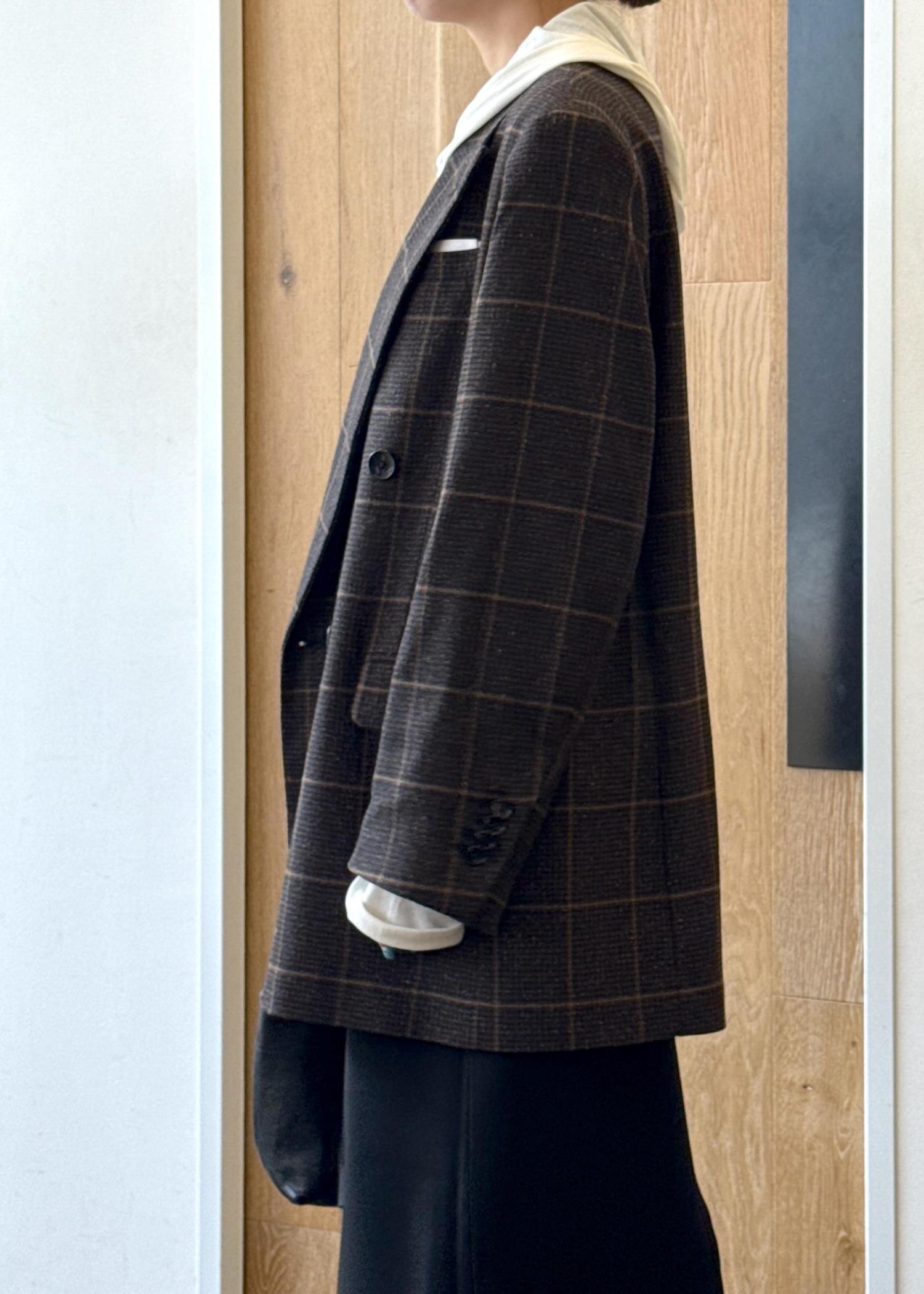 ADAM ET ROPÉ FEMMEダブルブレストツイード&チェックジャケットブラウン / 36¥40,700レビュー36サイズでもゆったりオーバーサイズです。厚手の生地感でアウターかわりになります。