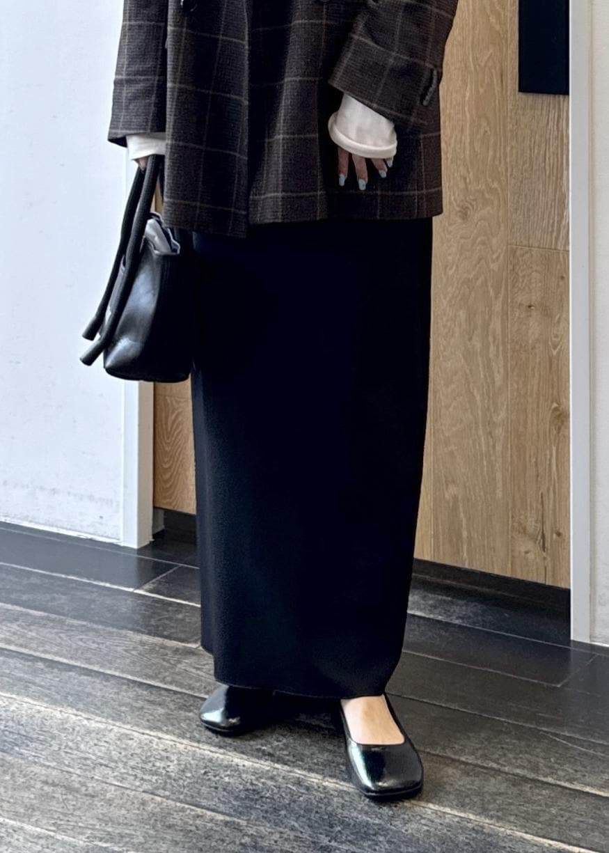 EMOELLE【EMOELLE】バックスリットIラインロングスカートブラック / 36¥26,400レビューウエストは大きく腰で履いてます。