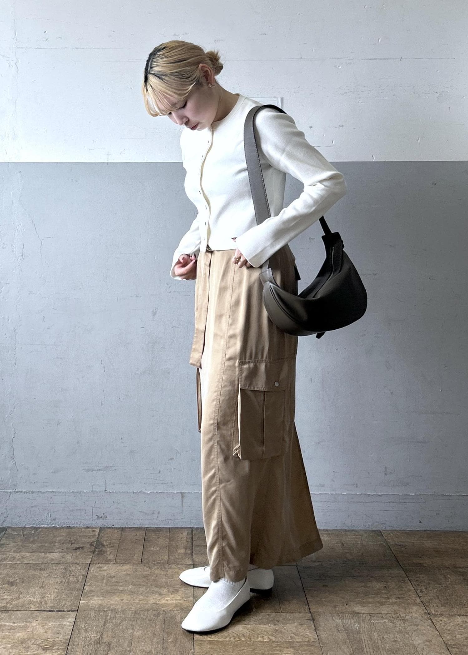 カーディガン×カーゴスカートコーデ