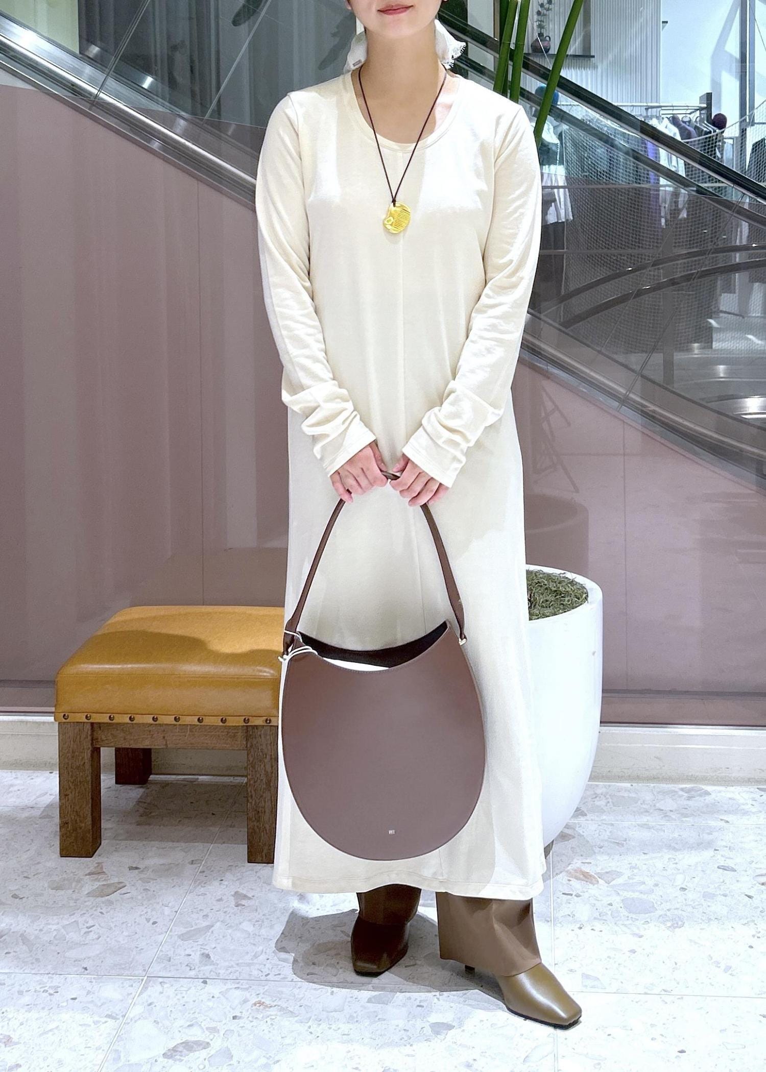 可愛い卵型のカバンです。マットなさらっとした生地が特徴的で綺麗めにはもちろん、カジュアルスタイルのワンポイントにもぴったりです。たっぷり入る容量も嬉しいポイント◎