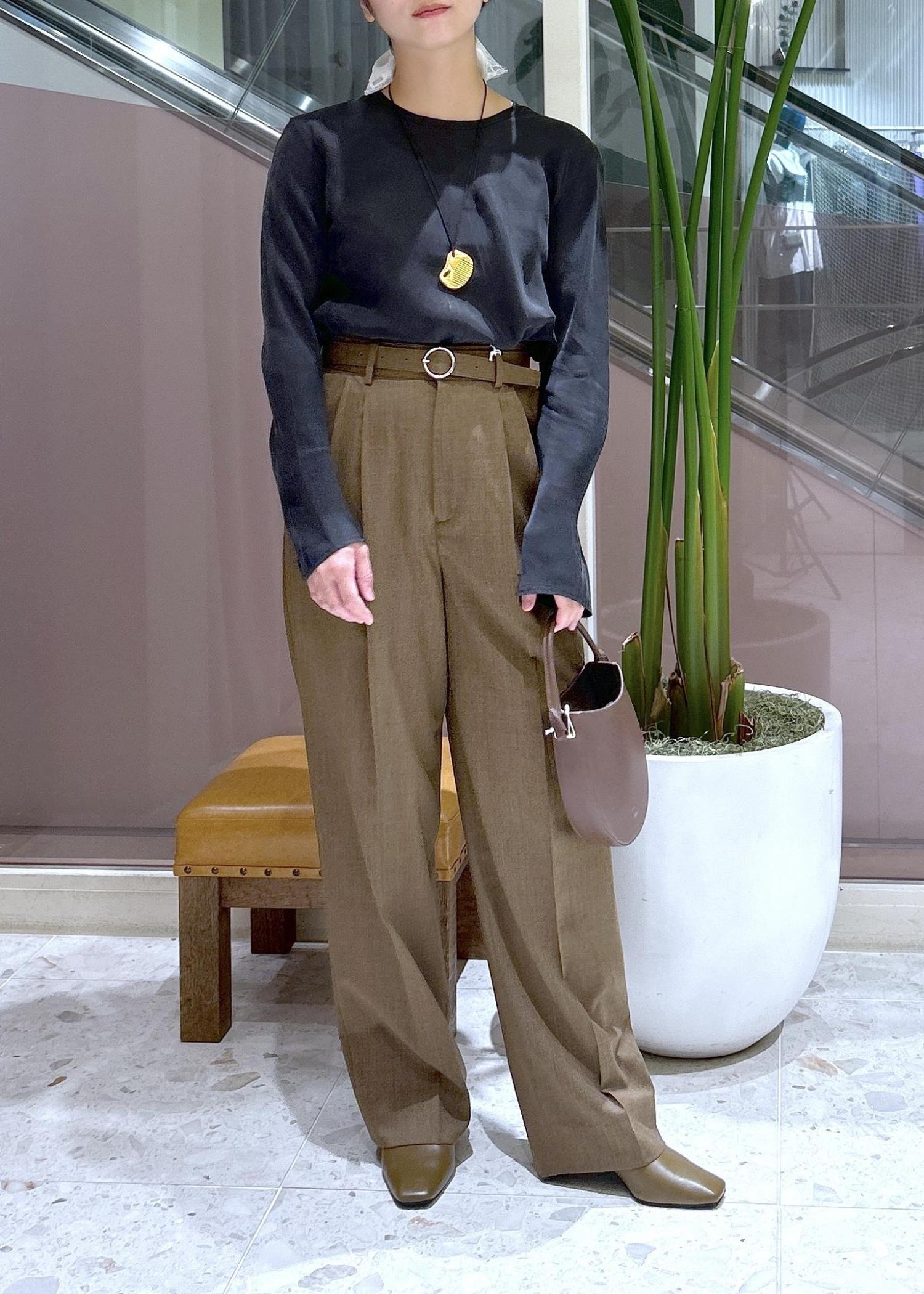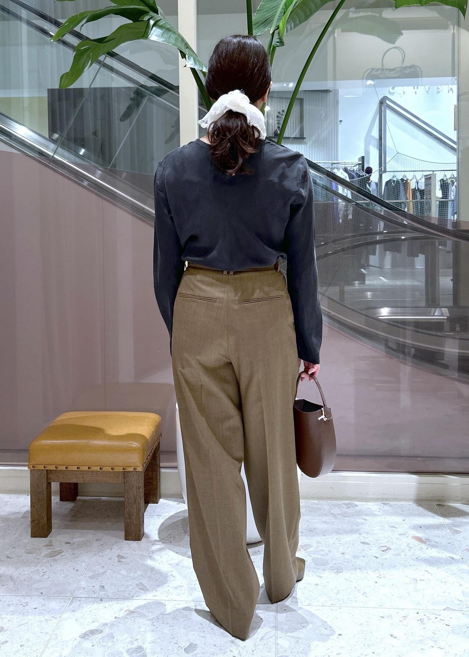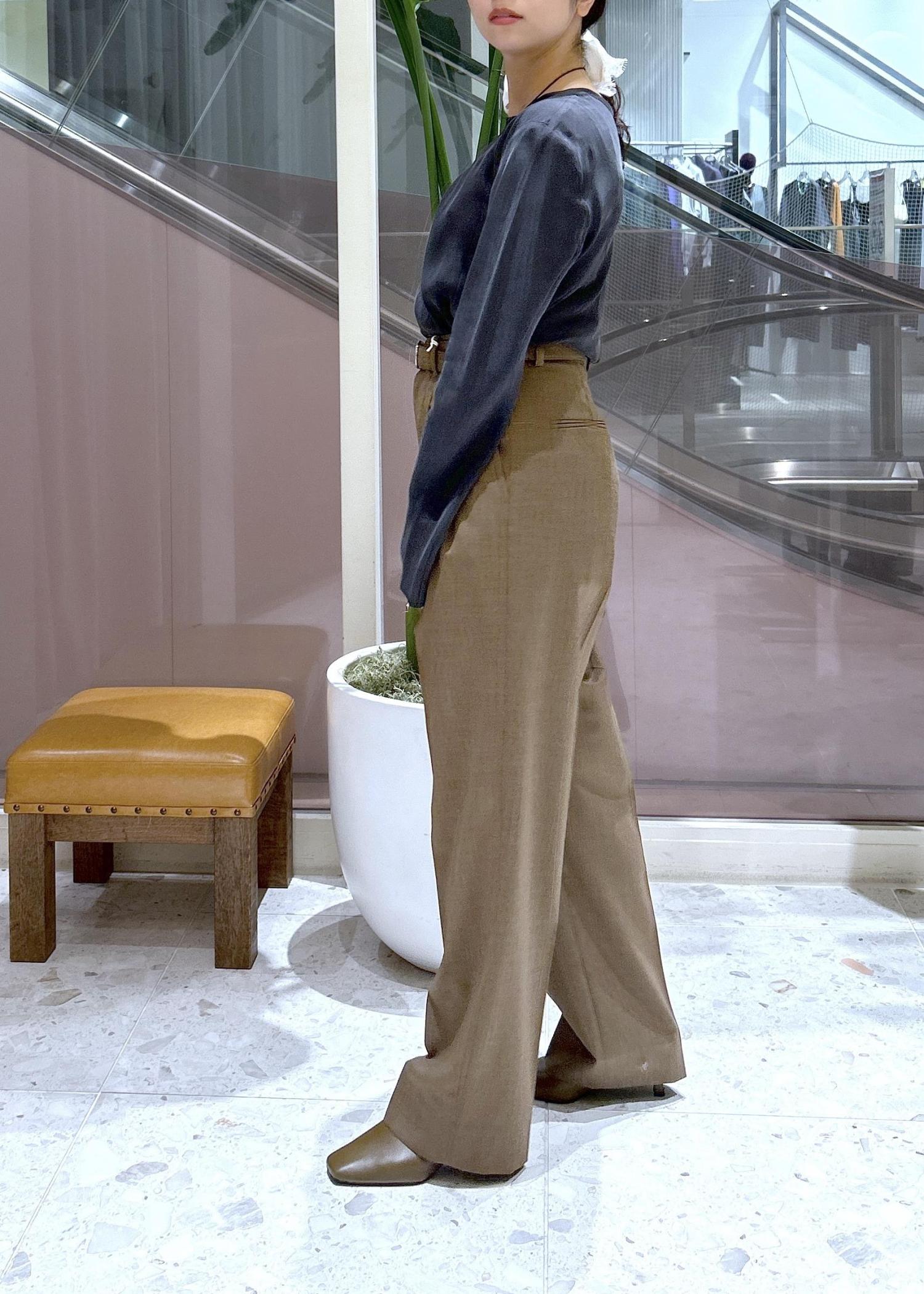 すっきりと細めのシルエットです。センタープレス加工がされているのでスタイル良く足が長く見えます!
