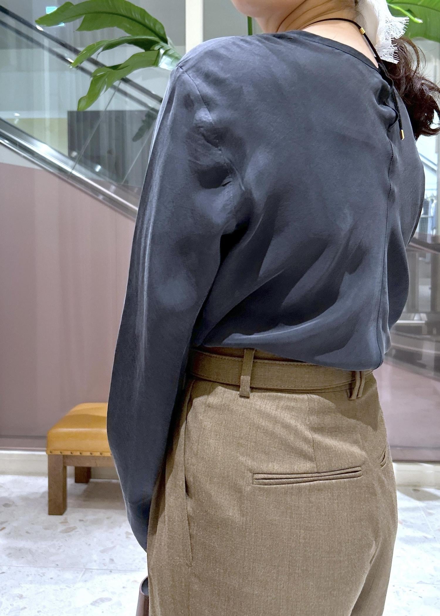 シルク素材でとても品のあるアイテム。レースデザインが施されているので女性らしさたっぷりでくくるだけで華やかになります♪