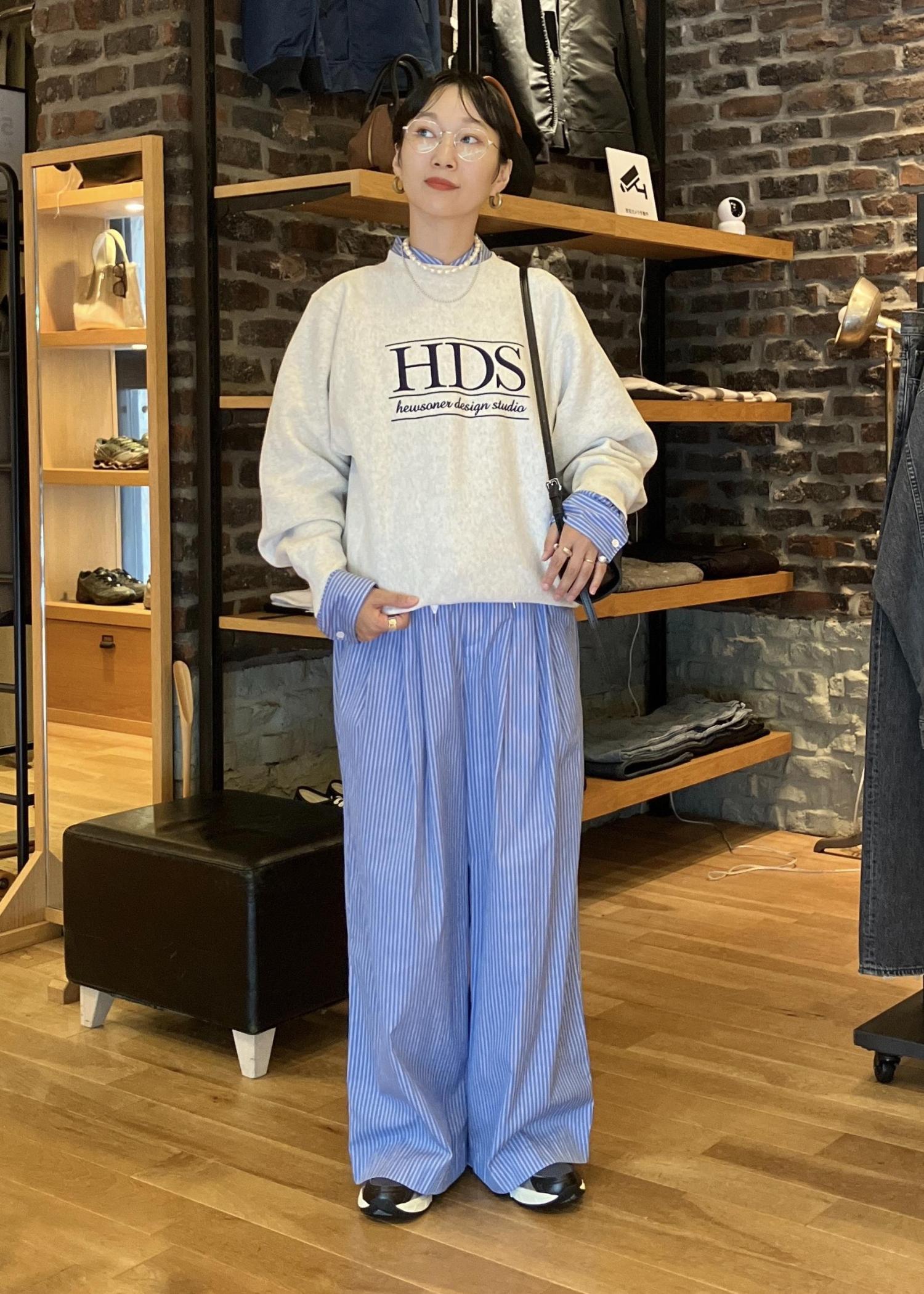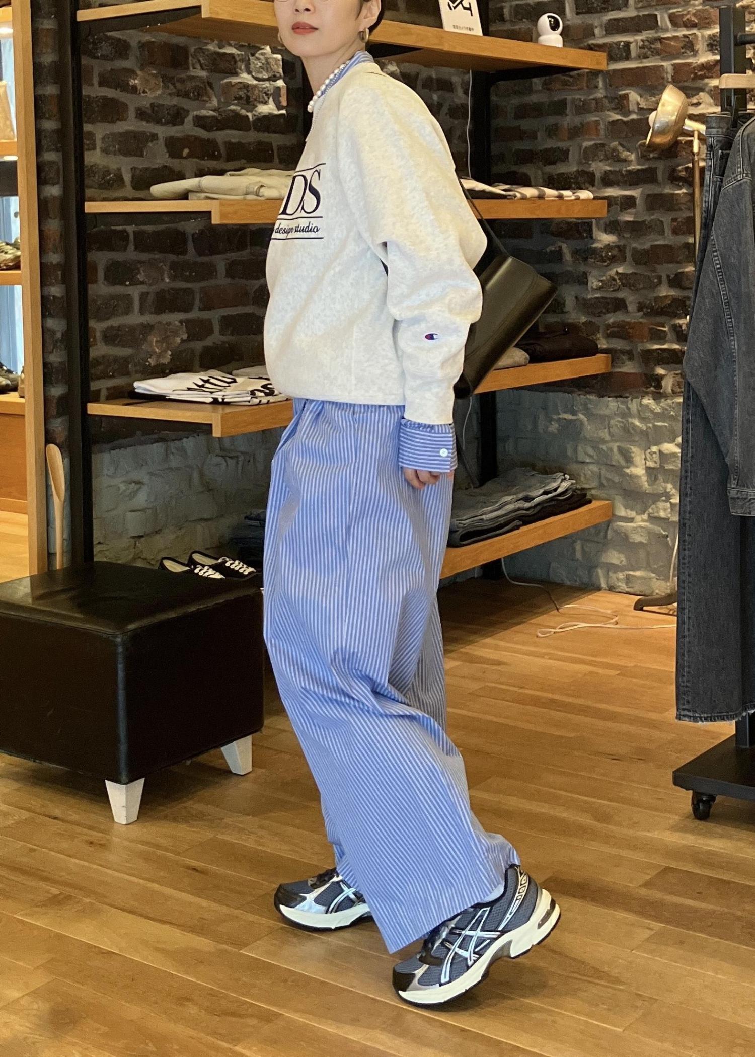 セットアップで着ても、Tシャツにジャケットコーデ、秋になったらスウェットやニット、意外と着回しの出来るパンツですよ! -