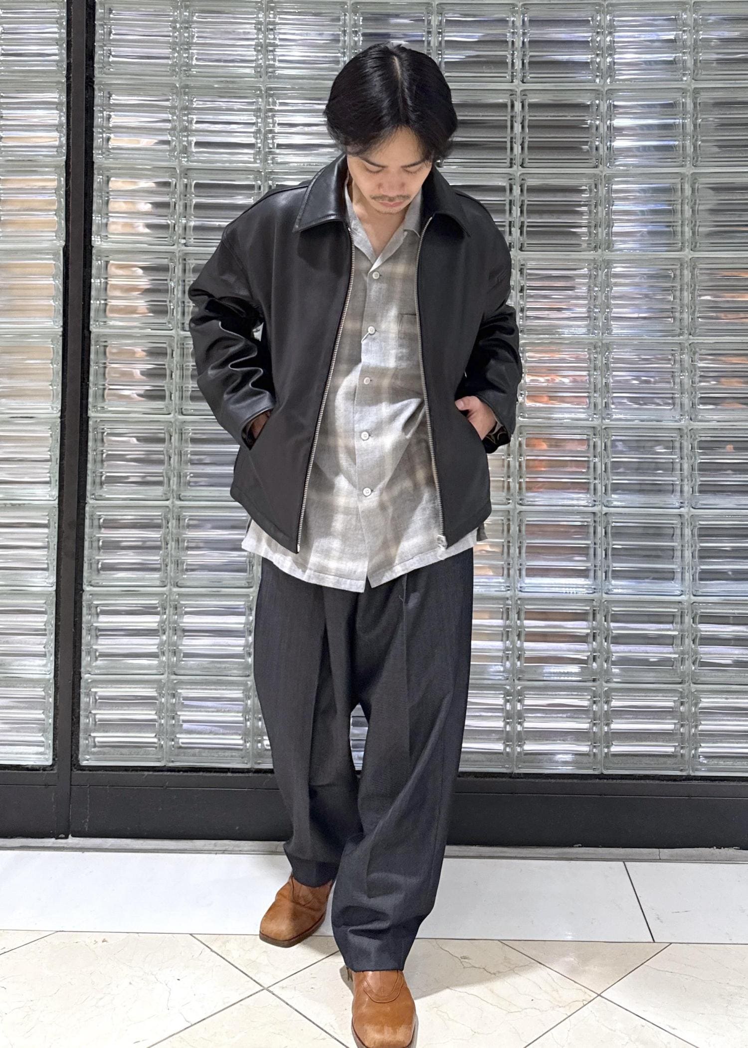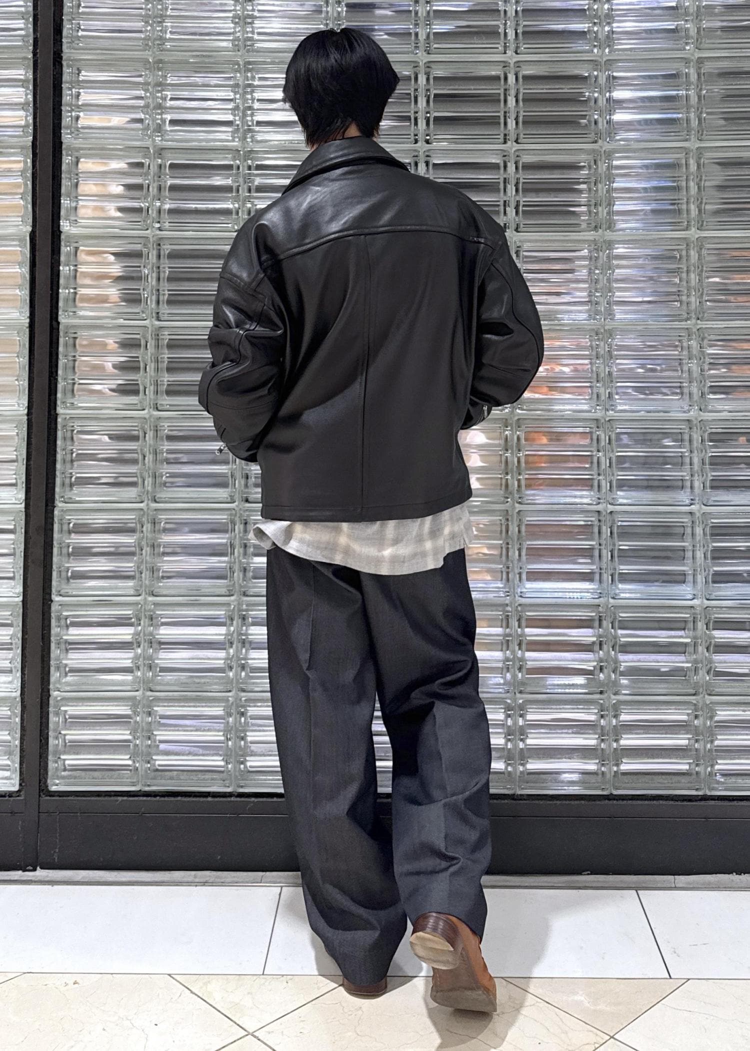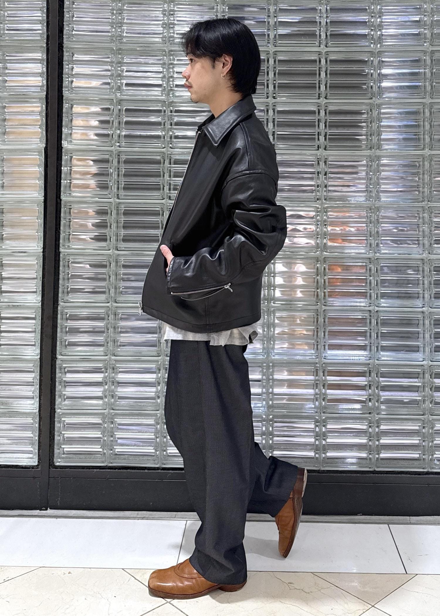 ADAM ET ROPÉ HOMMEラムレザー ジップアップ ブルゾンブラック / M¥64,900レビュー丈感はスッキリとしていますが、着込める身幅の余裕感があります。