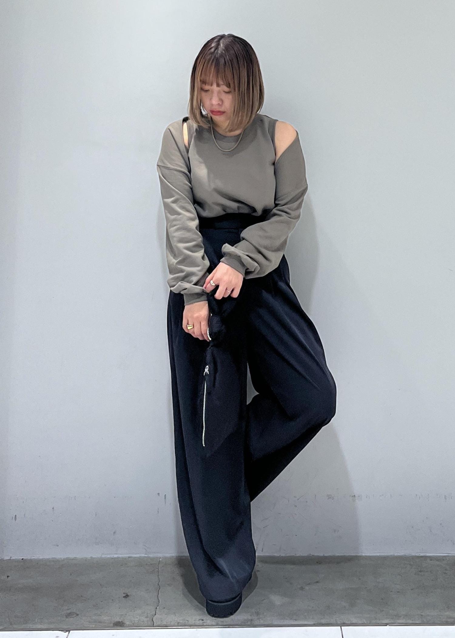 スウェット素材で着心地も楽ちんですが、肩がちらりと見えるデザインでカジュアルすぎずに着用できます♡