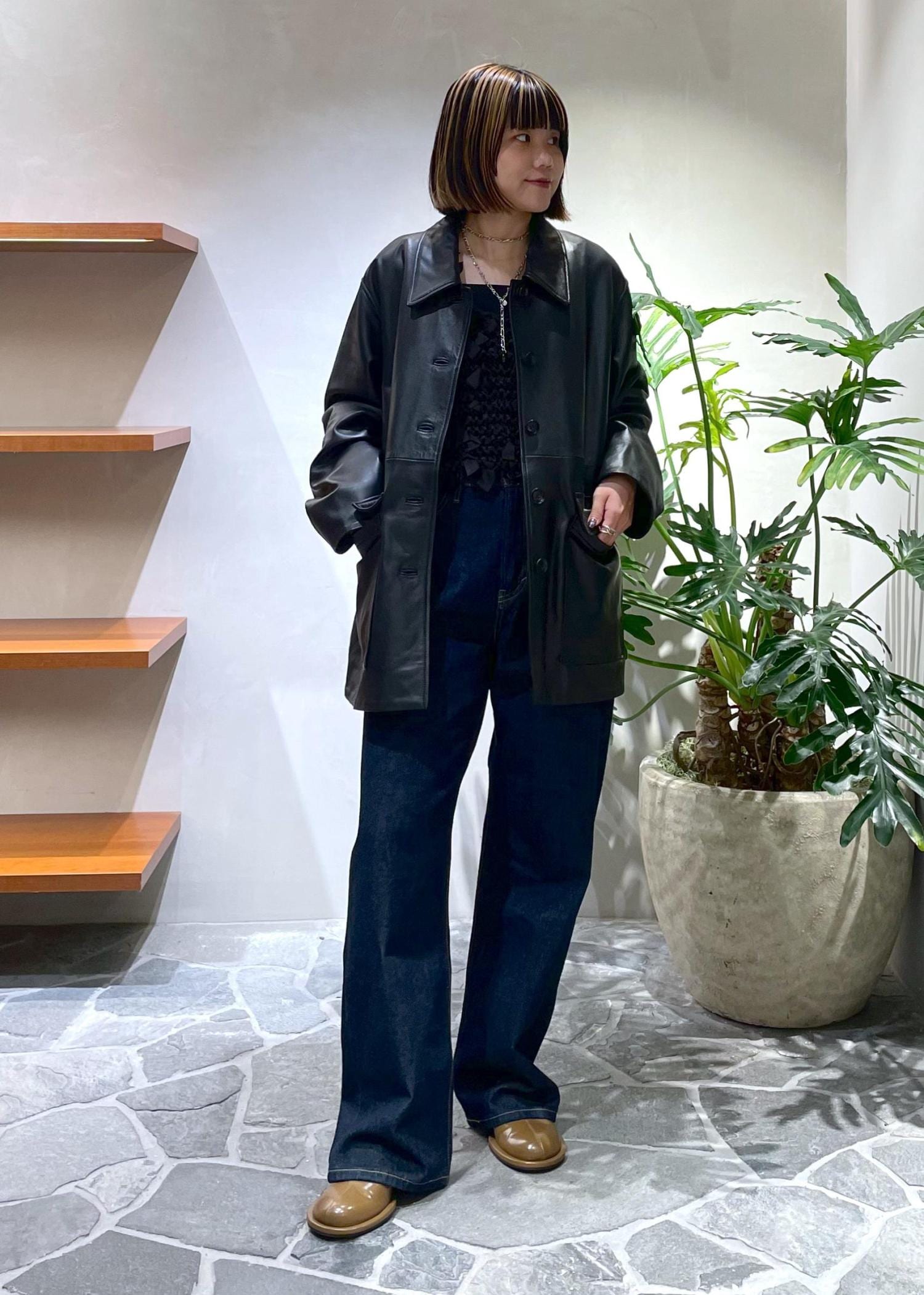 今季おすすめのアウター、レザーカーコートを使ってスタイリング!