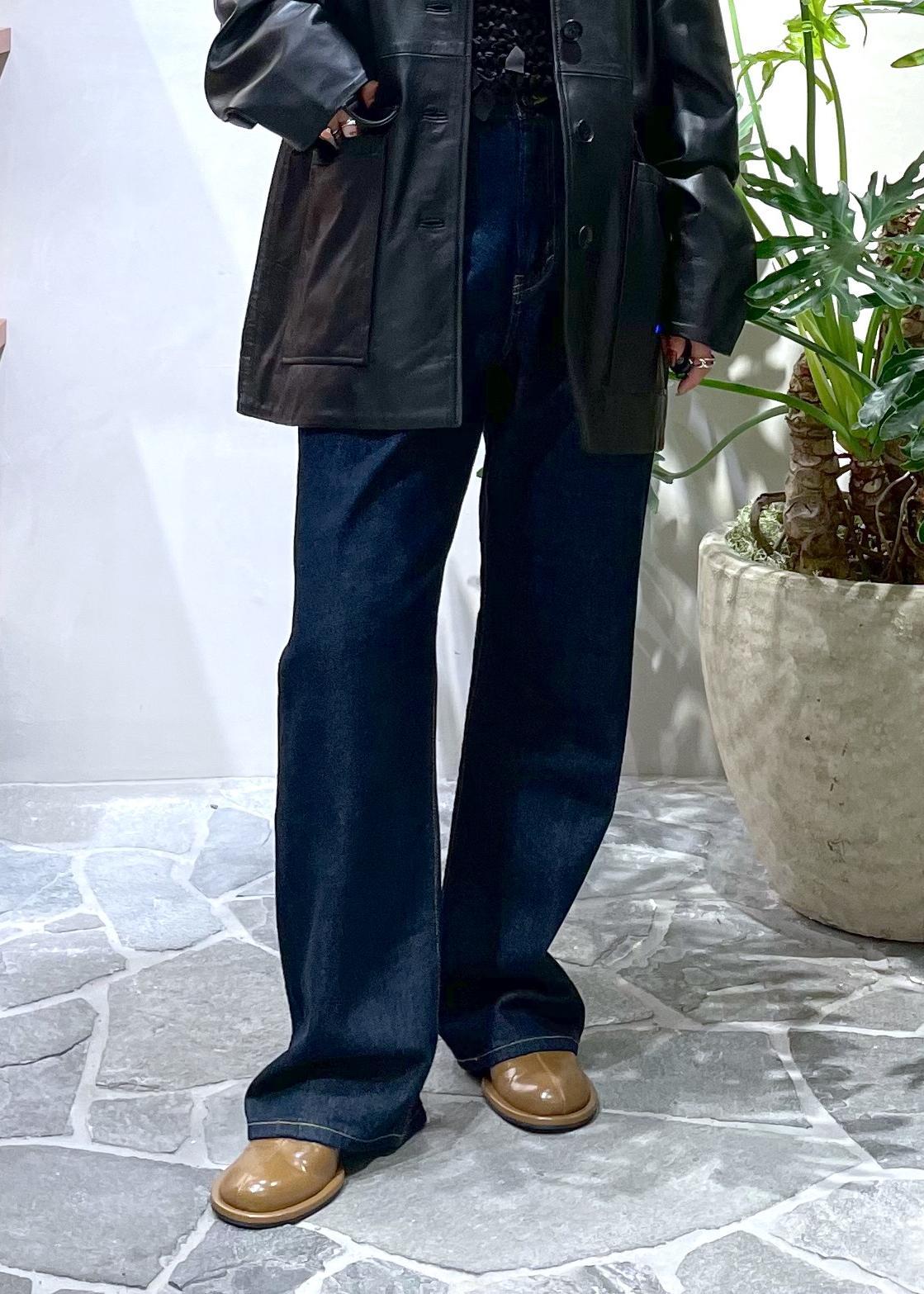レザー×デニムのメンズライクなスタイリングなので、ミュールを合わせて女性らしさをプラスしてみました。