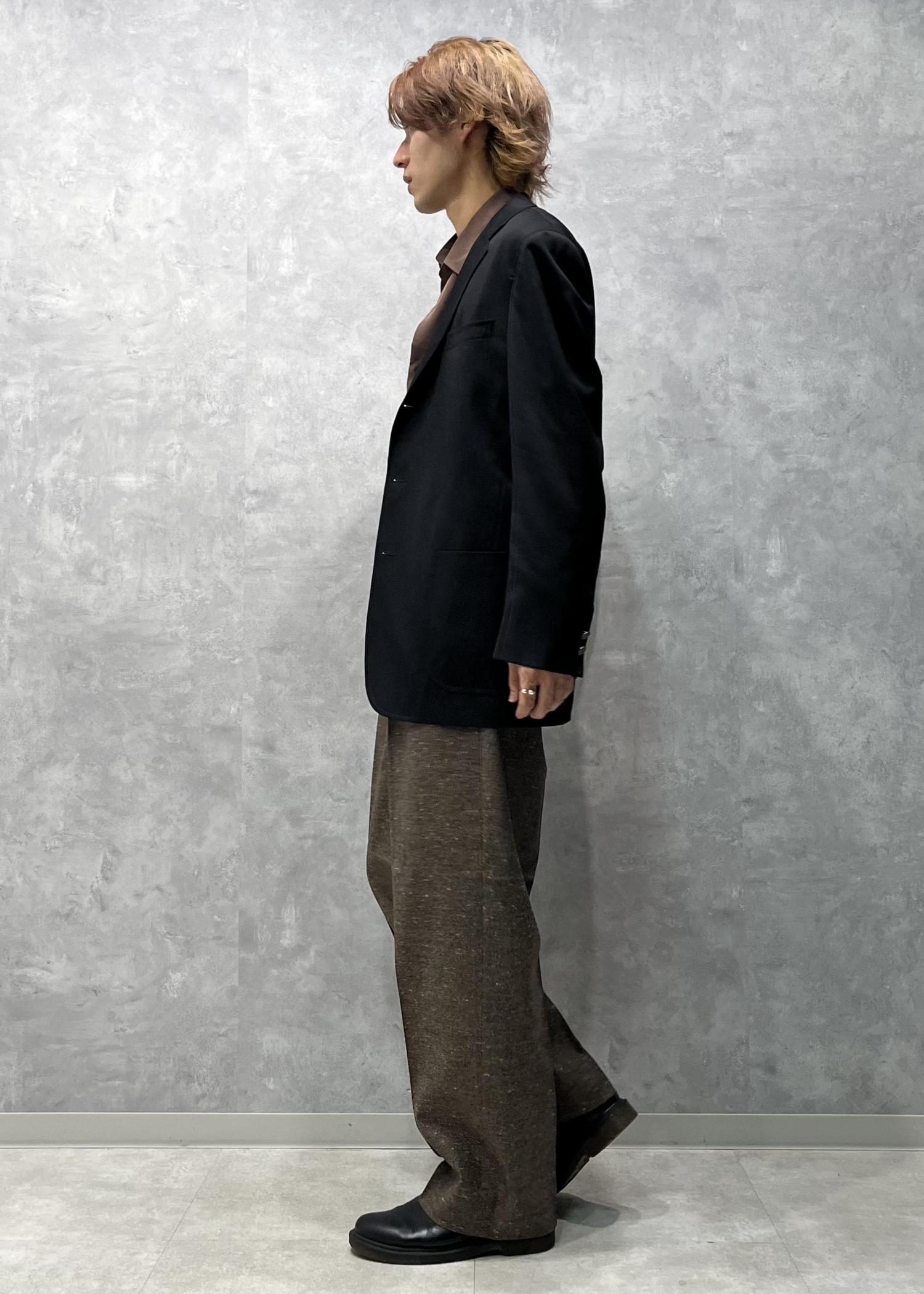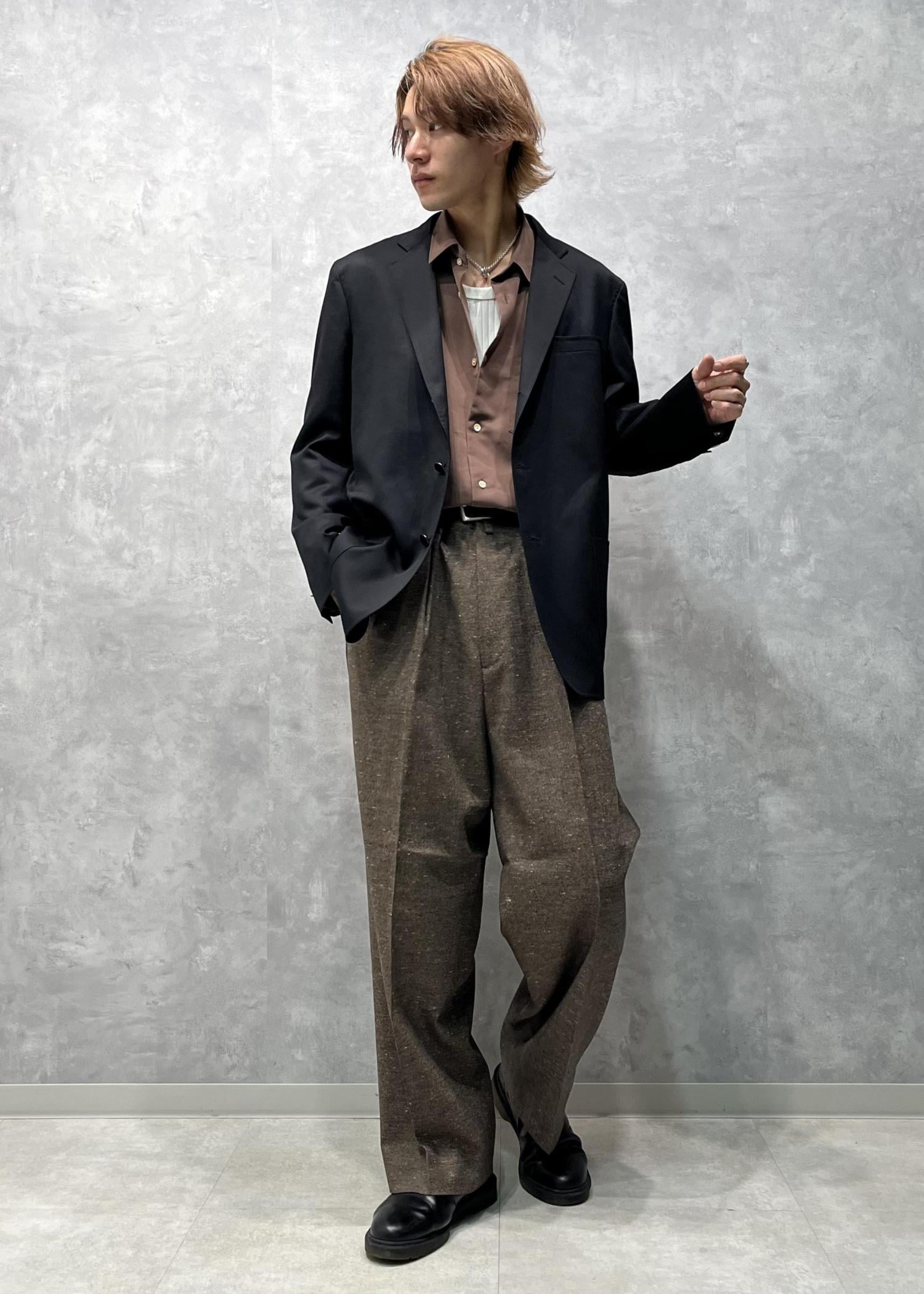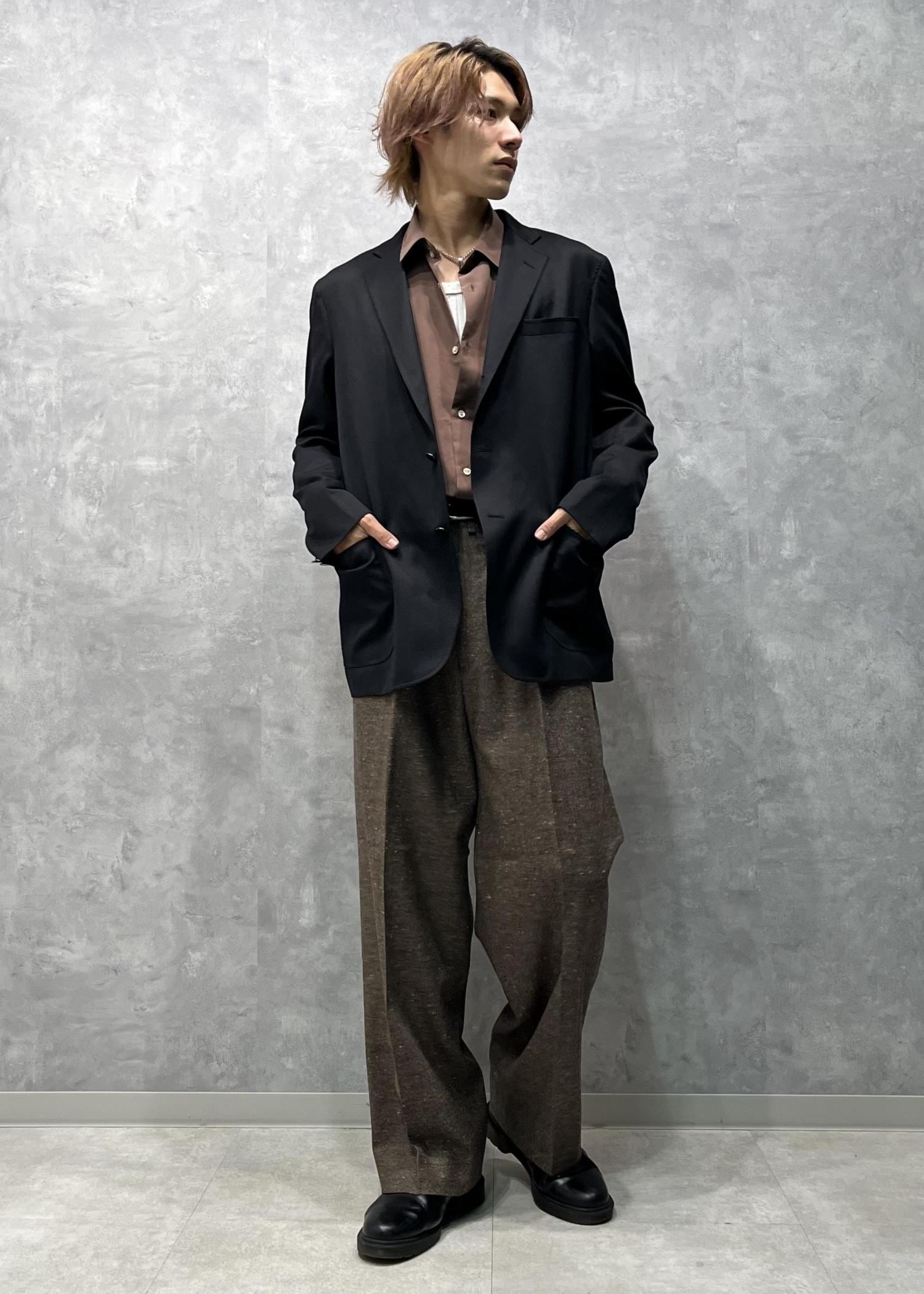 ウール100%の素材の良さと裏地もキャプラ100%と肌触りも着心地も良く、ボックスシルエットなつくりがフォーマルすぎないかっこいい別注ジャケットです。 -