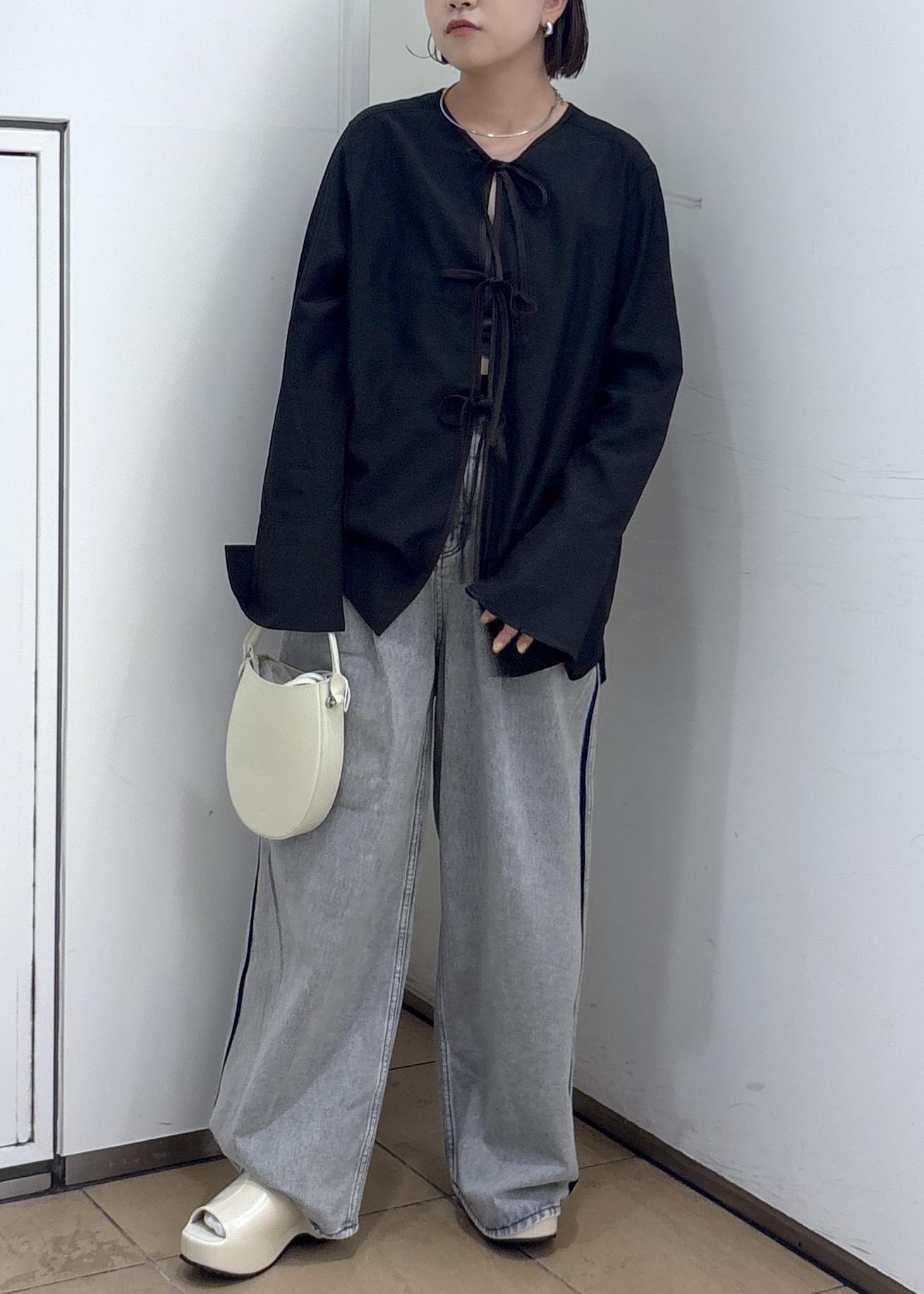 ADAM ET ROPÉ FEMME【サステナブル】リボンブラウスブラック / F¥17,600レビュージャケットのインナーやキャミソールの重ね着などロングシーズン着用いただける万能ブラウスです。フロントのリボンがポイントです!