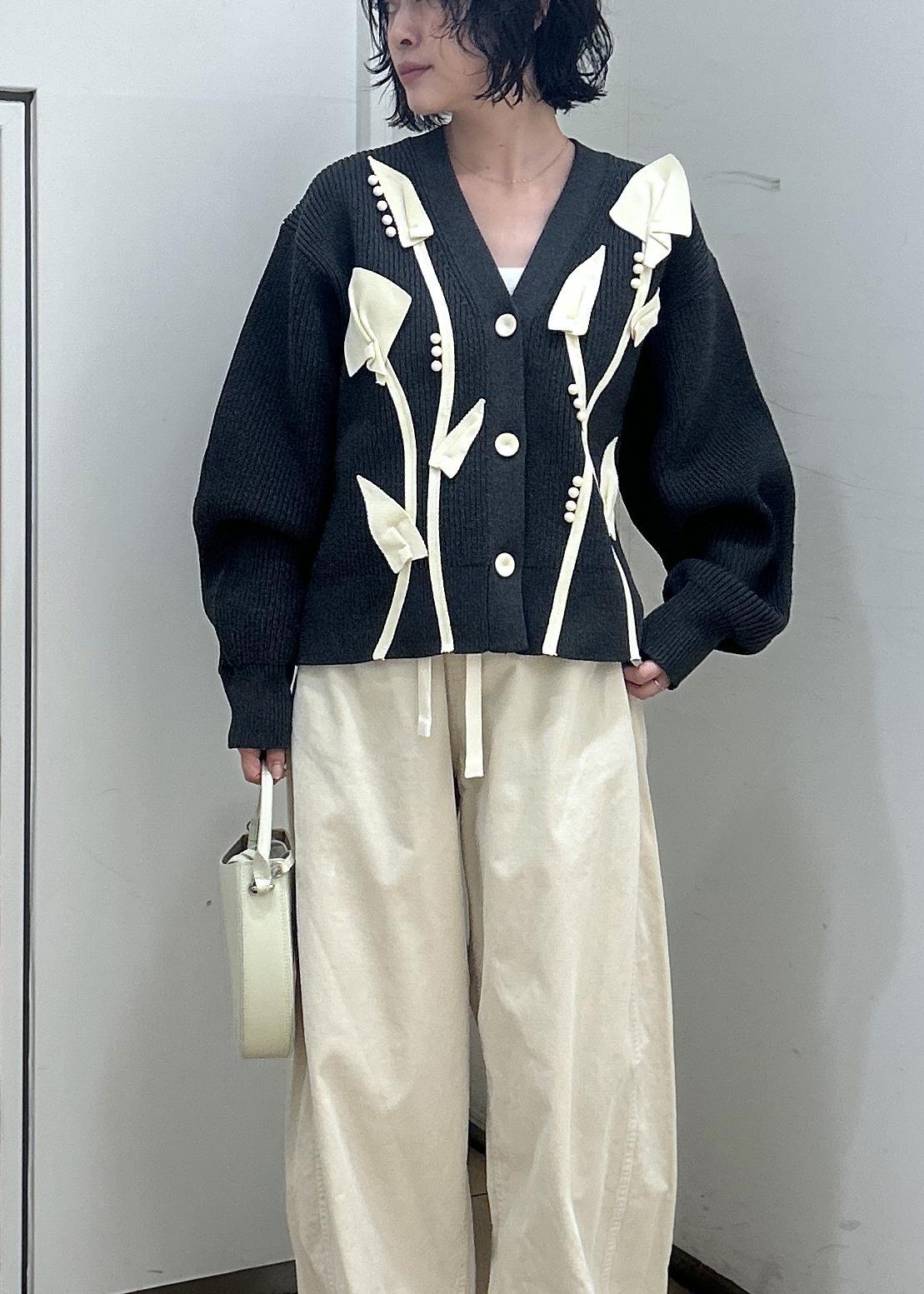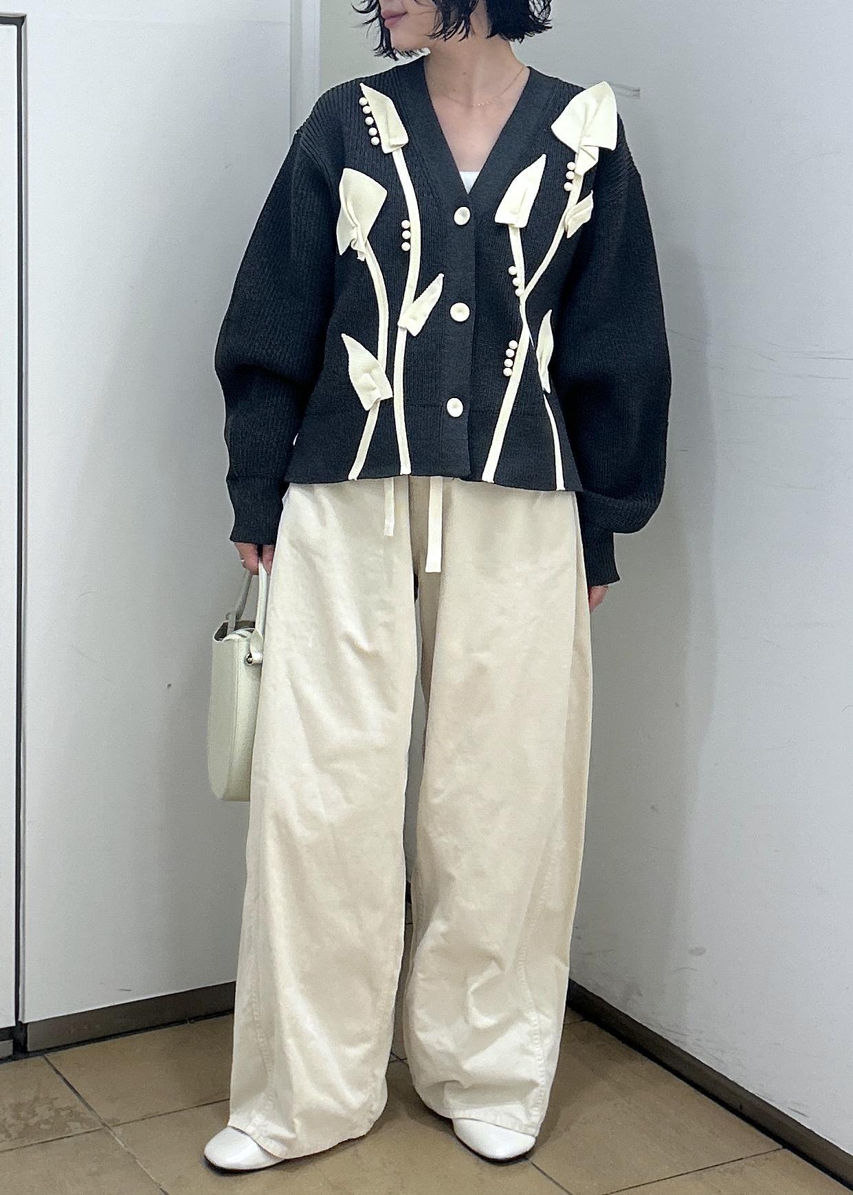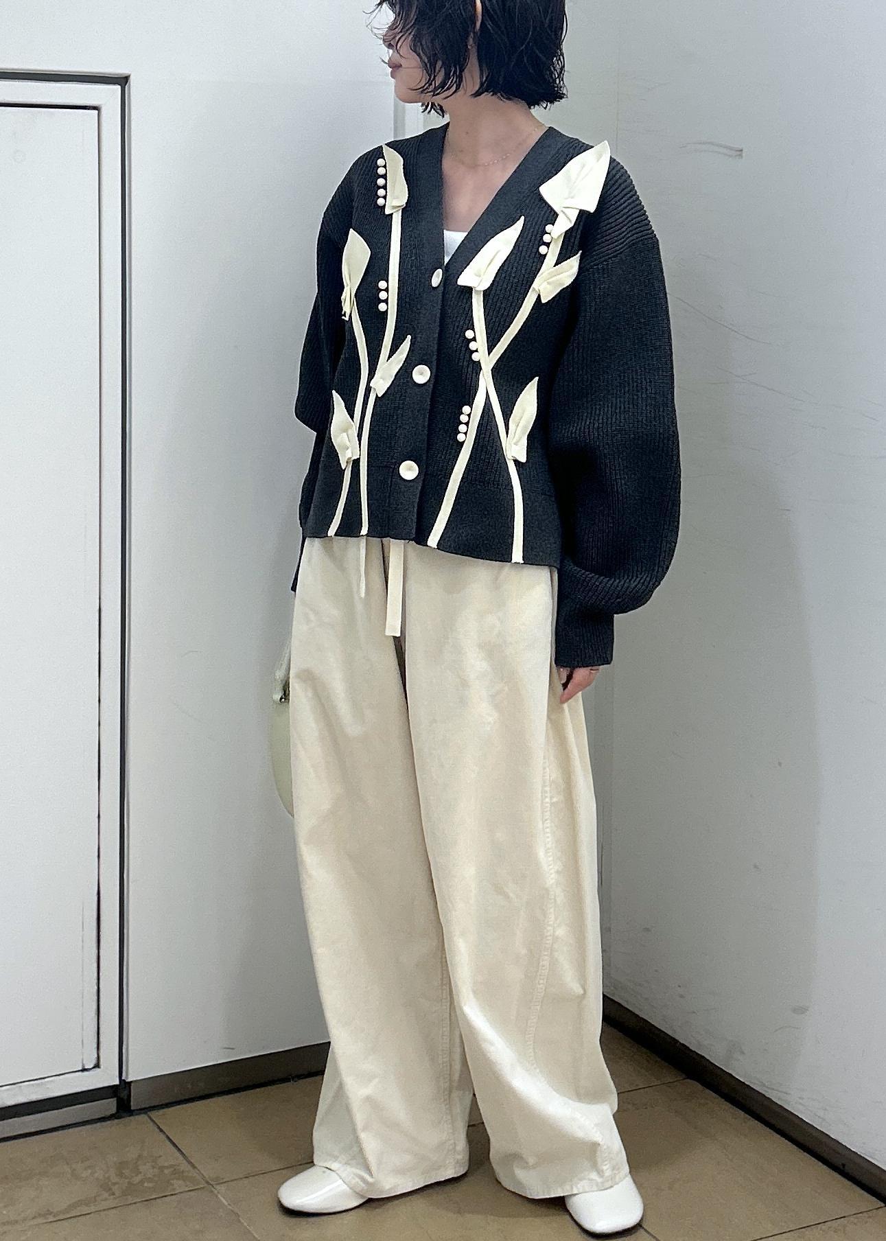 今回は新作の3Dモチーフカーディガンを使ってコーディネートを組んでみました!