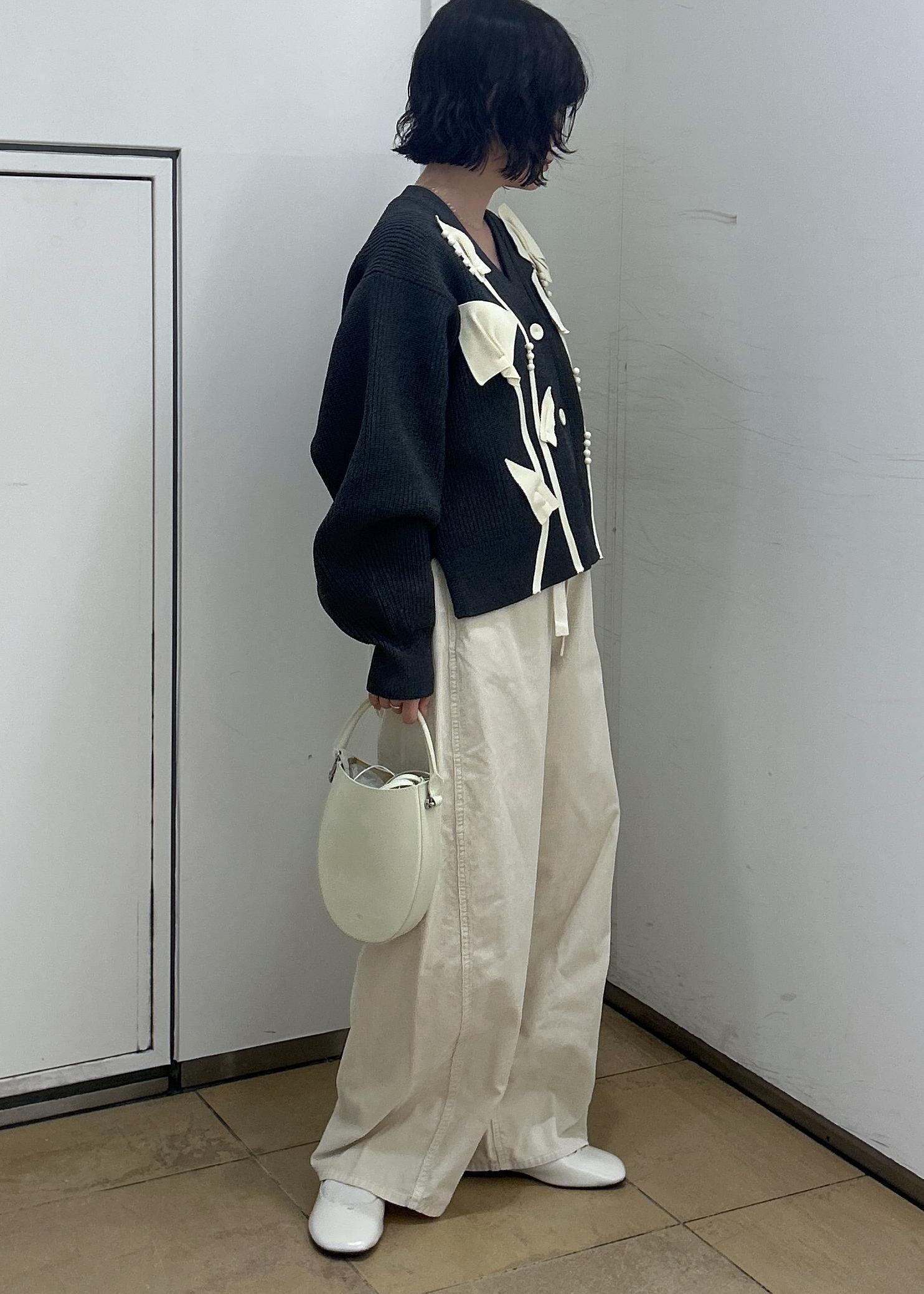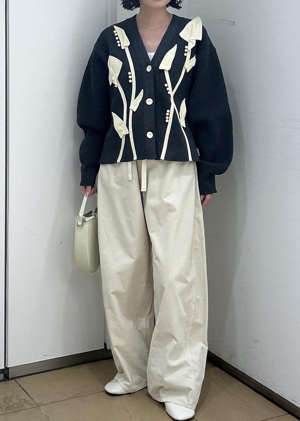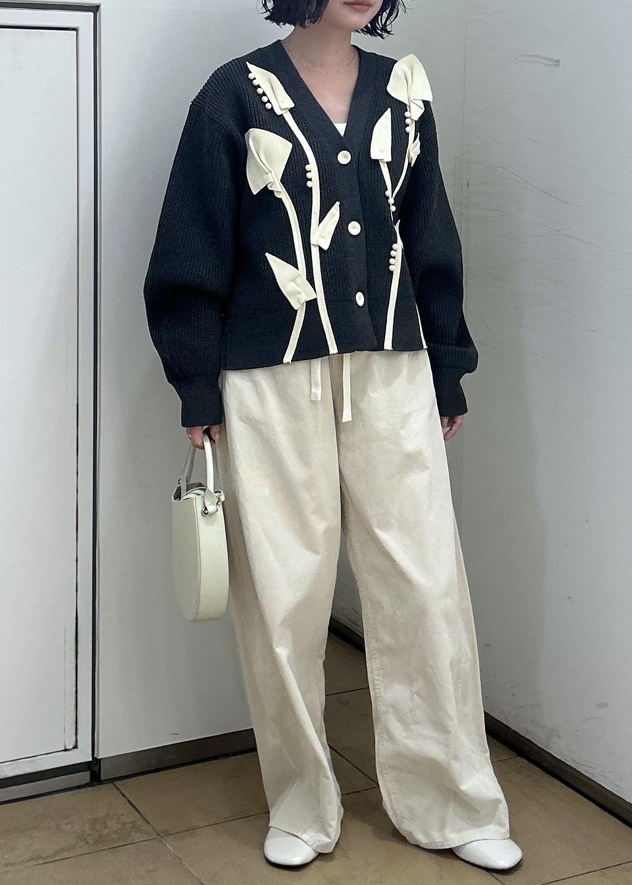 今回は新作の3Dモチーフカーディガンを使ってコーディネートを組んでみました!