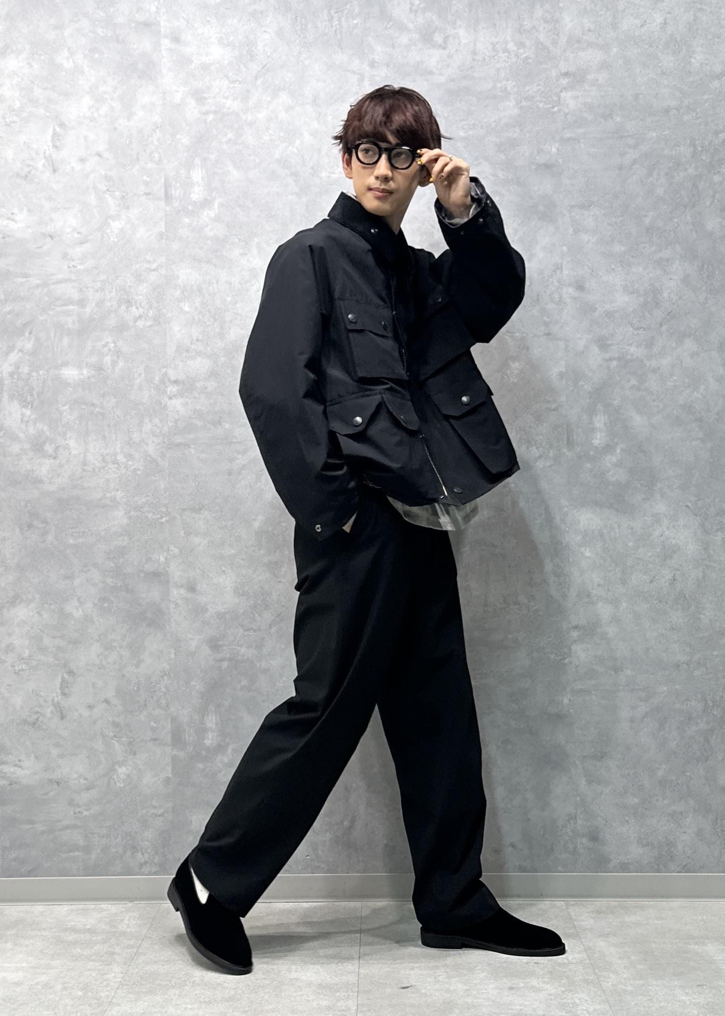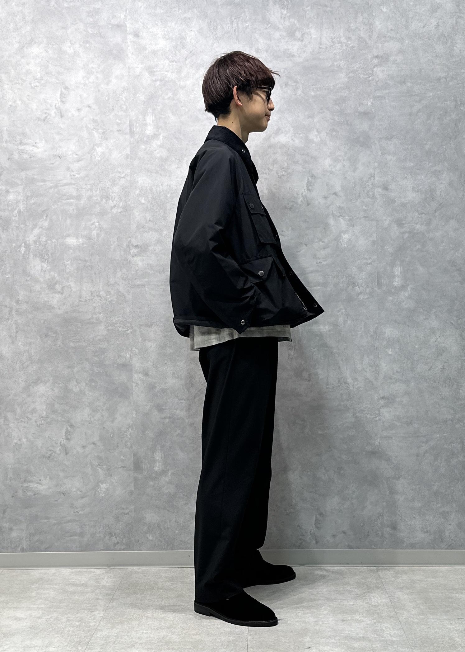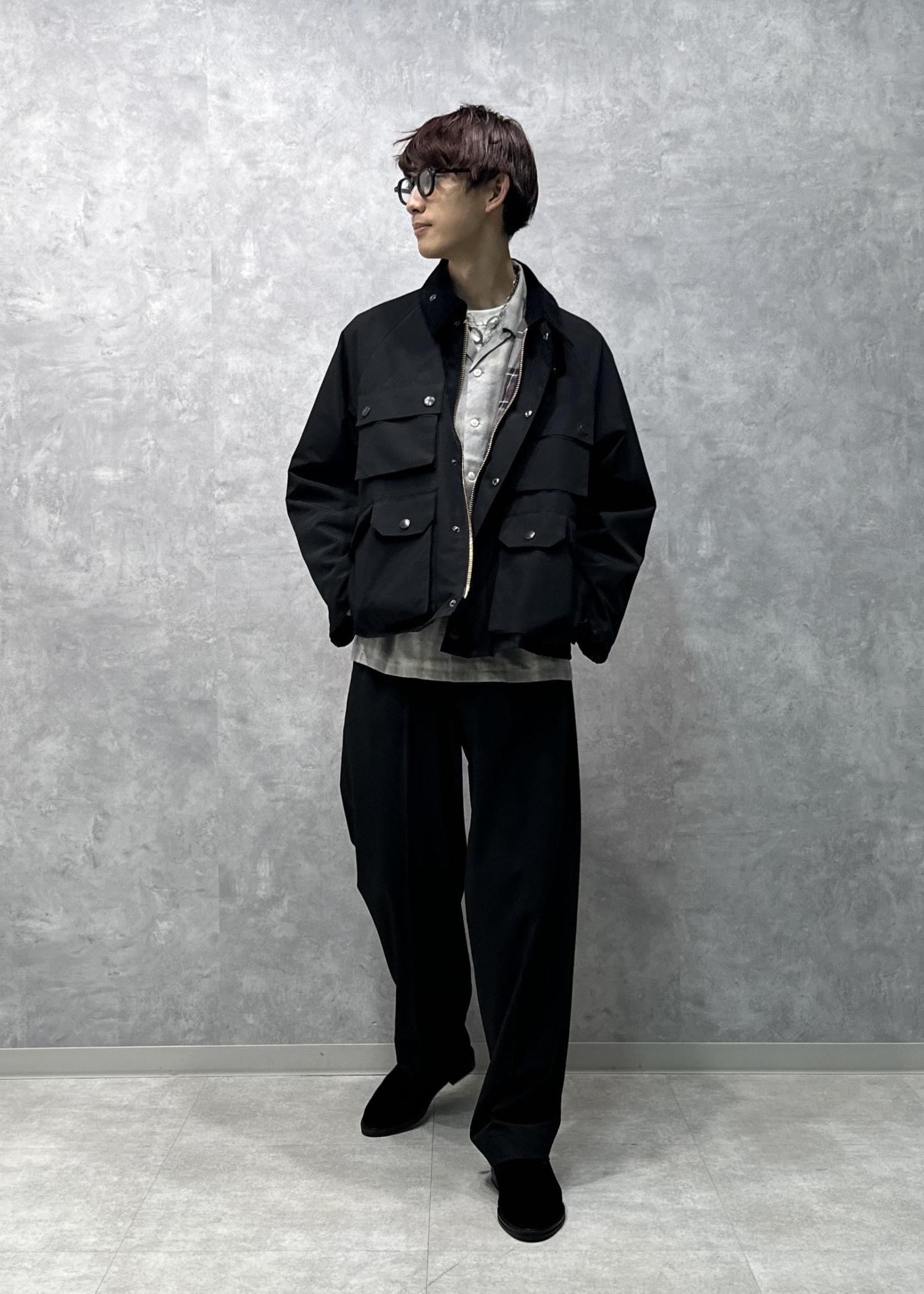 「TRANSPORT」をベースモデルに、ミリタリーやフライフィッシングの要素をインパクトのある4つのアウトポケットとして表現したブルゾン。どこかレインウェア味も感じる雰囲気。ゴールドボタンが高級感溢れていいアクセントに。ダブルジップ、スタンドカラーにもなる仕様です。