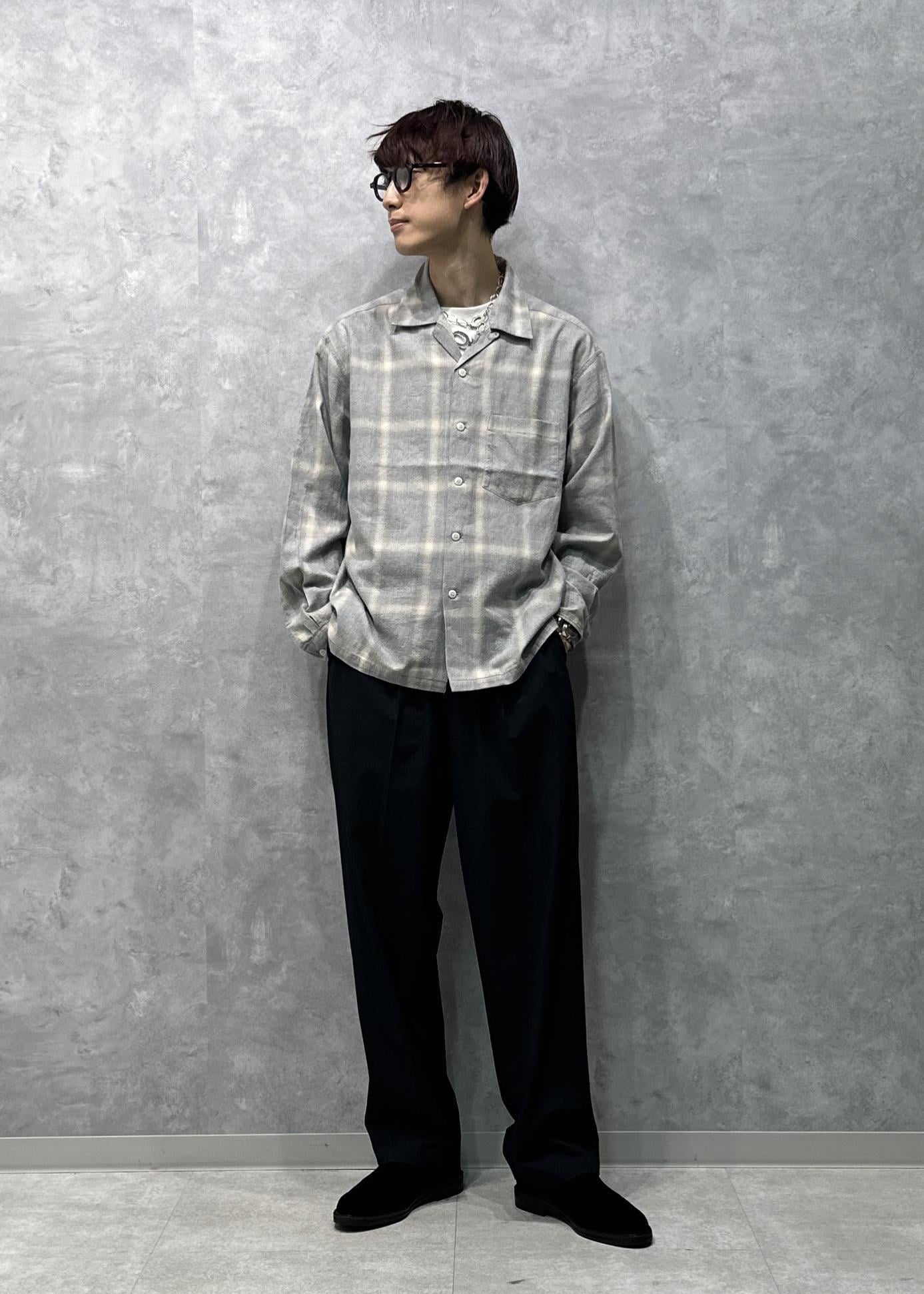 オンブレチェック オープンカラーシャツ
