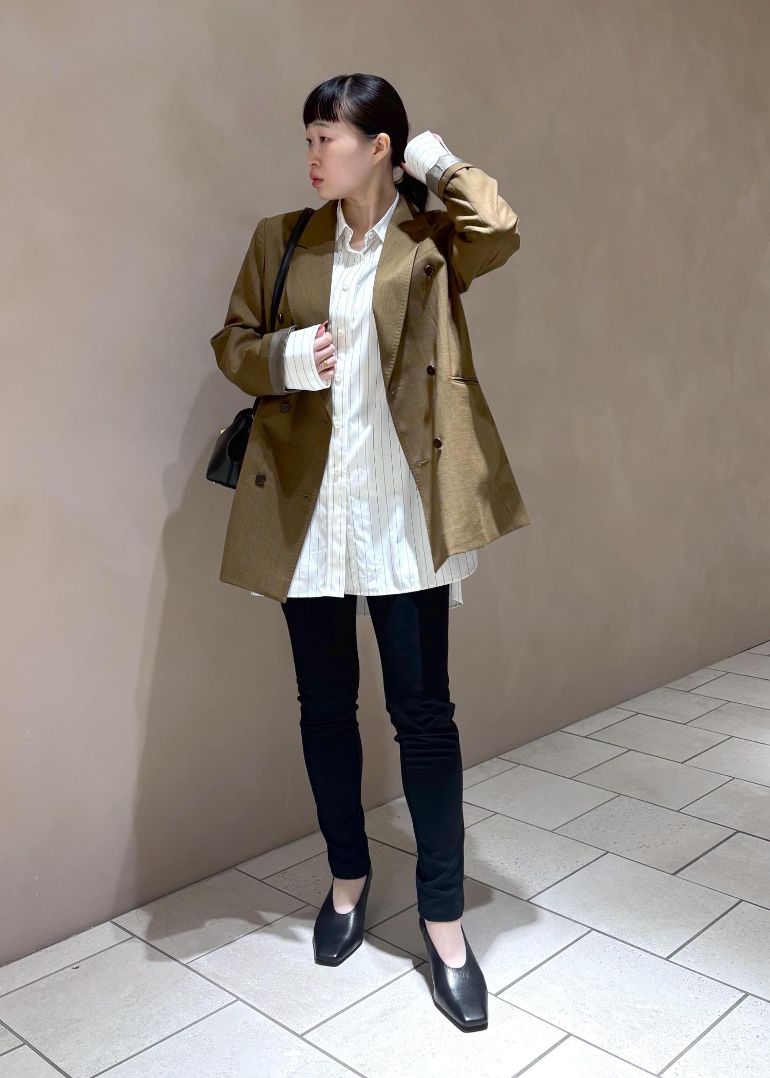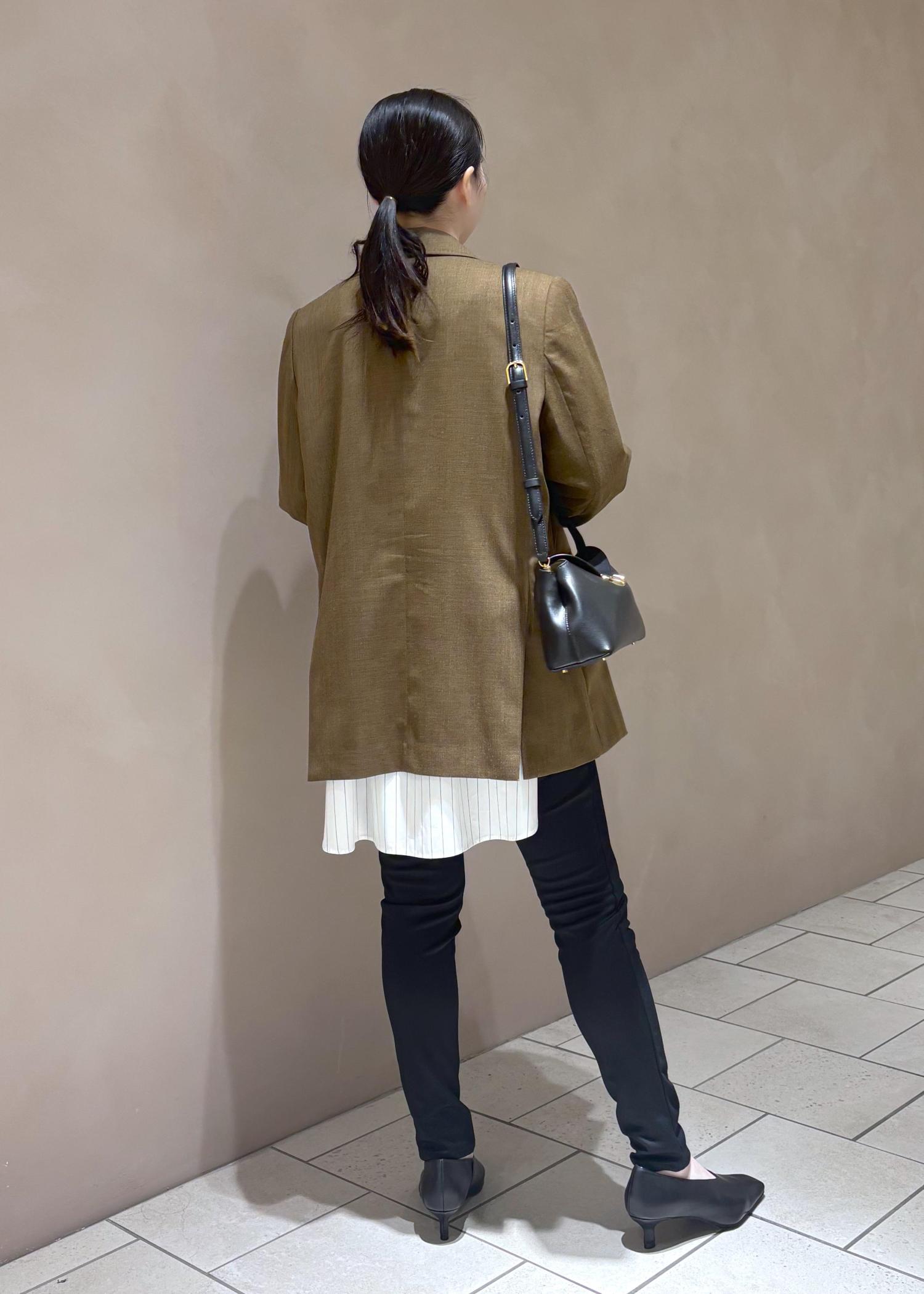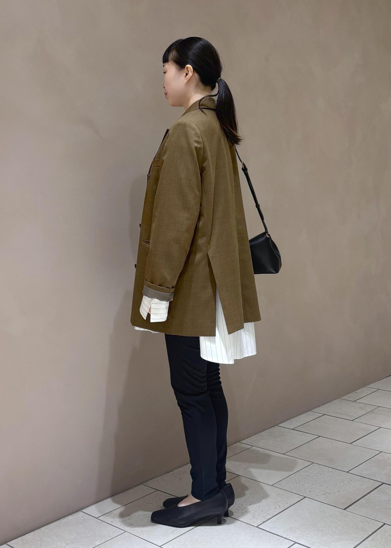 今回は以前も着用したジャケットとシャツを色違いで合わせて普段の出勤コーデに近いスタイリングを作りました☺︎