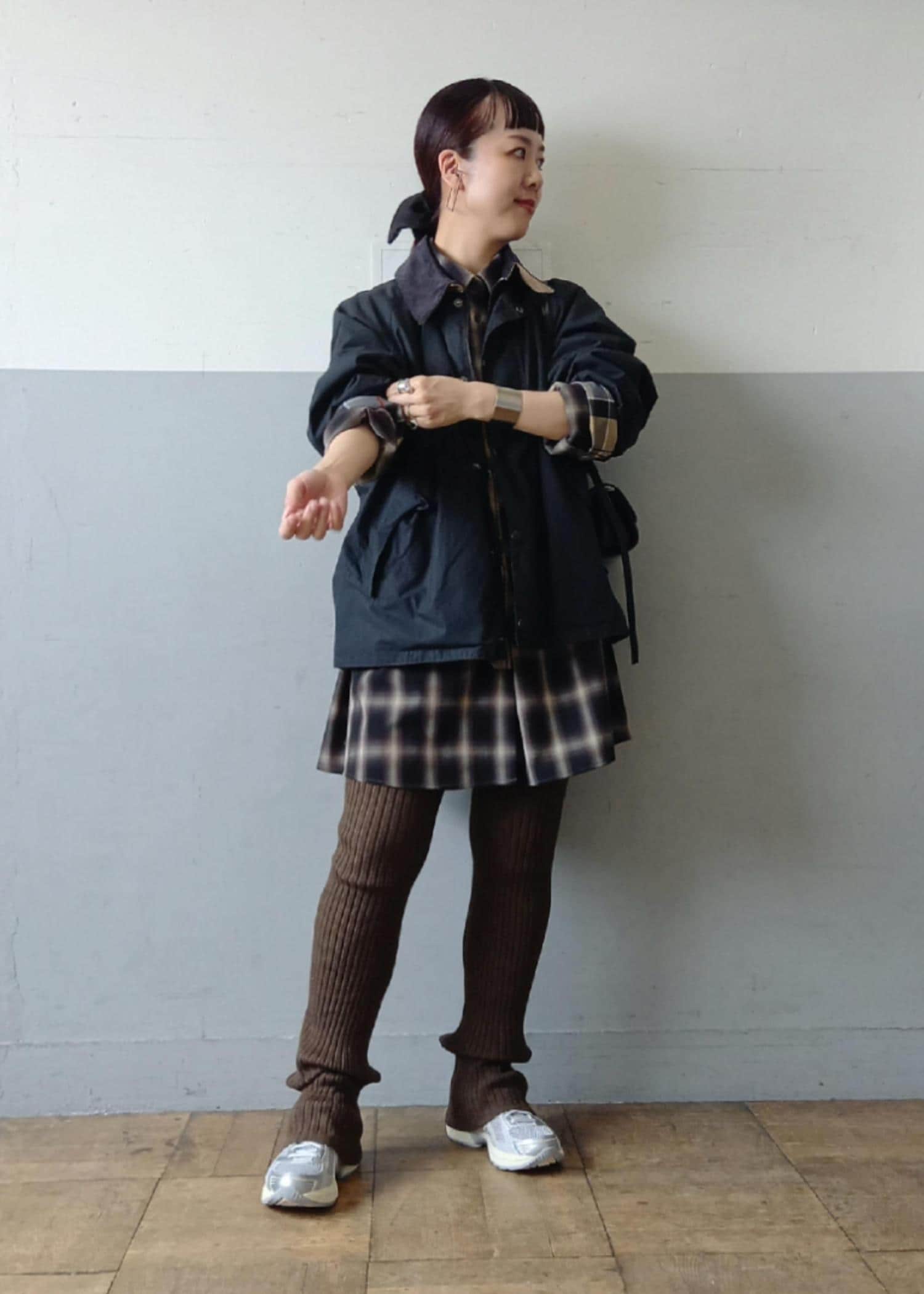 オーバーサイズのチェックシャツをワンピースっぽく、ニットパンツでカジュアルに合わせました☺️