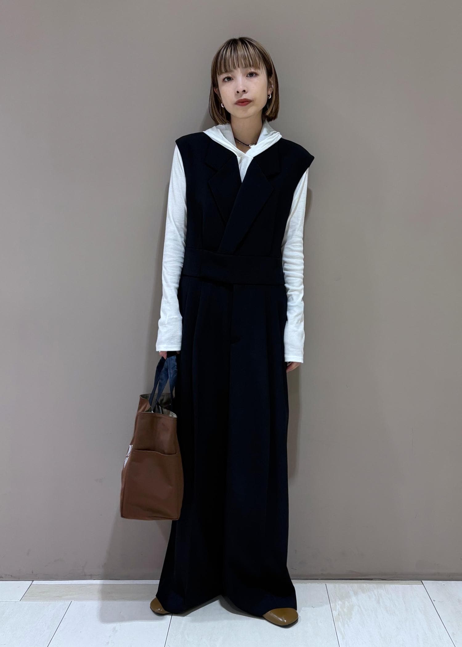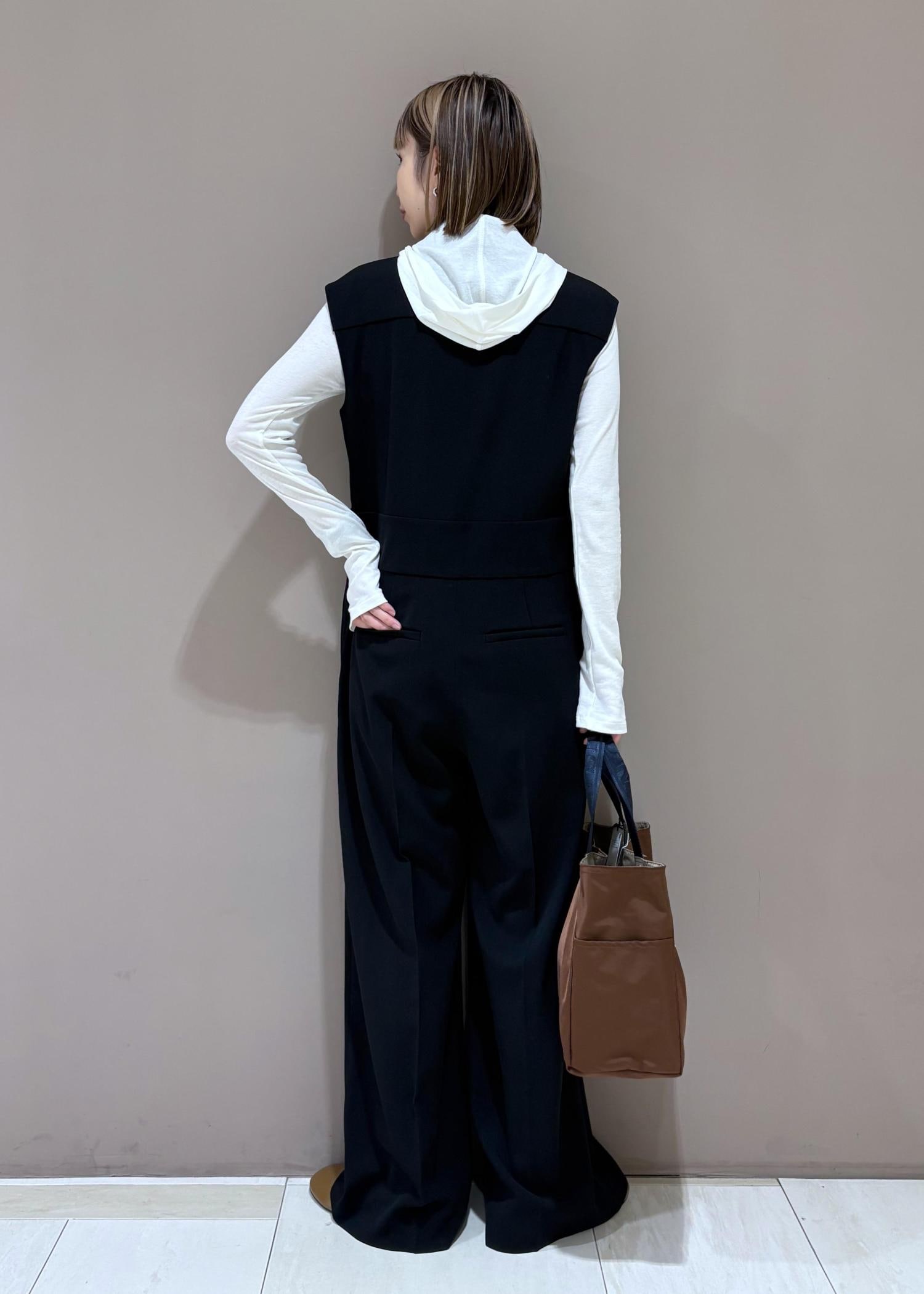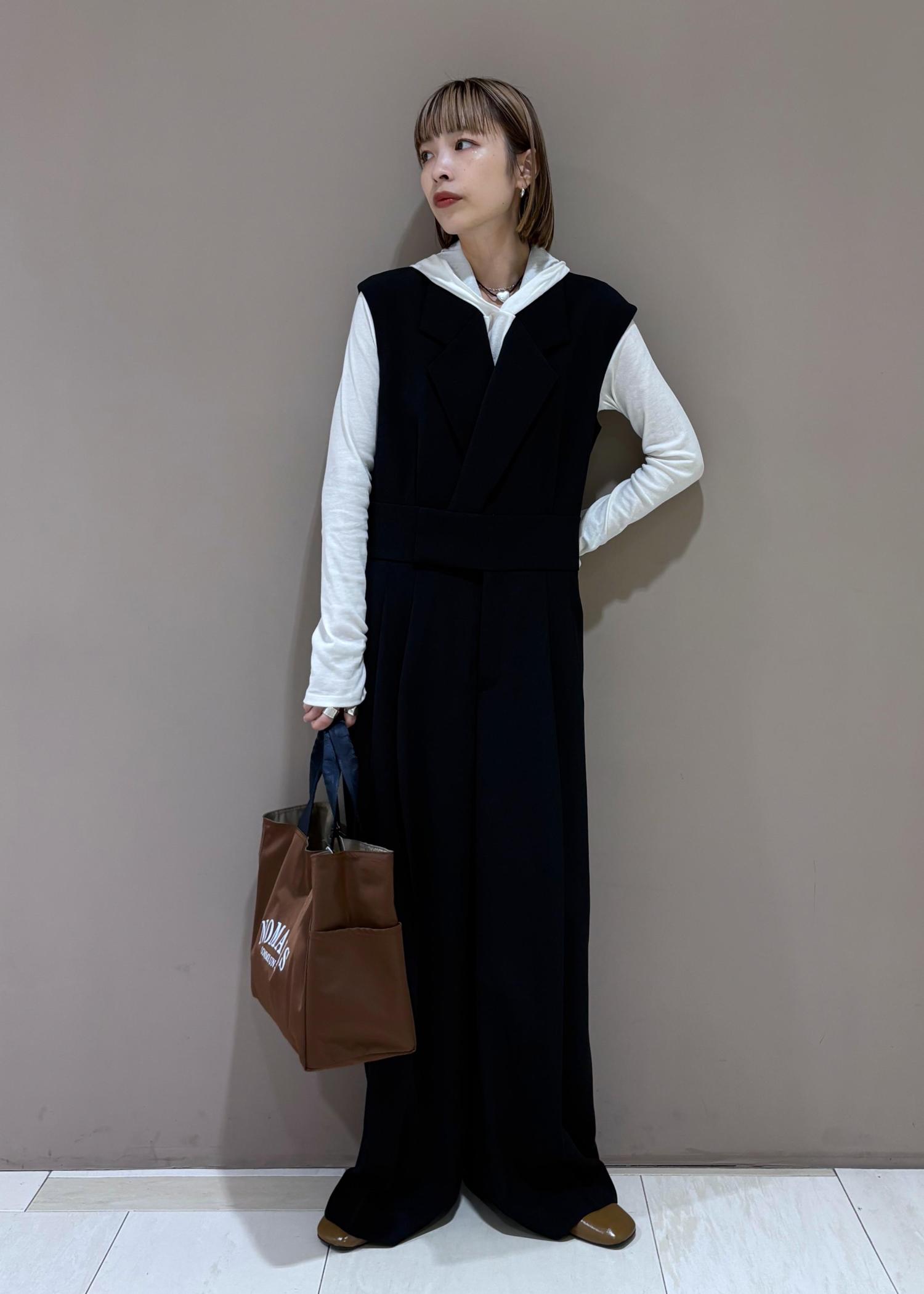 EMOELLE【EMOELLE】スリーブレスオールインワン カルゼブラック / 38¥49,500レビュー162cm、38サイズ着用。