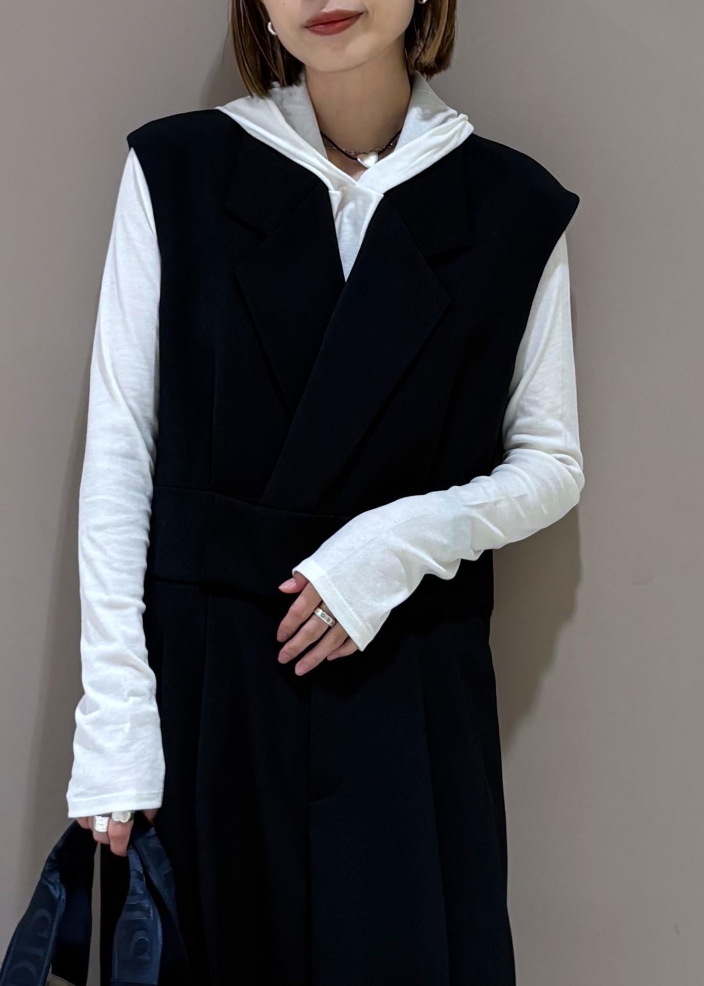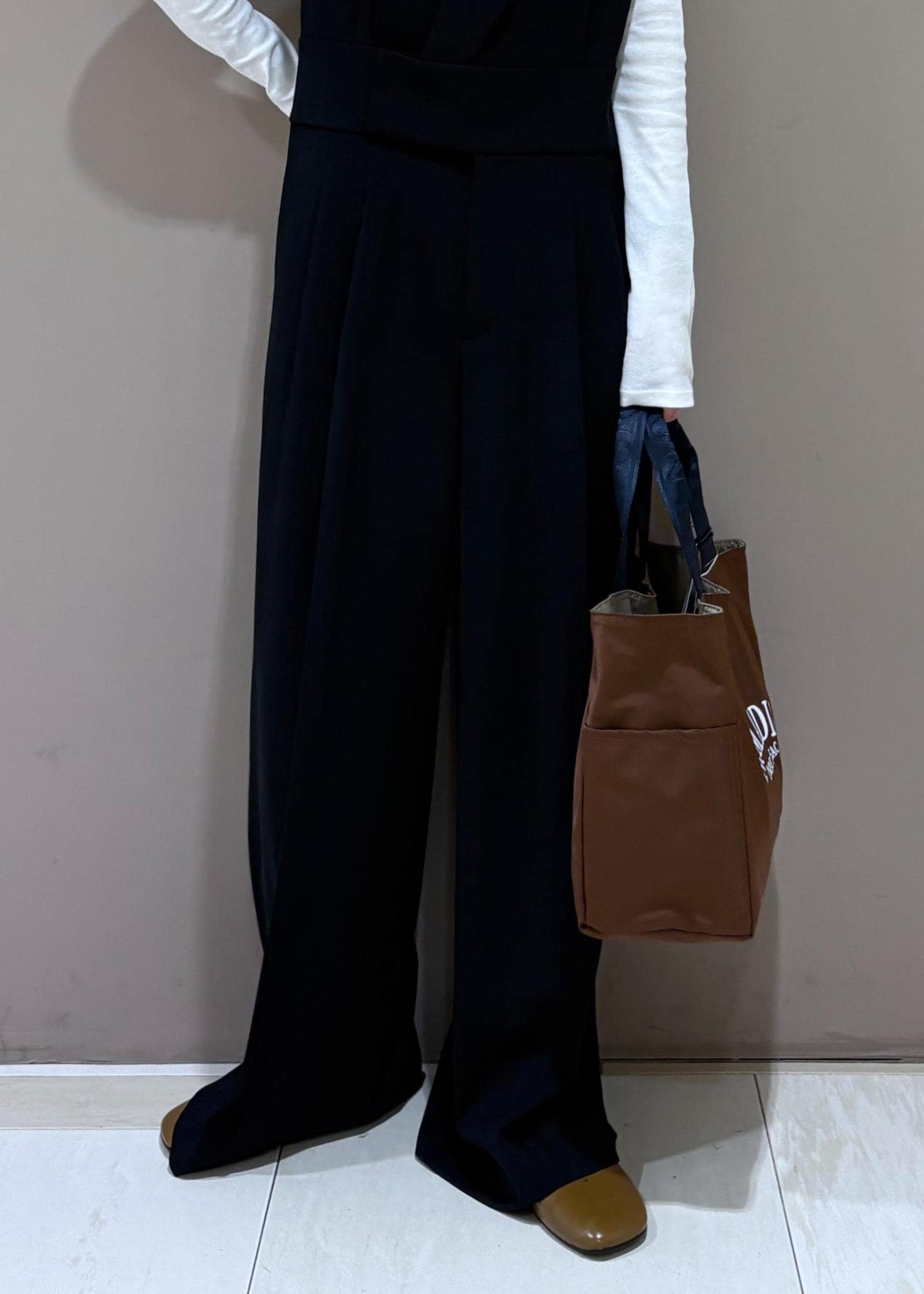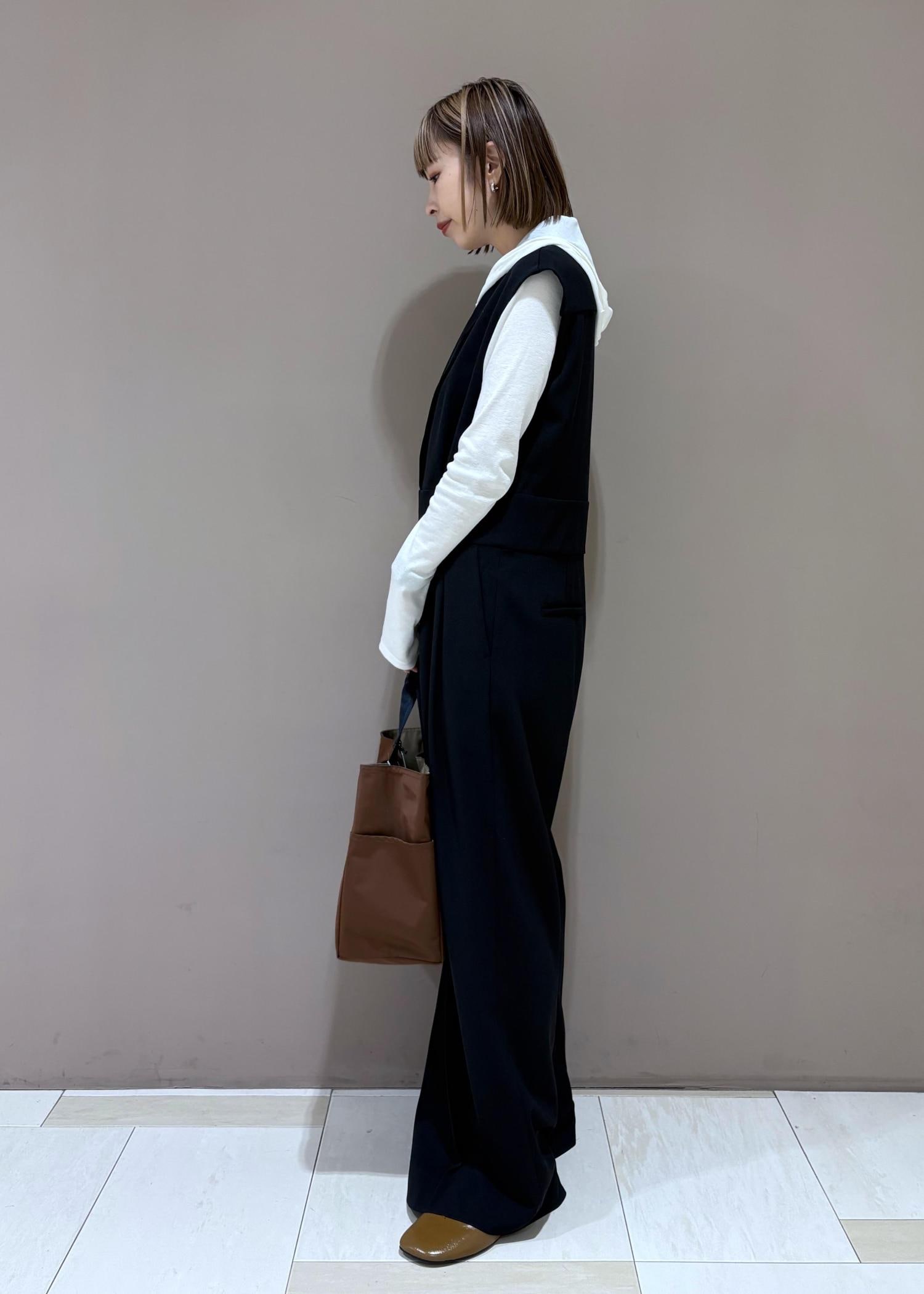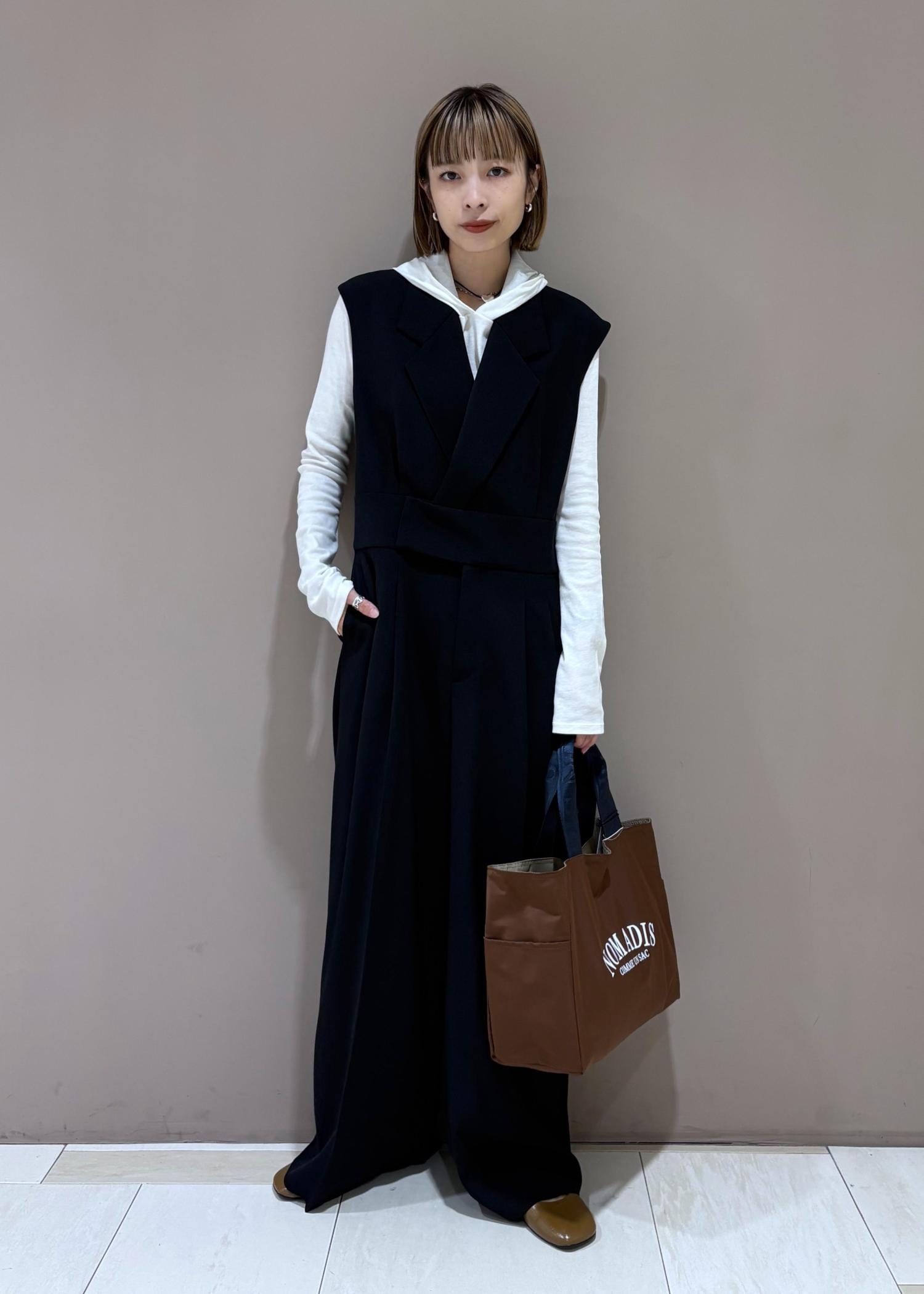 EMOELLE【EMOELLE】スリーブレスオールインワン カルゼブラック / 38¥49,500レビュー162cm、38サイズ着用。