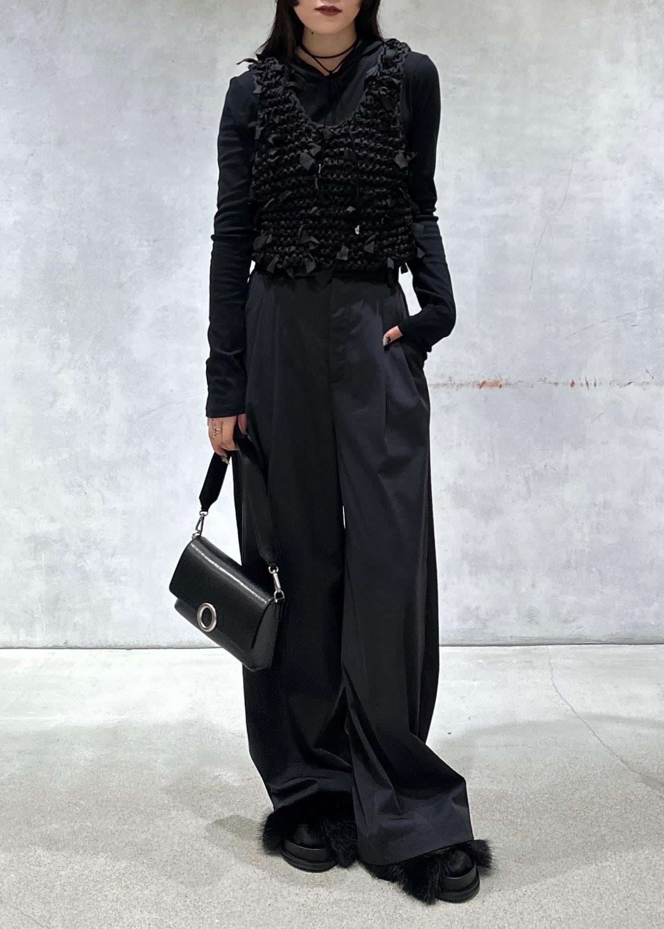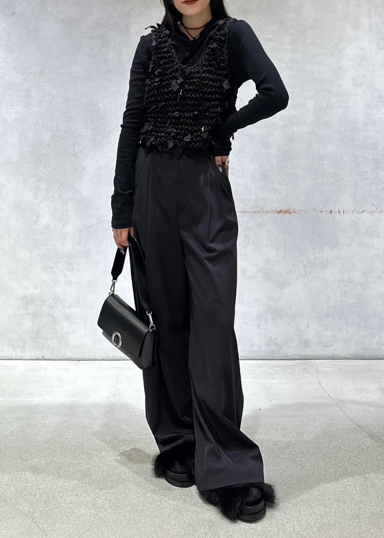 ワイドシルエットや素材にもこだわったモードで上品な印象のドレスパンツです。 -