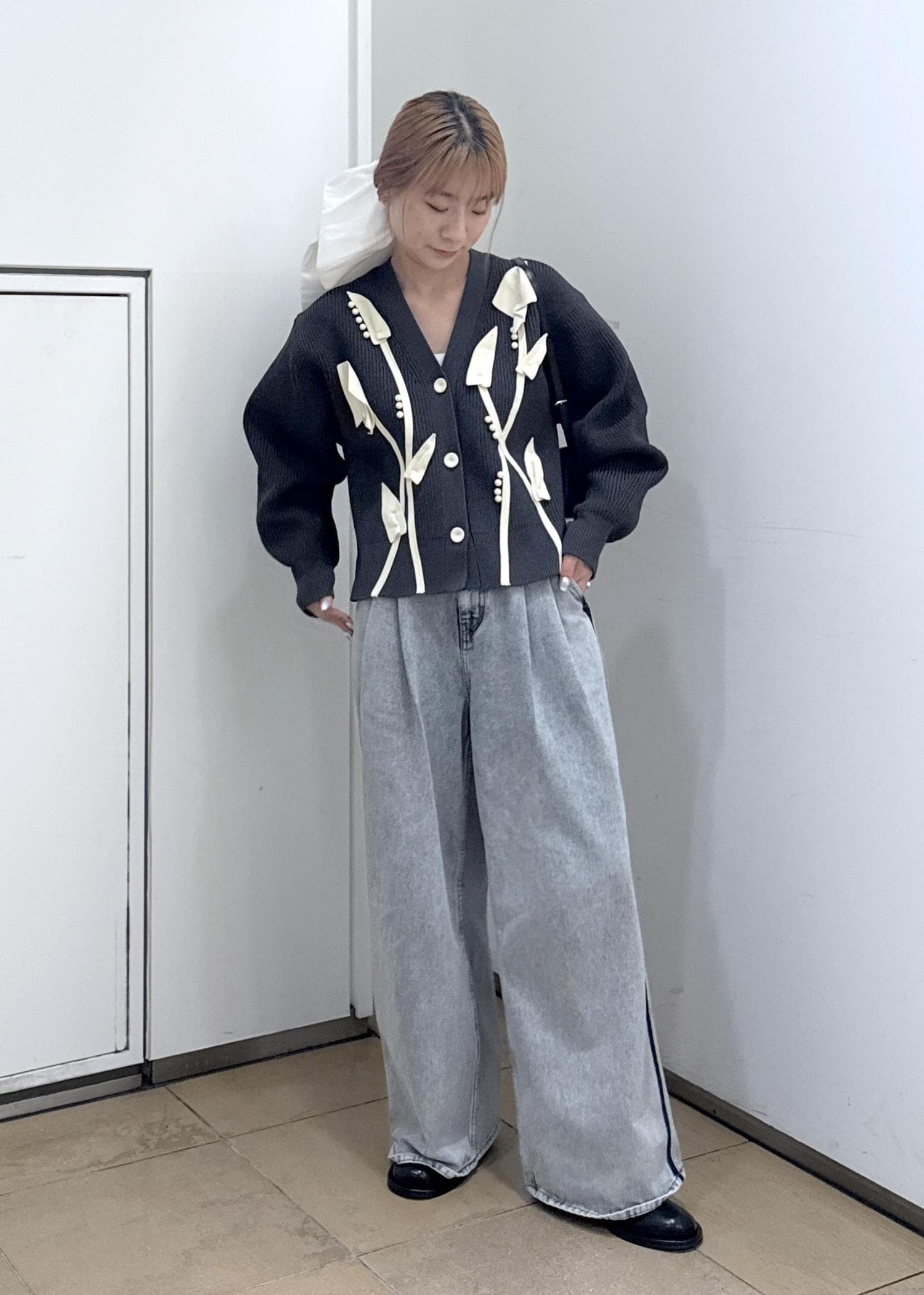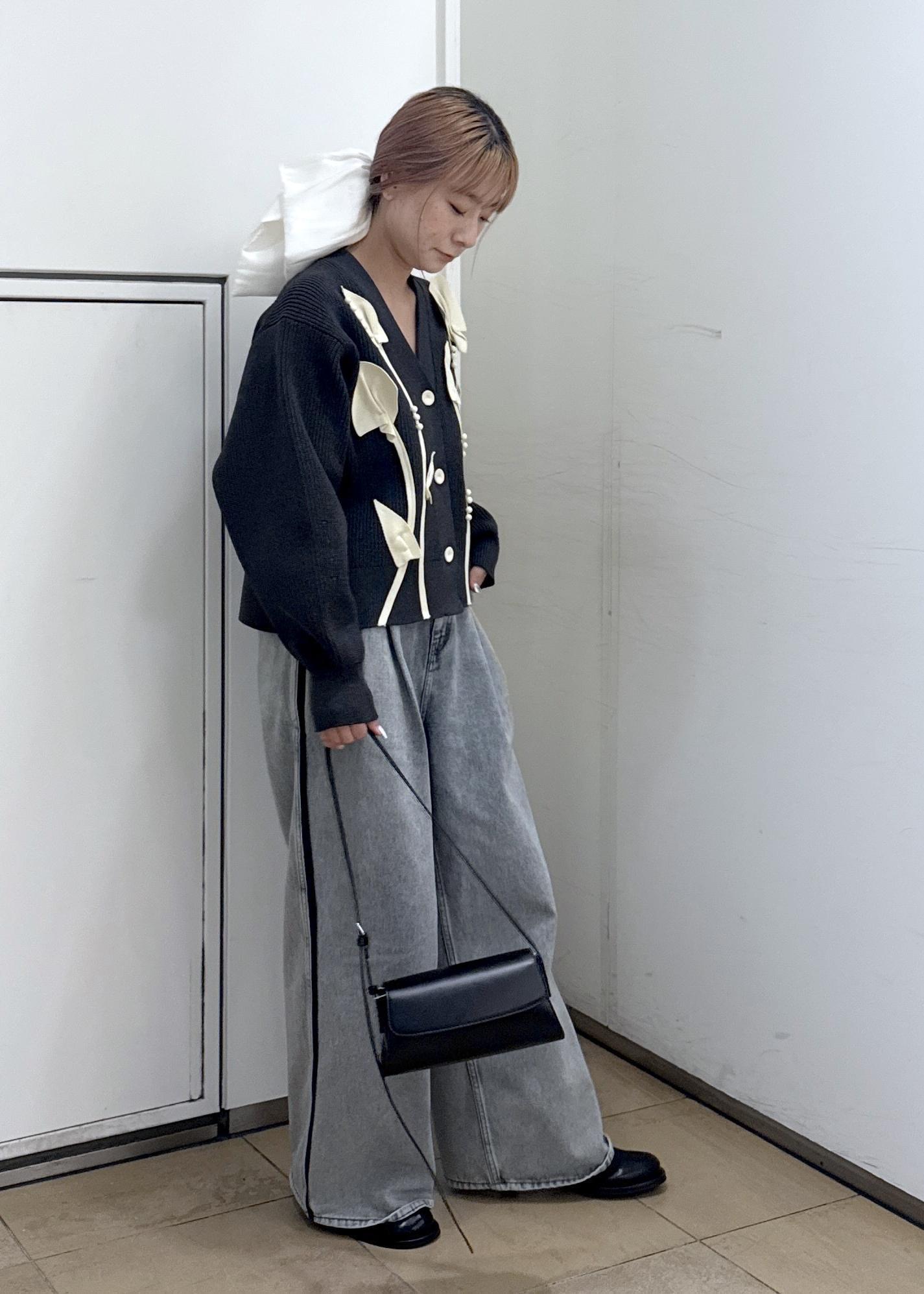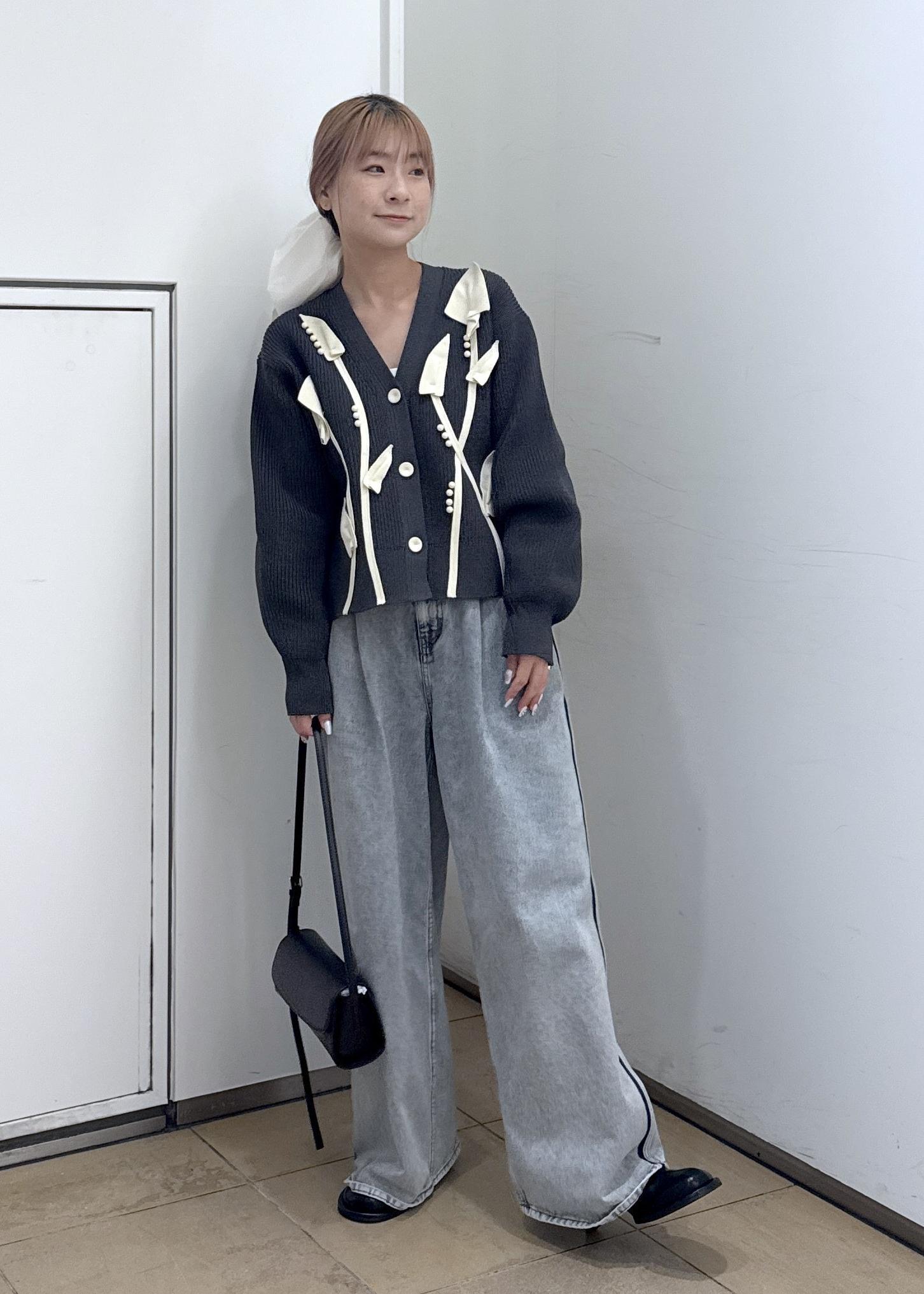 ADAM ET ROPÉ FEMME【サステナブル】3Dモチーフカーディガンチャコール / F¥9,900レビュー立体感がありふっくらしたシルエットです!