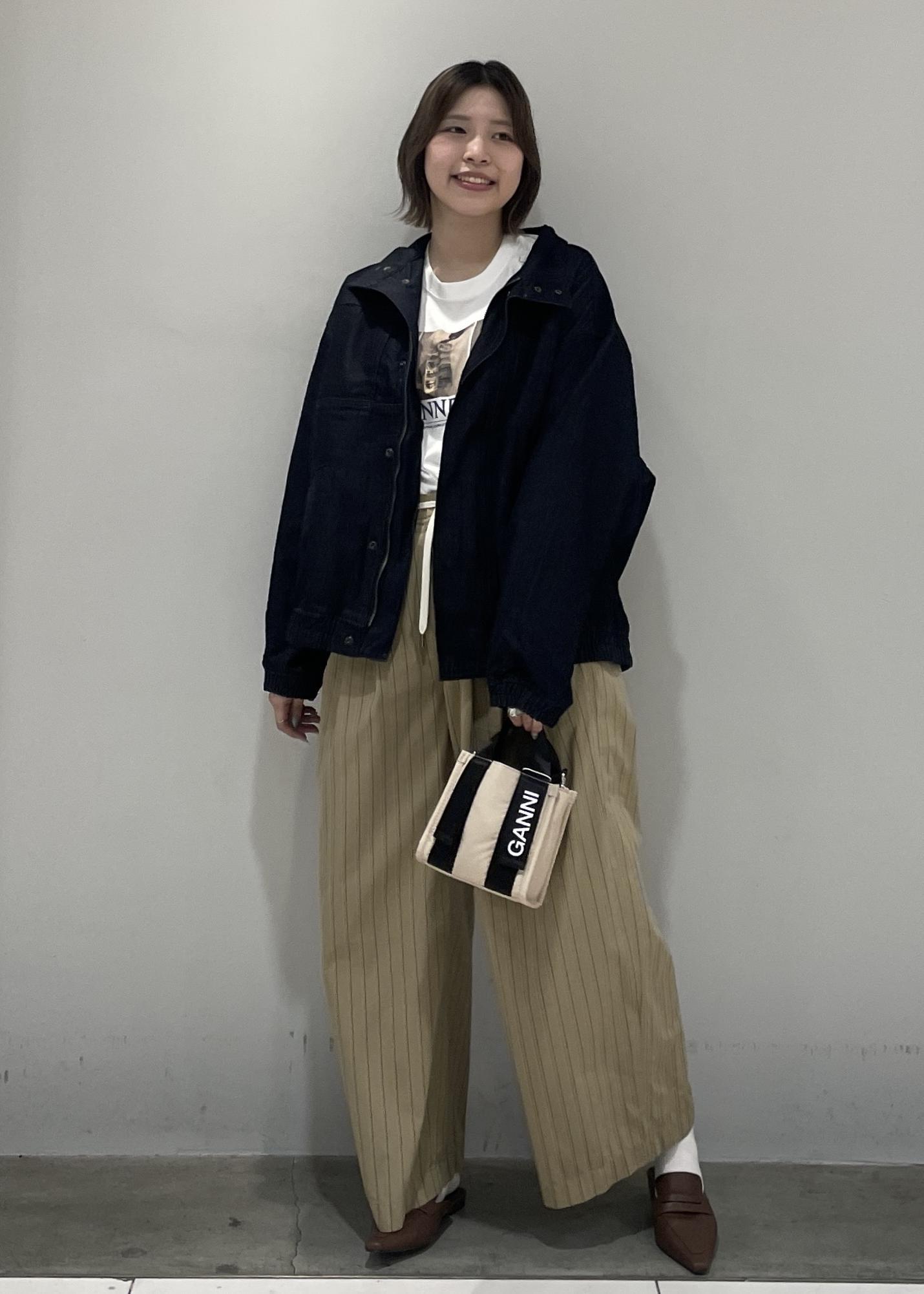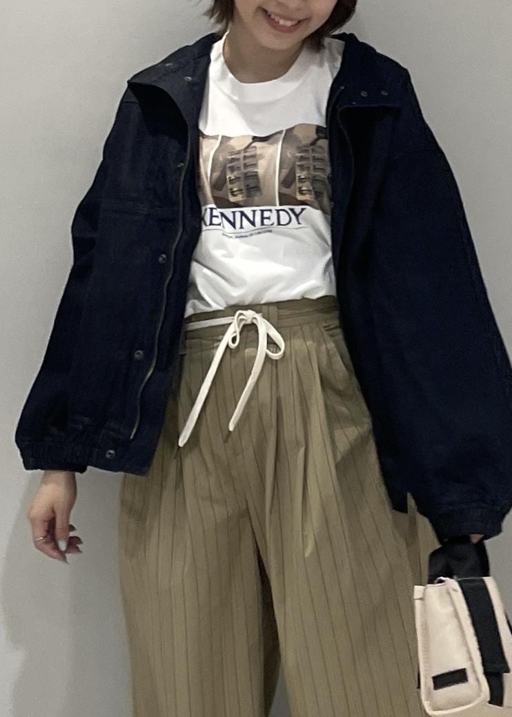 デニムジャケットはオーバーに着用したかったのでLサイズをチョイス!!体をすっぽり包んでくれるシルエットがお気に入りです☺︎