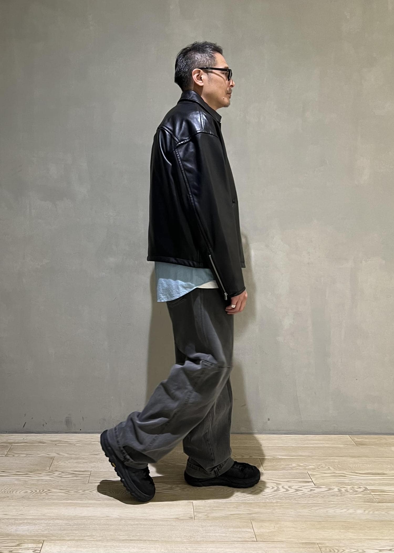 現在展開のレザーアイテムを使用したスタイリングのご紹介です!