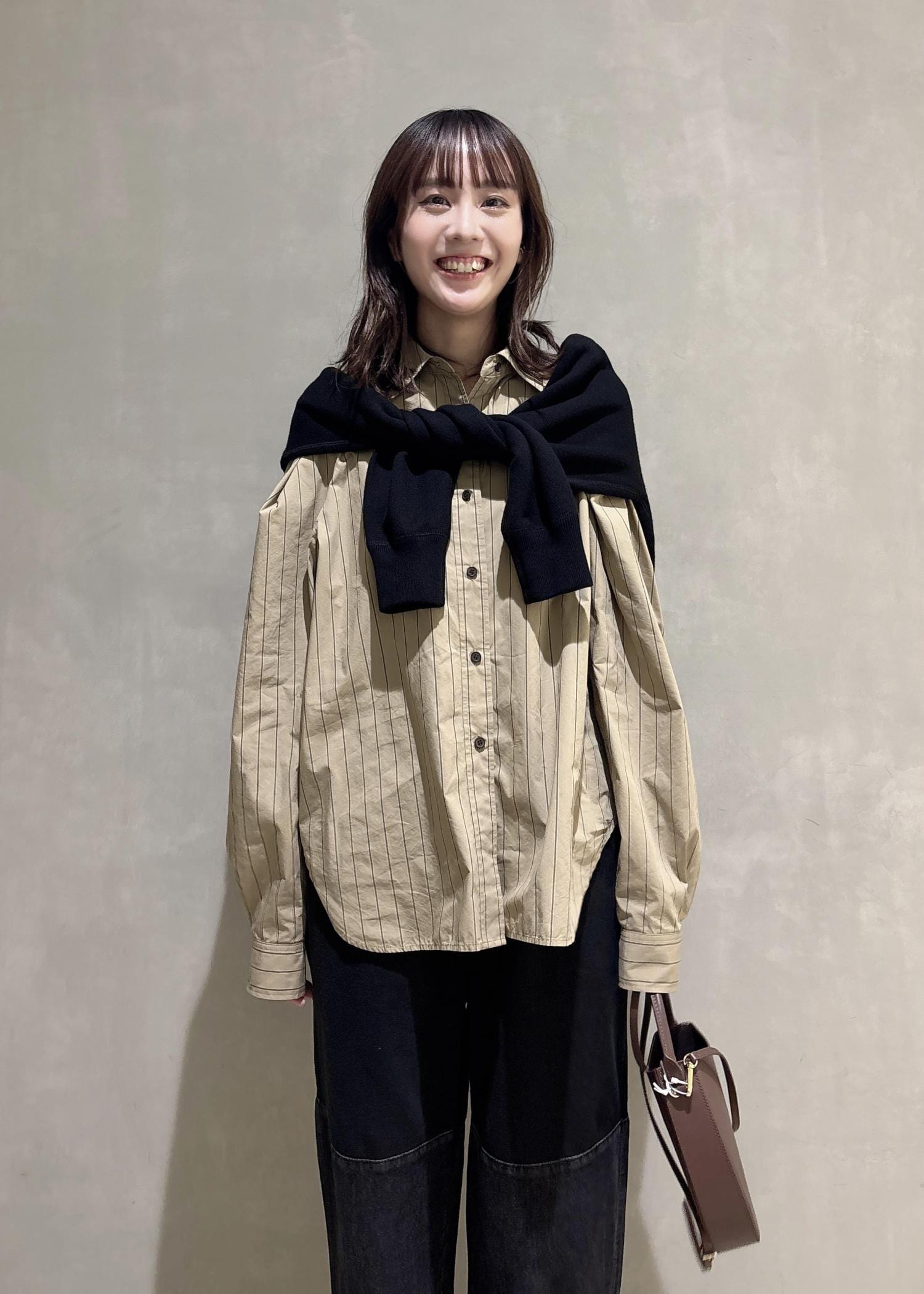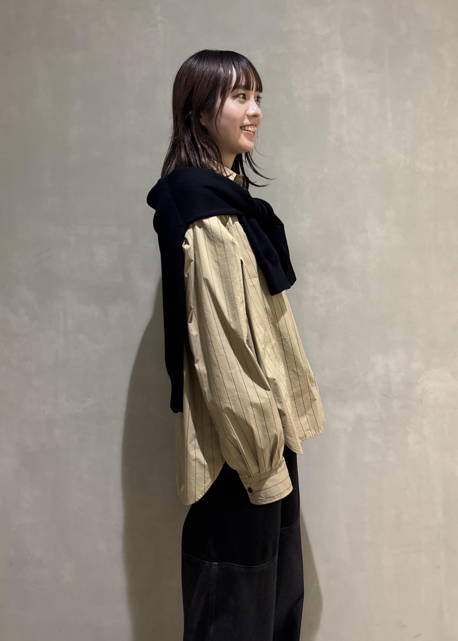 ADAM ET ROPÉ FEMMEタックスリーブシャツベージュ系 / F¥16,170レビュー肩と腕の繋ぎ目にタックが入っているので1枚で着てもシンプルになりすぎず、お洒落に着ていただけます!
