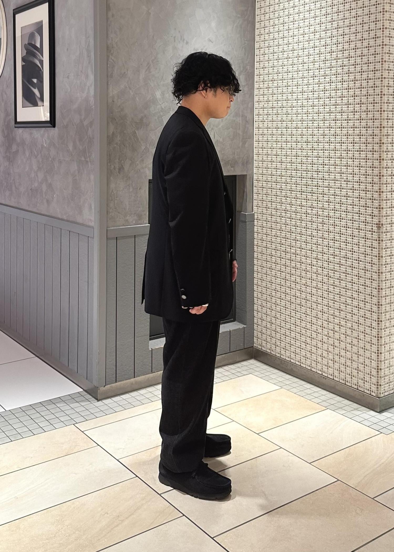 "トラッド"ではなく"アダムエロペらしくモード"な印象に仕上げた1着です。
