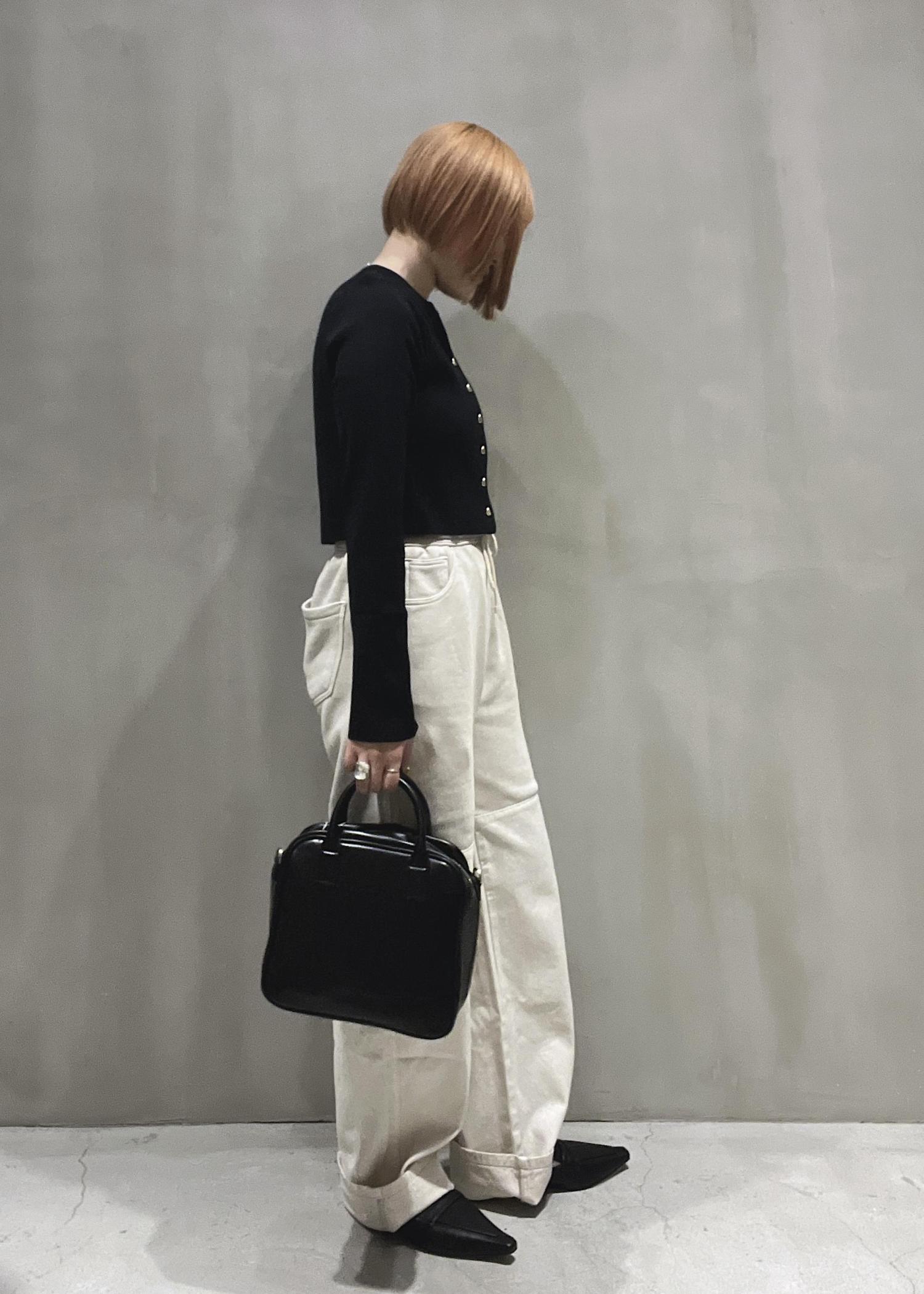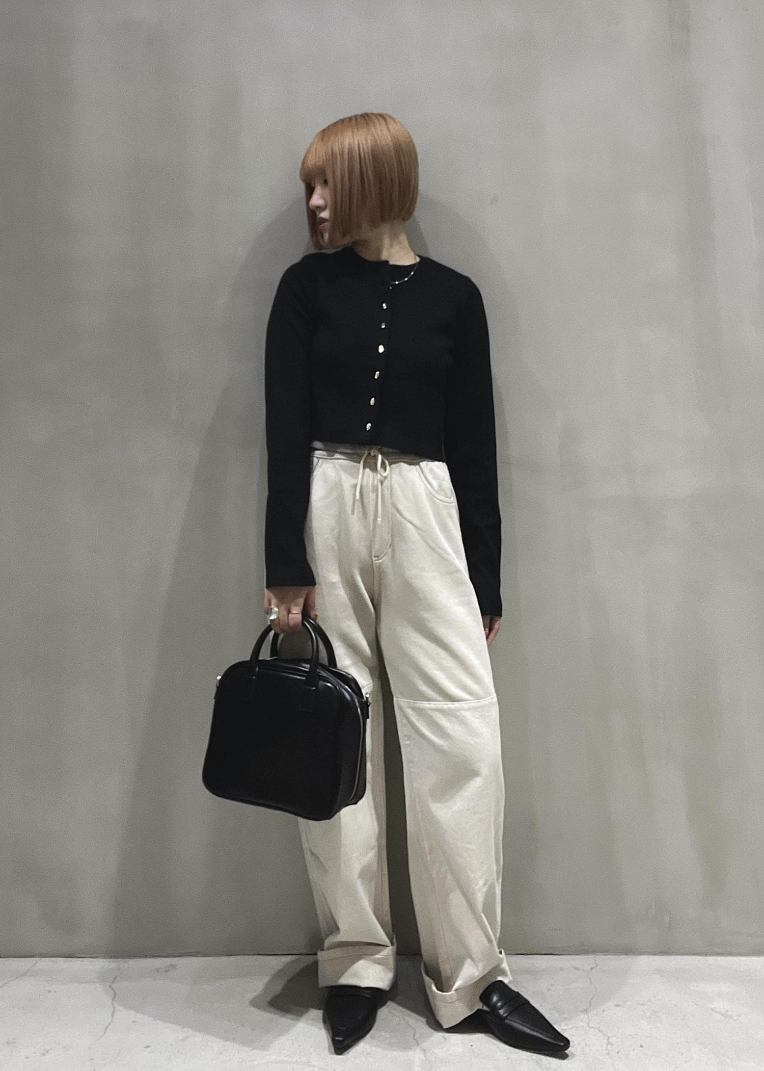 印象が柔らかくなりすぎないように、白のパンツを黒のトップスと小物で引き締めました!