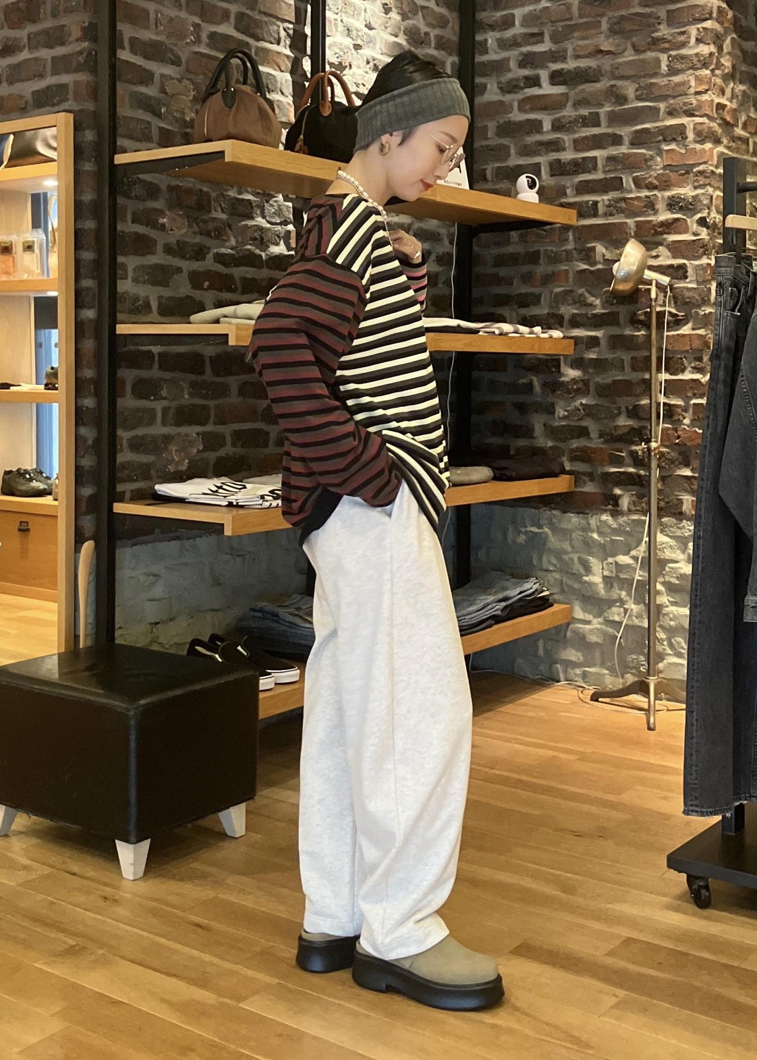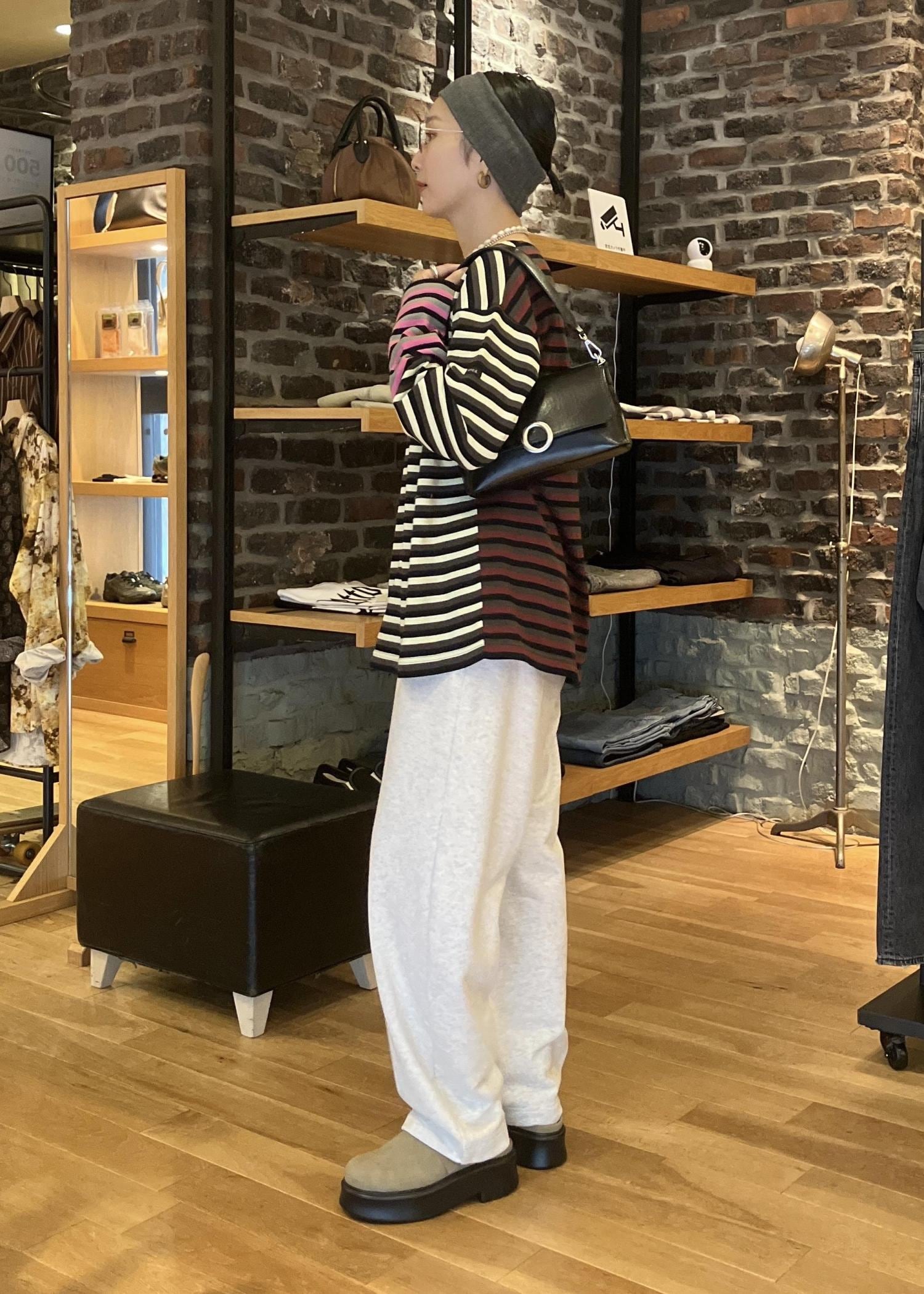綺麗めスラックス、プリーツスカート、意外と色んなボトムと相性良いですよ! -
