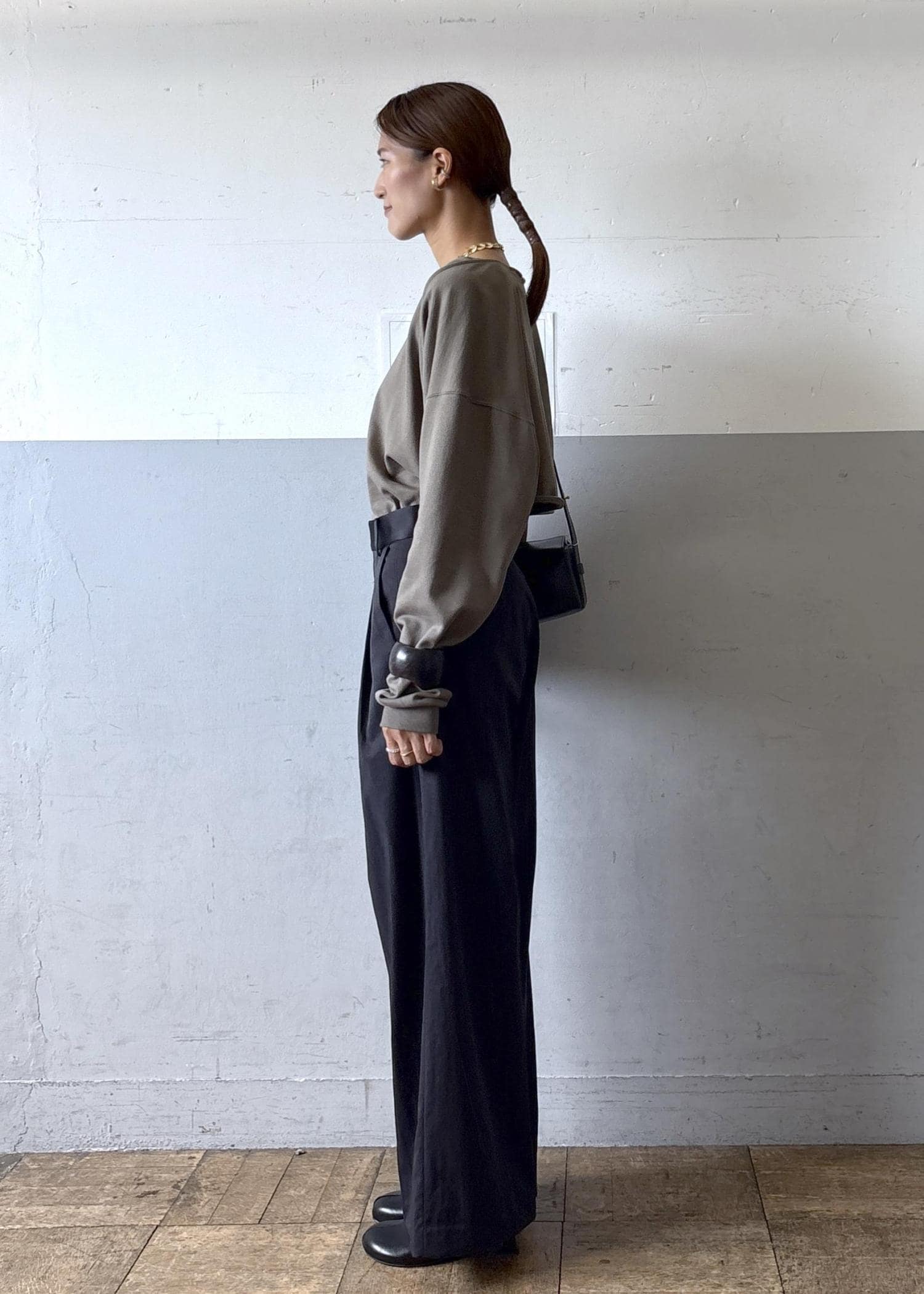 私はEMOELLEのドレスパンツと合わせて少しキレイめにコーディネートしてみました。