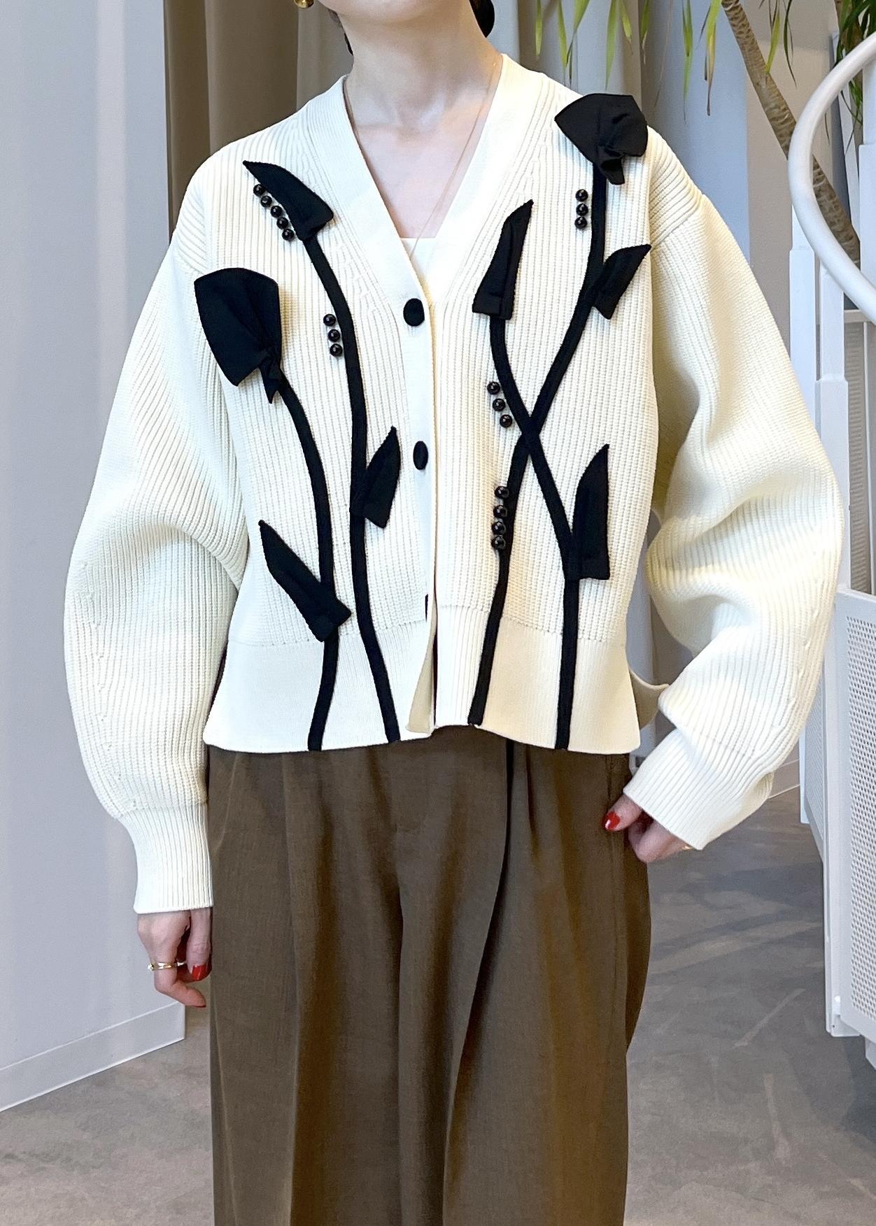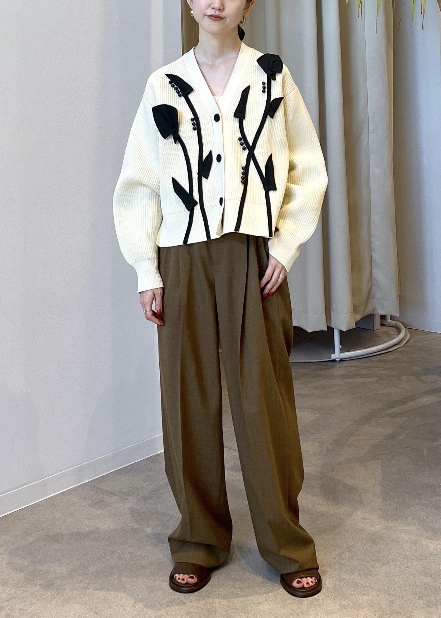 ADAM ET ROPÉ FEMME【サステナブル】3Dモチーフカーディガンキナリ / F¥9,900レビューふんわりと軽いニット素材です。袖周りはゆったりですが身頃はすっきりとしていてバランスが取りやすいです◎腰にかかるくらいの着丈です。