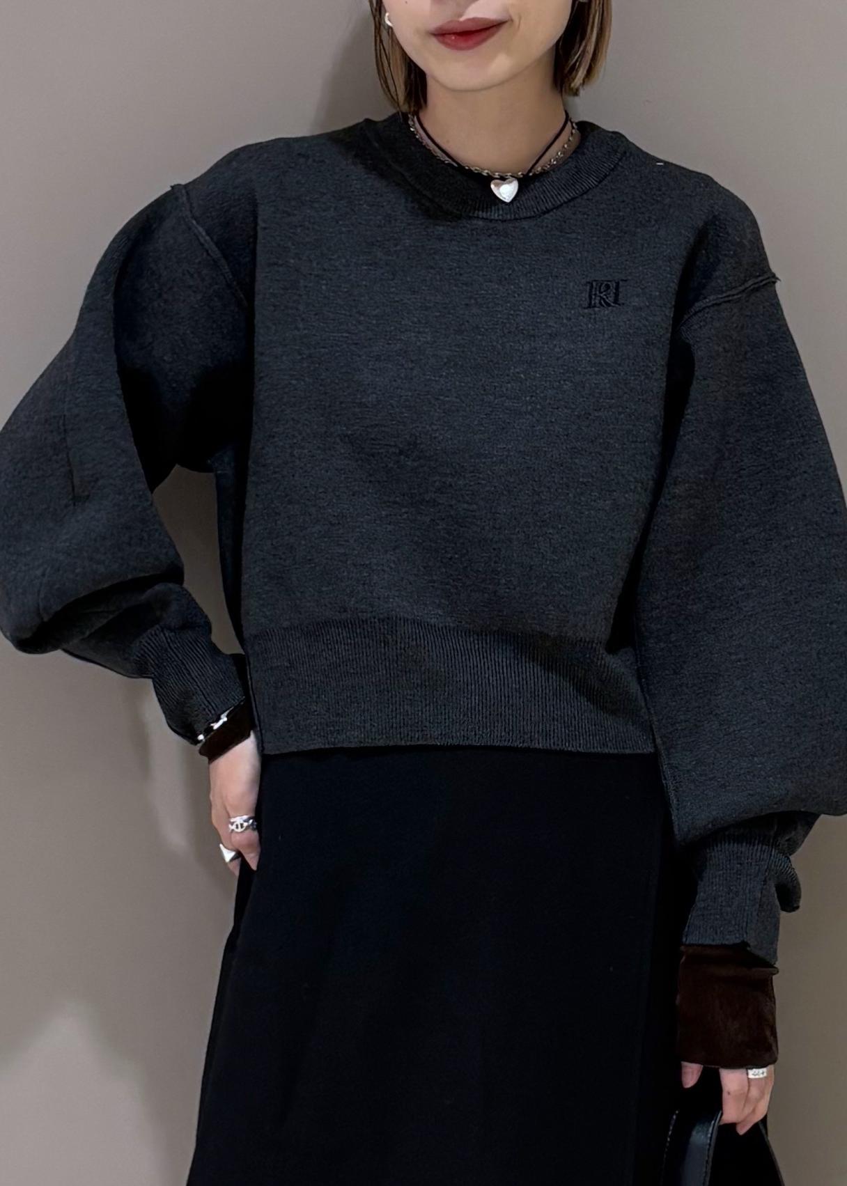 ADAM ET ROPÉ FEMME【サステナブル】ロゴパッチスウェットニットチャコール / 36¥18,150レビュー162cm、36サイズ着用。