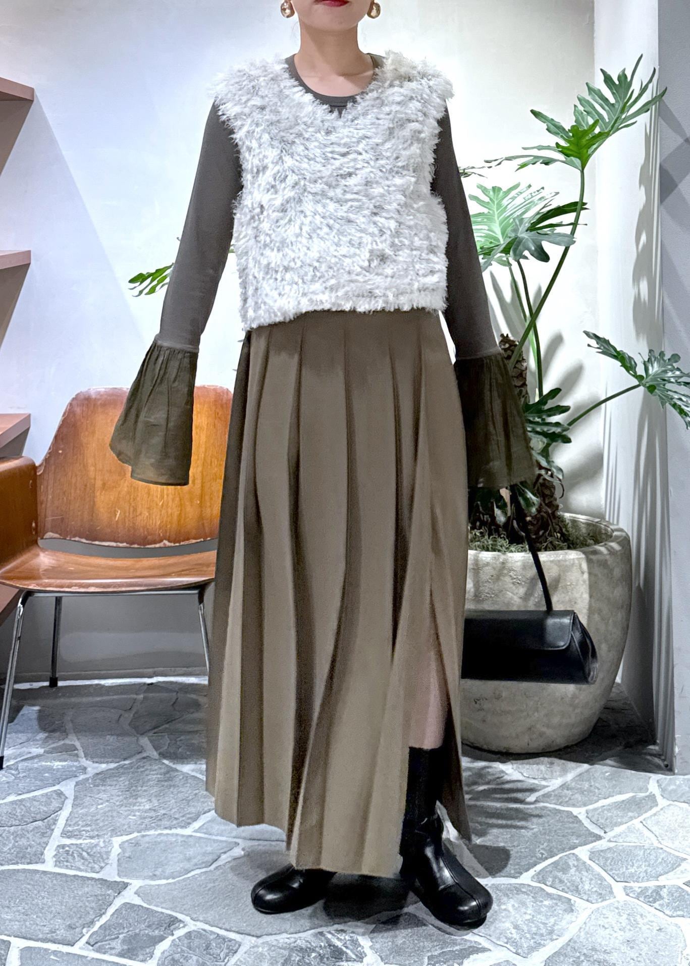 EMOELLE【EMOELLE】フロントプリーツスカートキャメル系 / 36¥29,700レビューフロントだけのプリーツで、無駄な広がりがない大人なスカート。