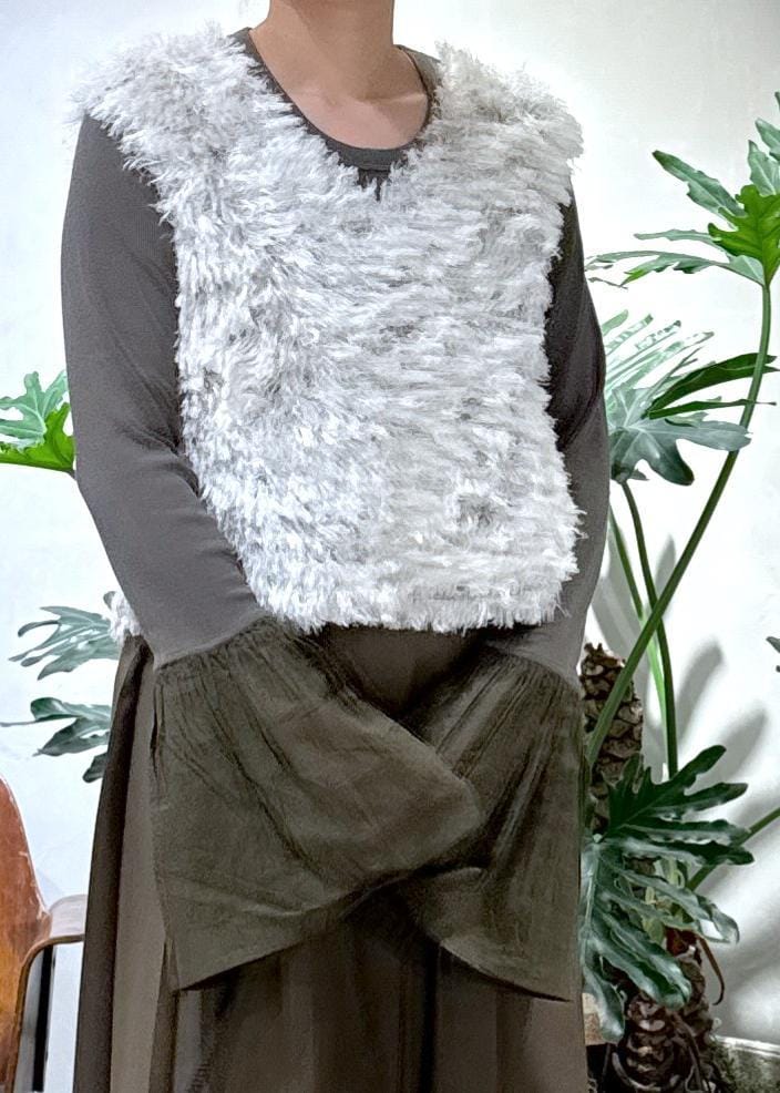 ADAM ET ROPÉ FEMMEフェザーベストキナリ系 / F¥13,860レビュー程よいボリューム感で、取り入れやすいファーベスト。