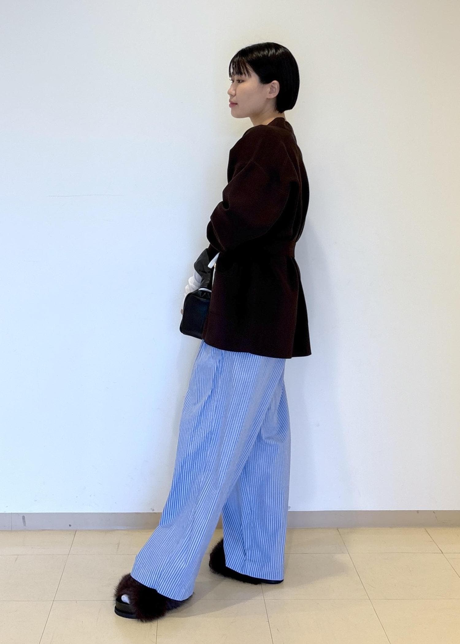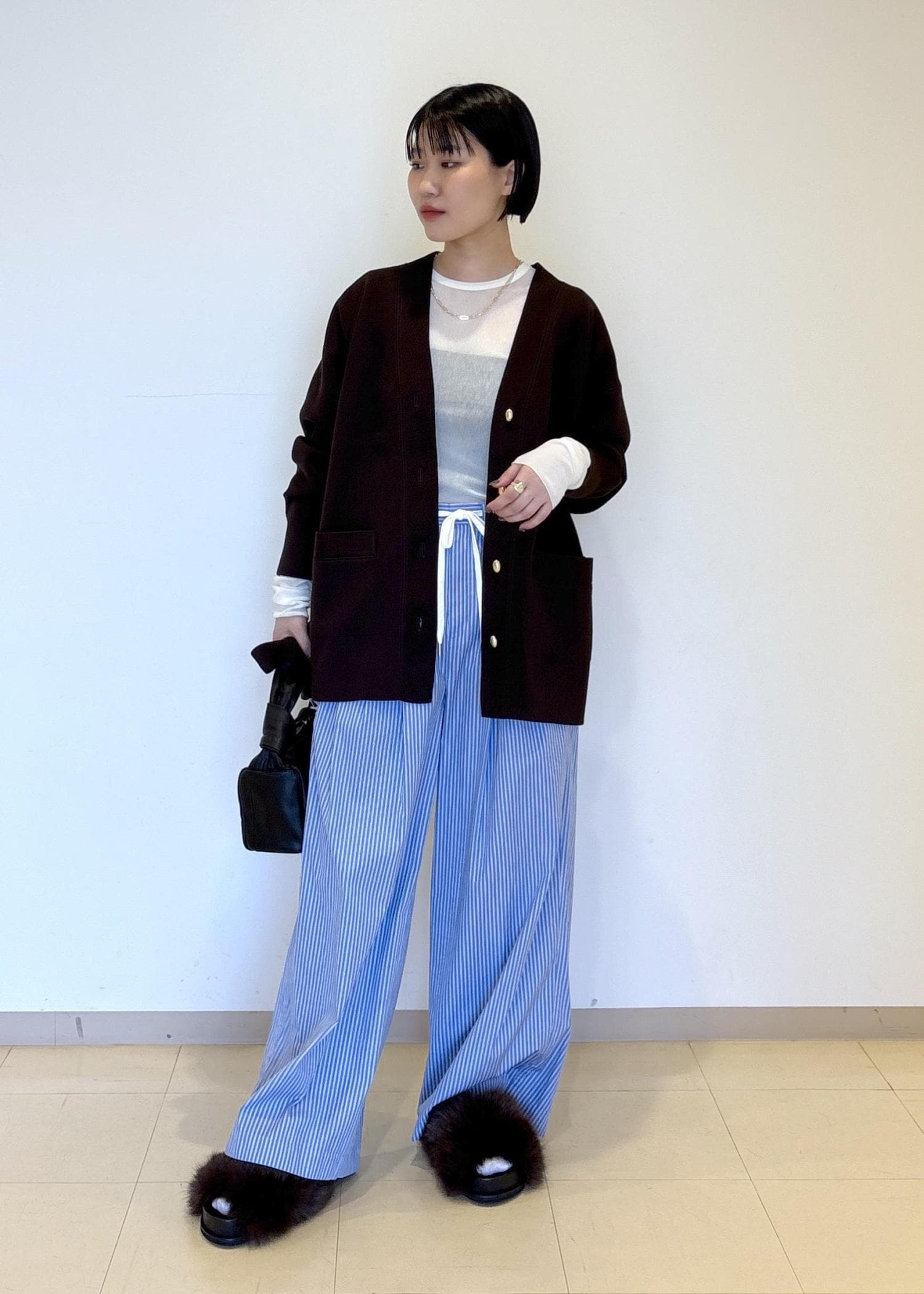 アダムエロペでは毎シーズン定番のオーバーサイズカーディガンですが、今季はウエストにベルトが付き