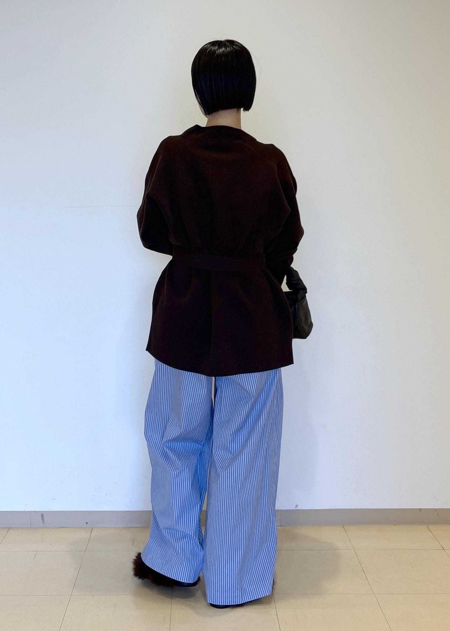 前のボタンは開けて、ベルトで絞る着こなしがお気に入りです。